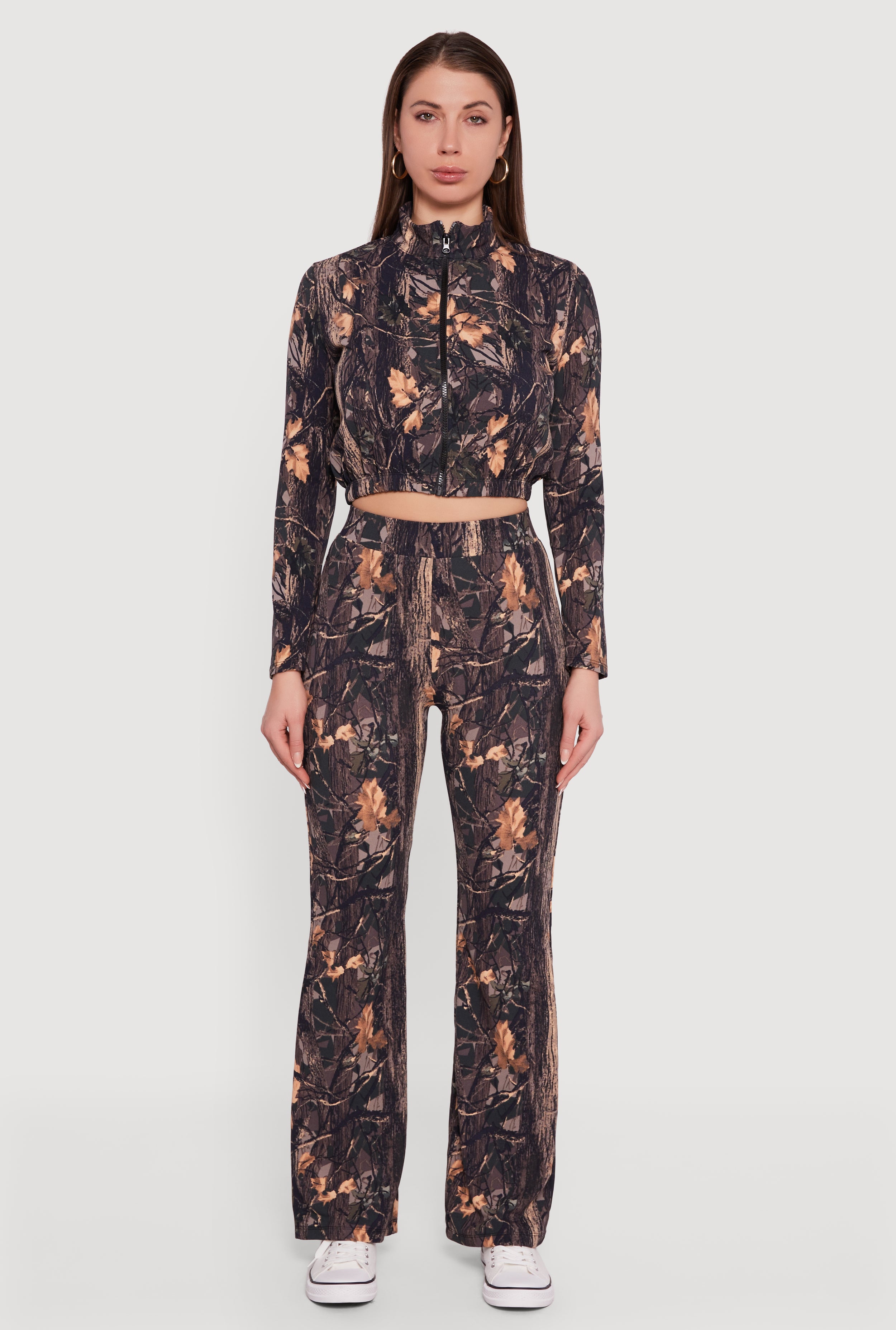 Tree Camo Scuba High Waisted Pull On Pants