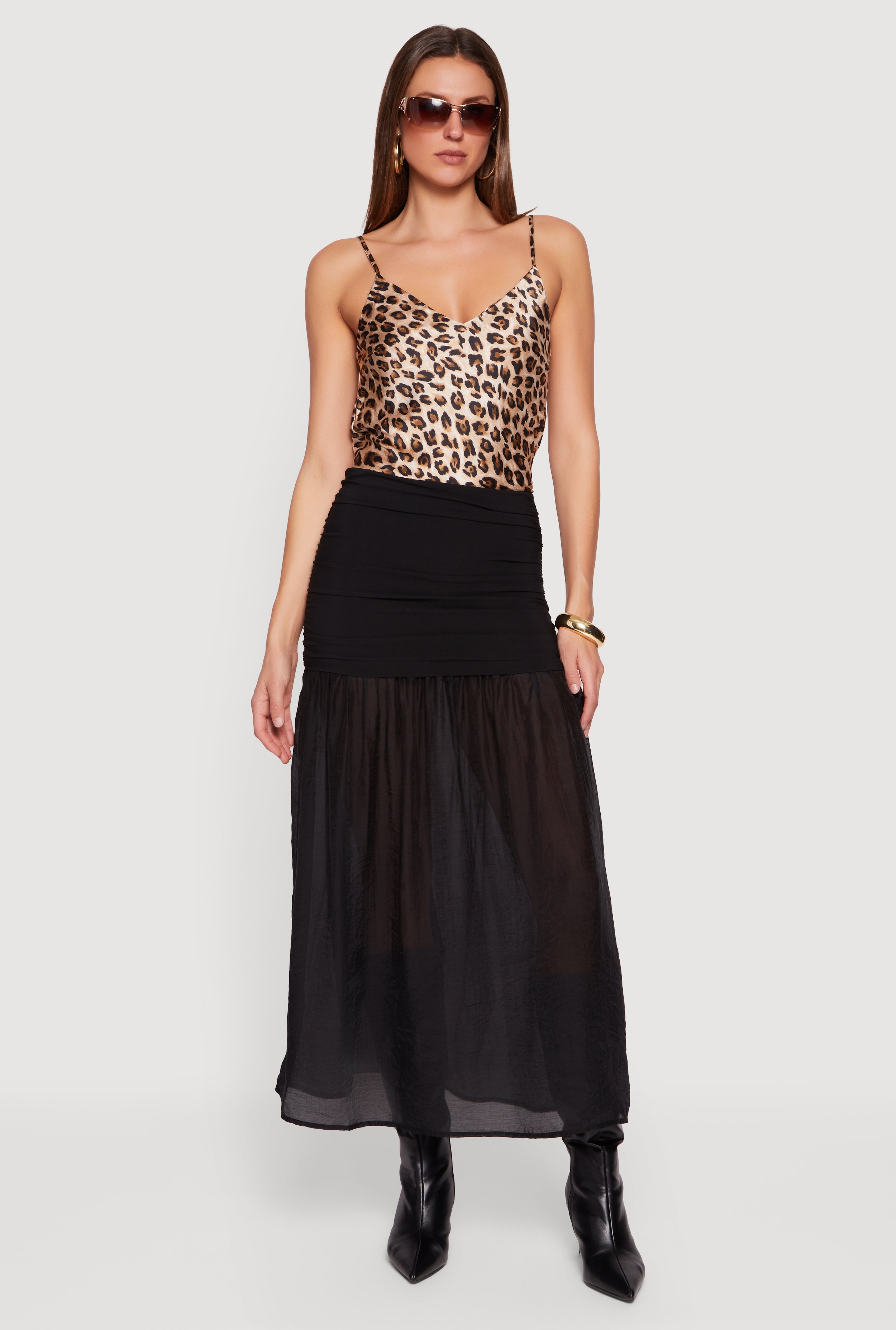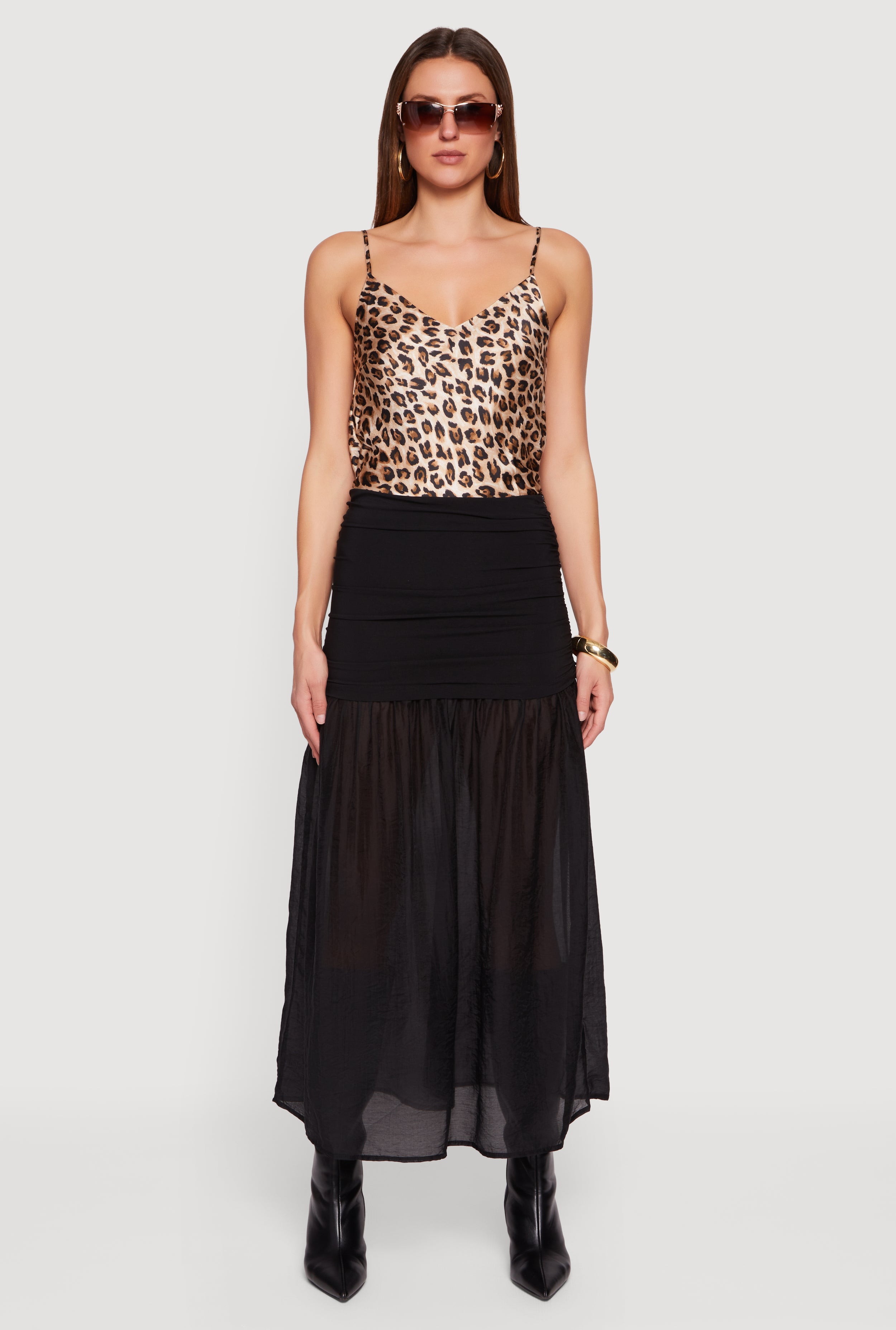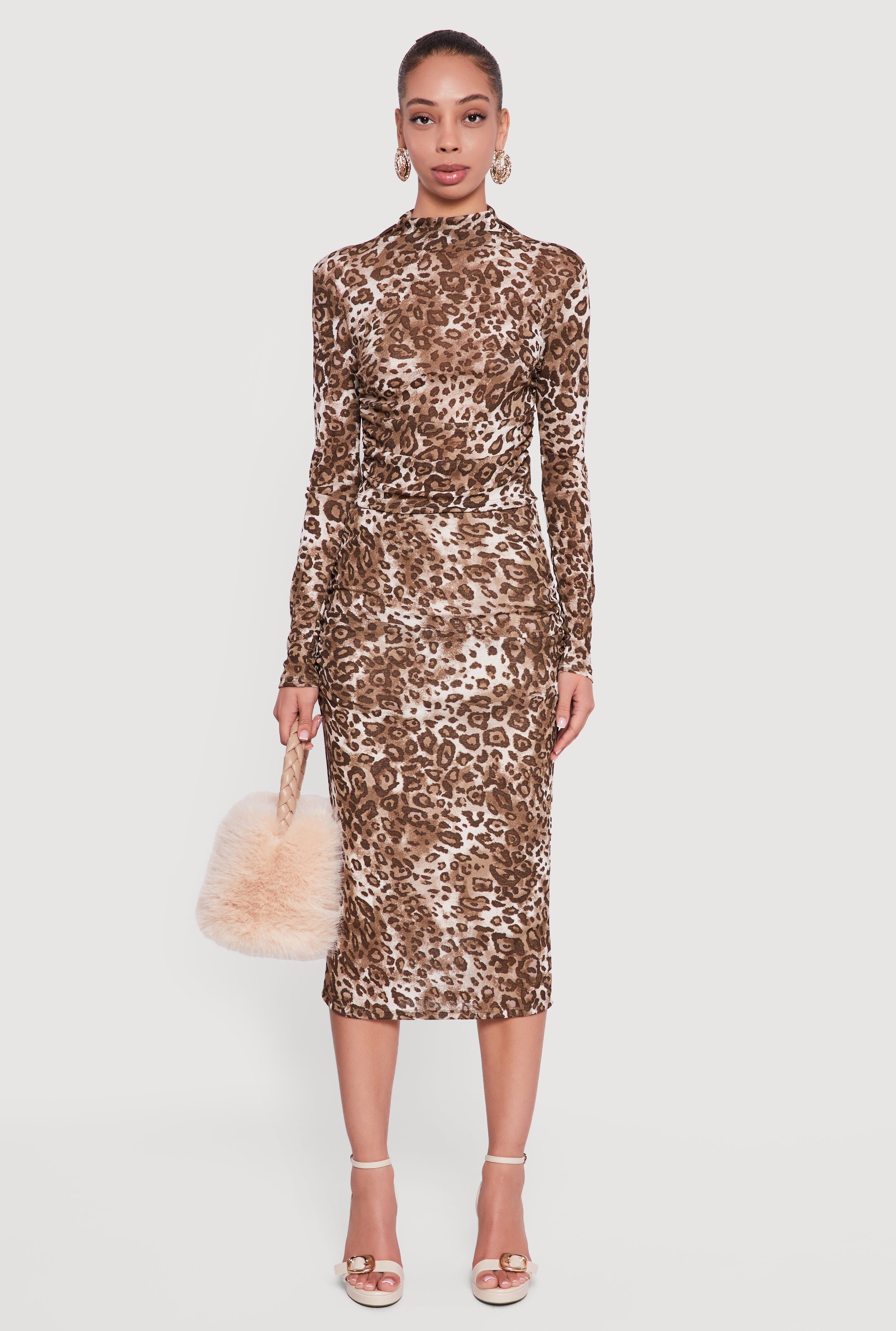 Leopard Print Ruched High Waisted Midi Skirt