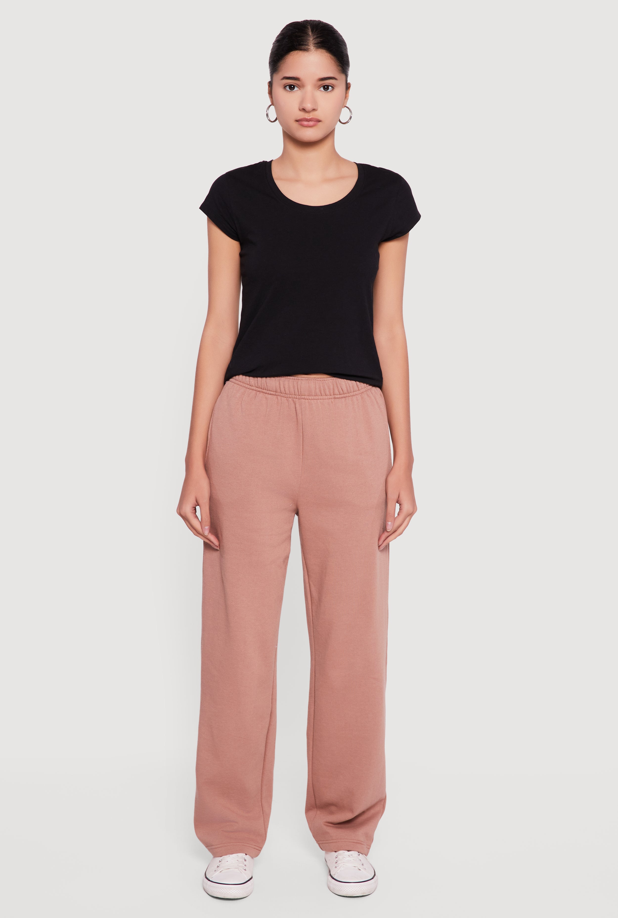 Drawstring Waist Pull On Wide Leg Sweatpants