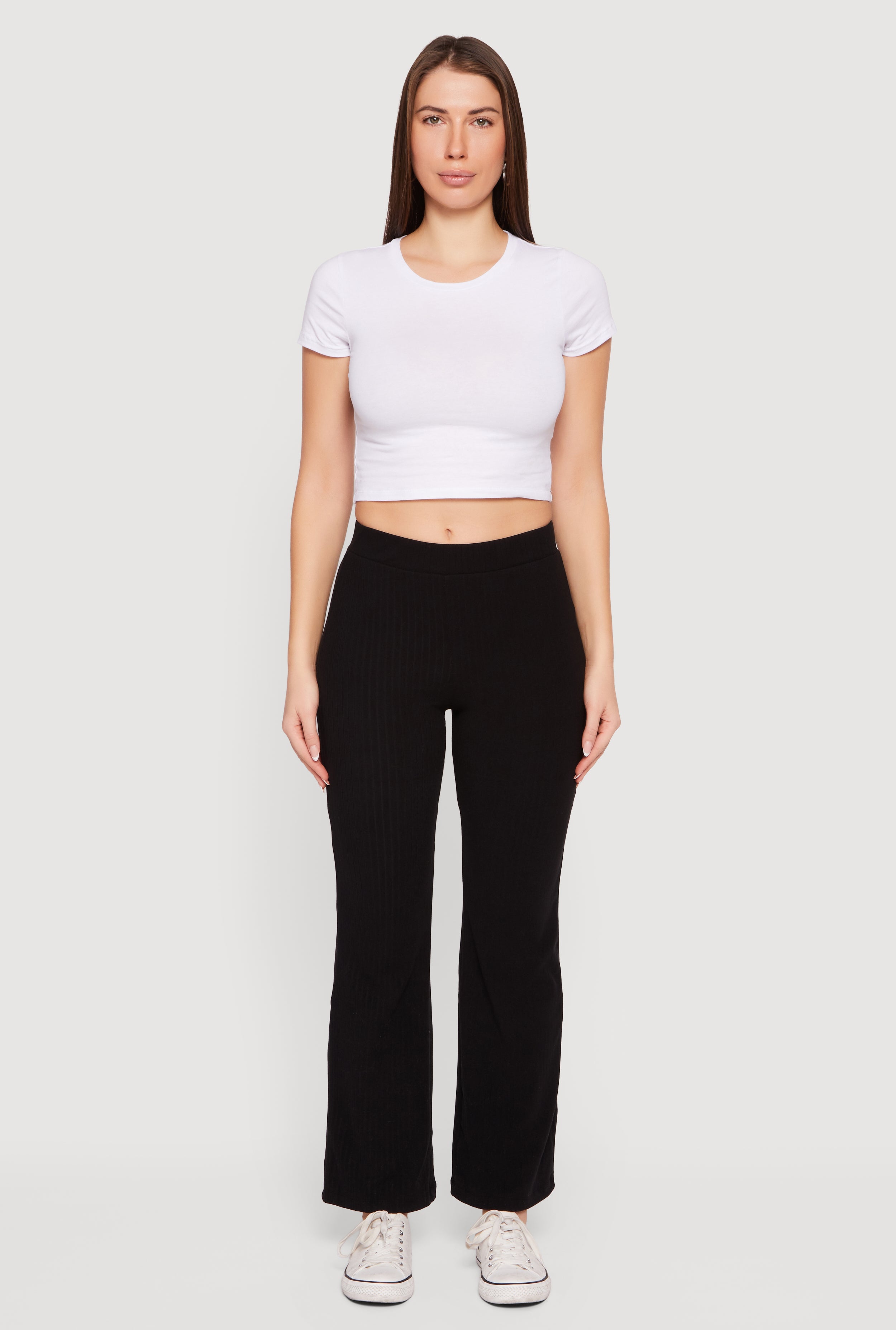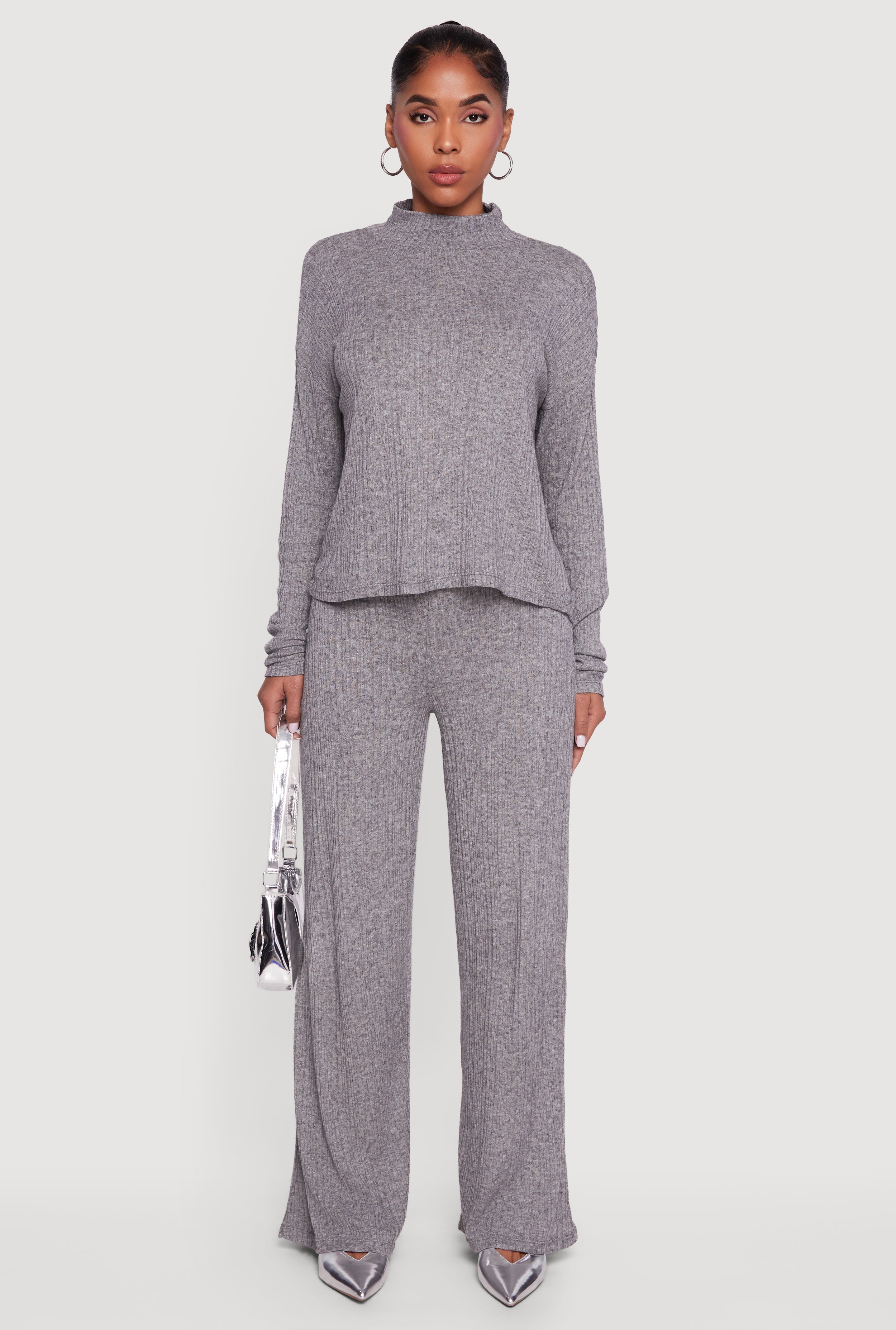 Brushed Ribbed Knit Straight Leg Pants
