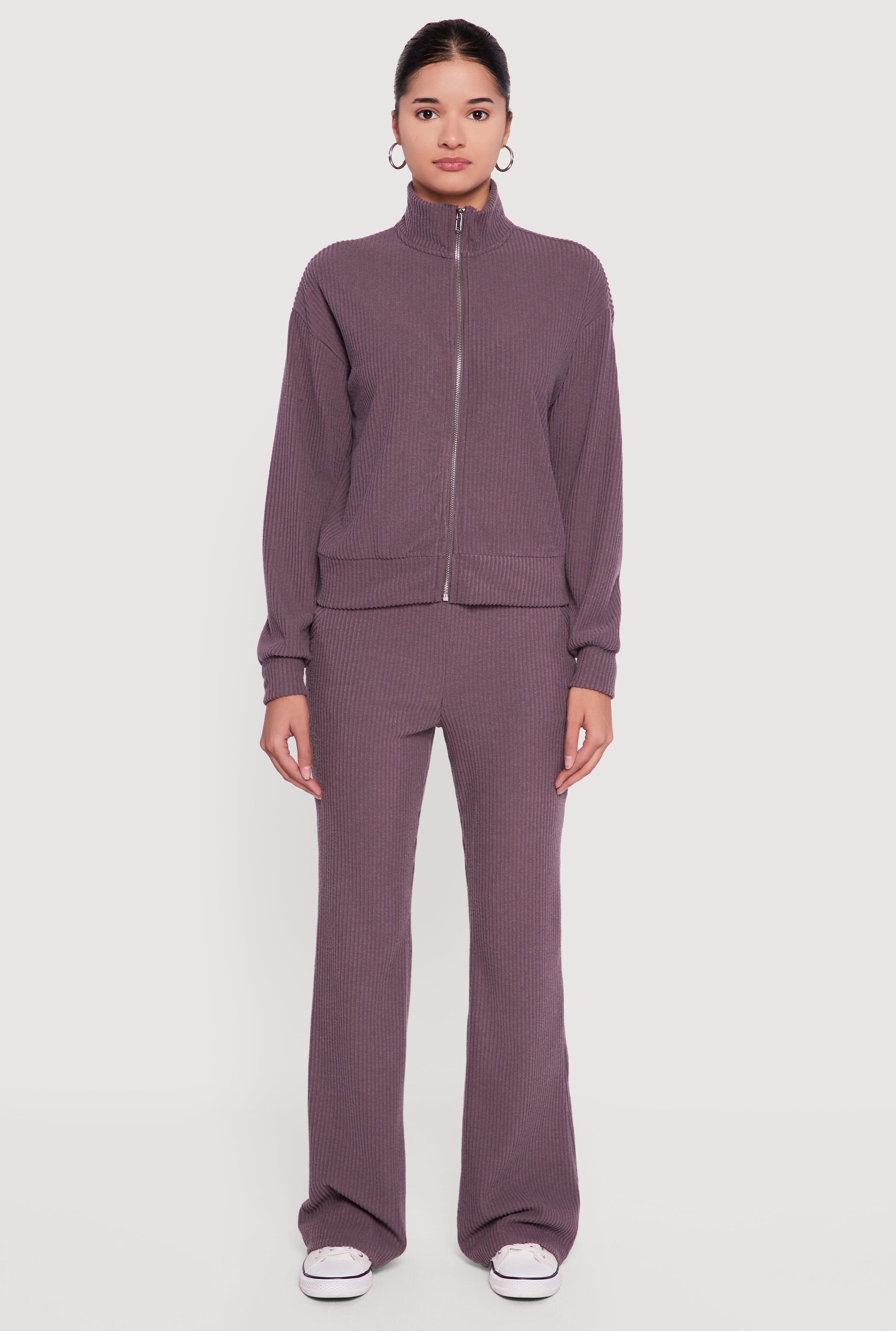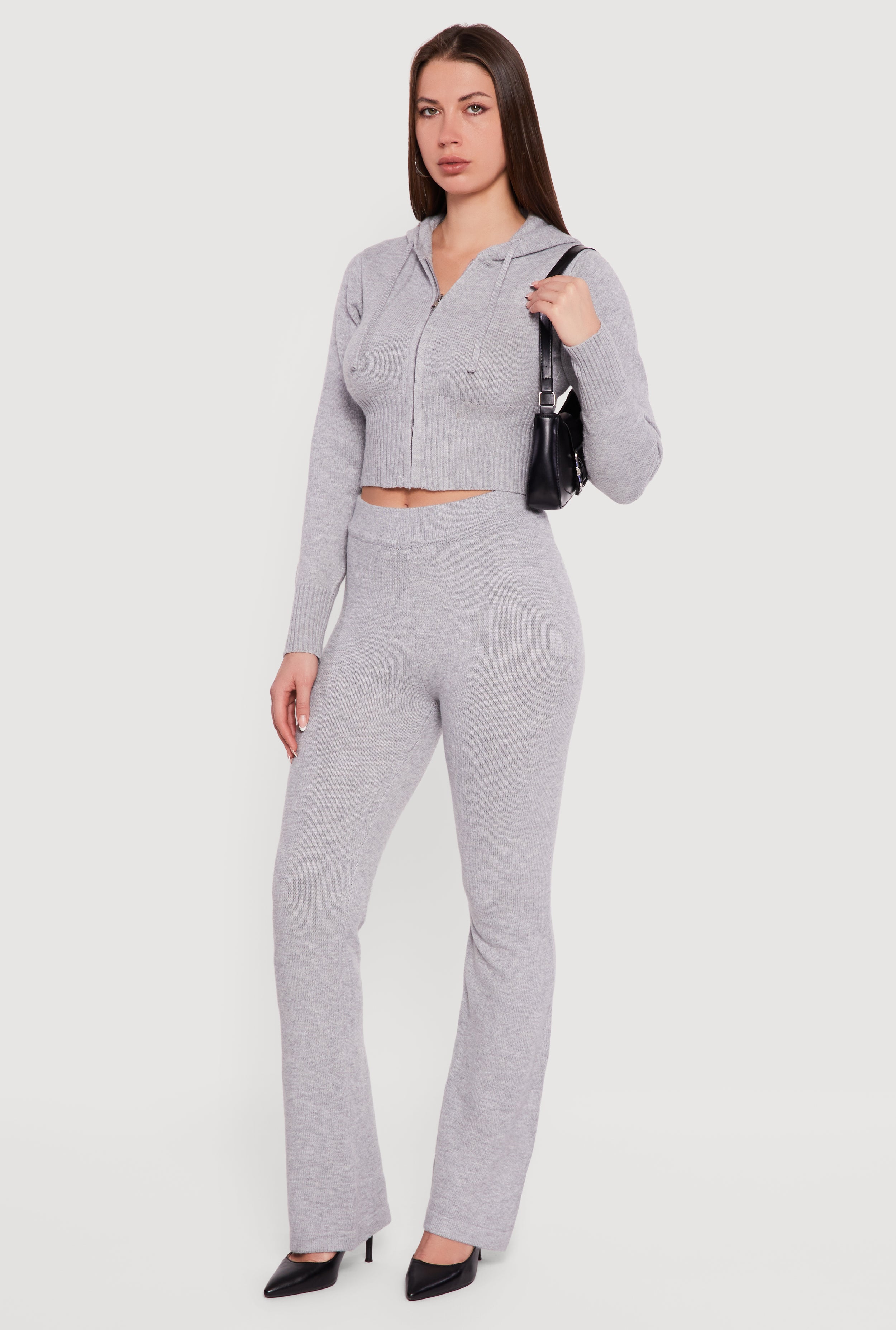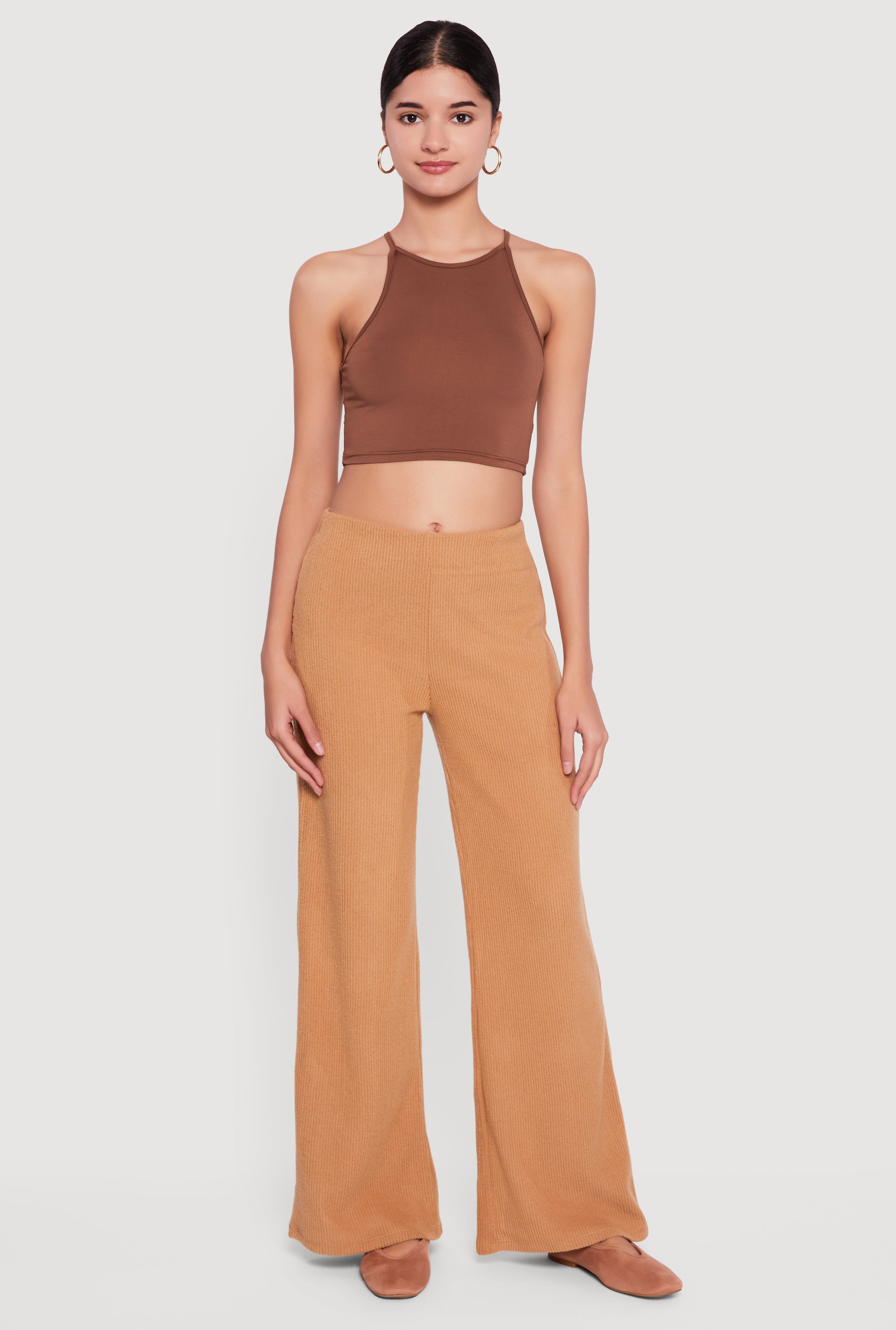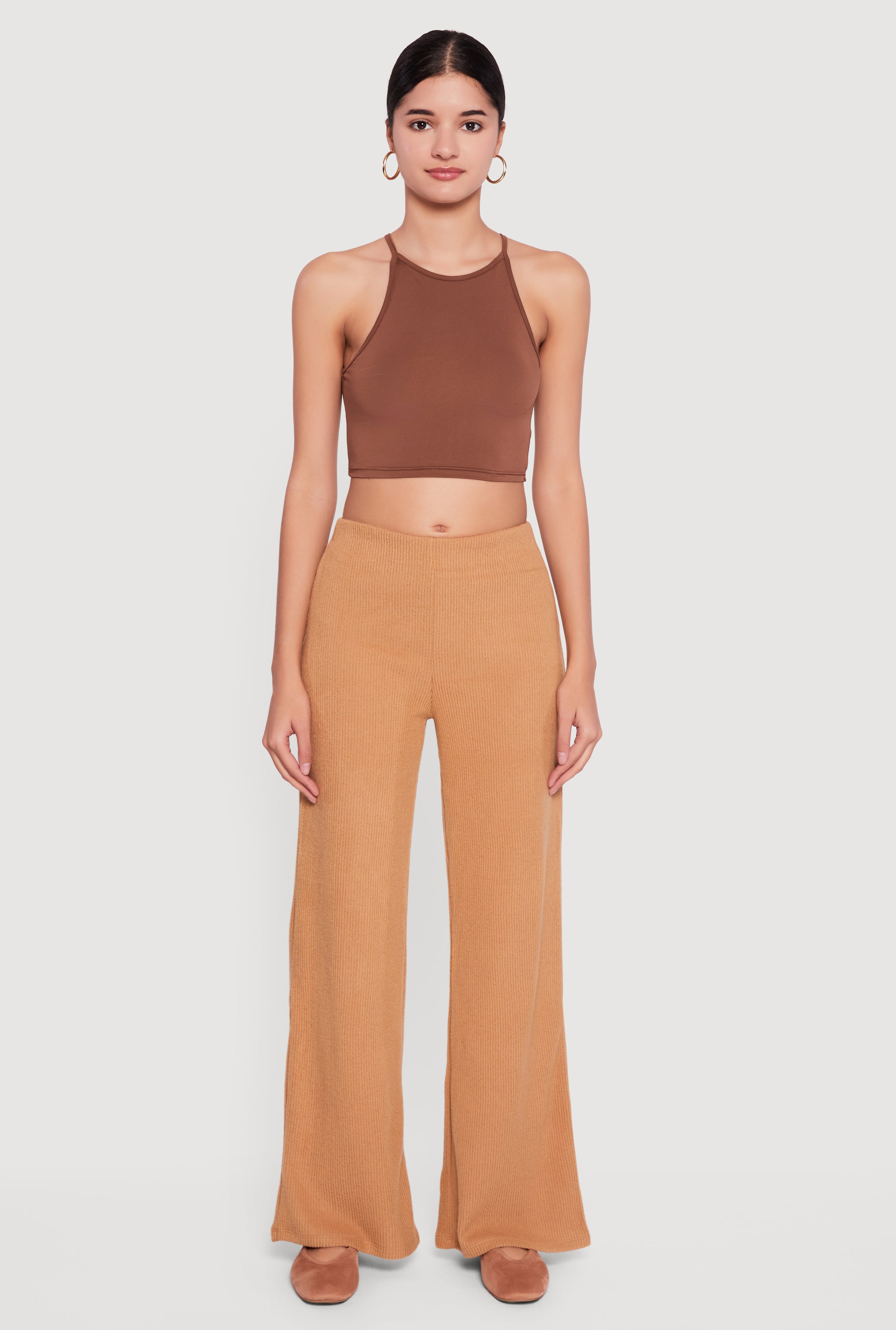 Brushed Rib Knit High Waisted Flare Leg Pants