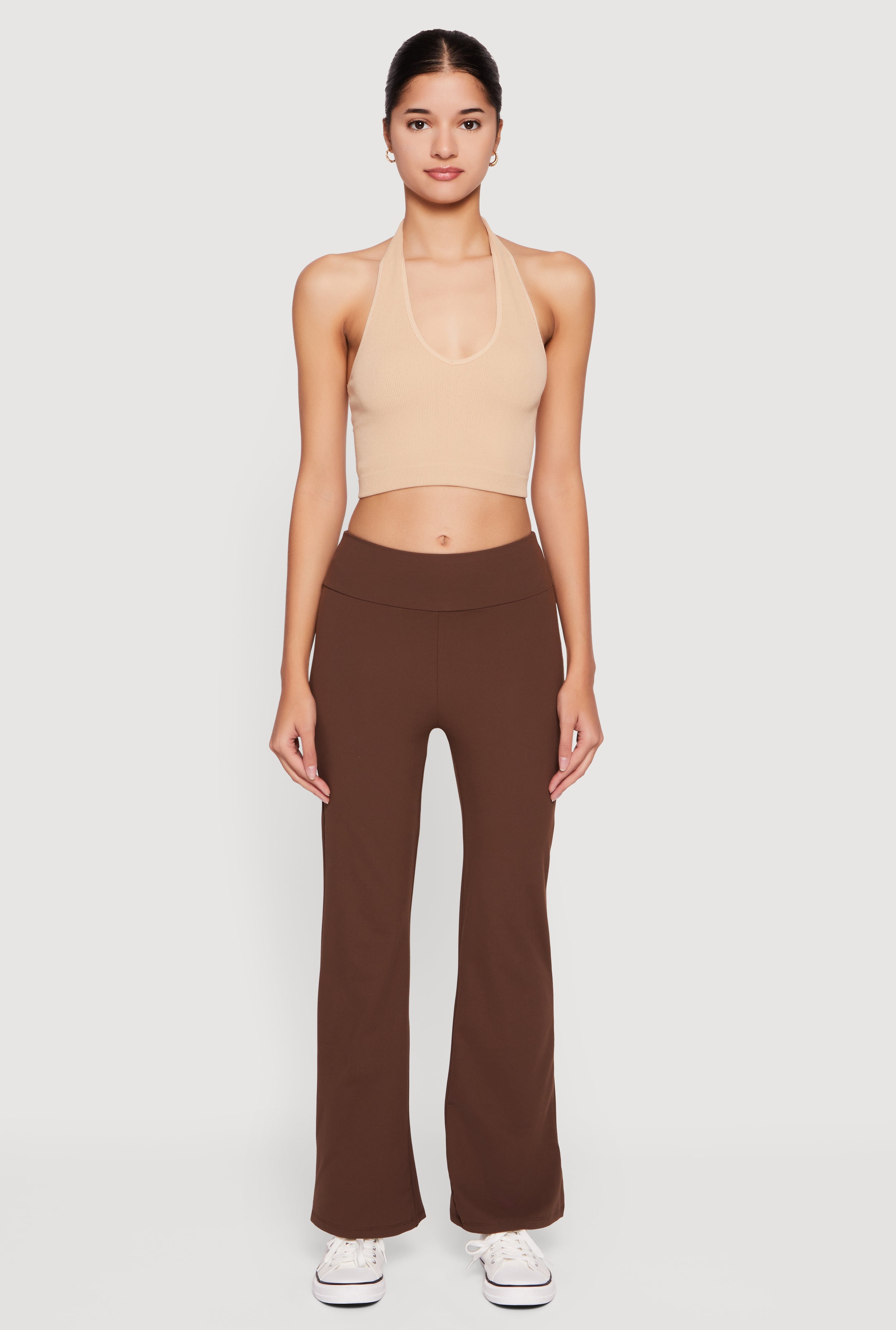 Solid High Waisted Pull On Flare Leg Pants