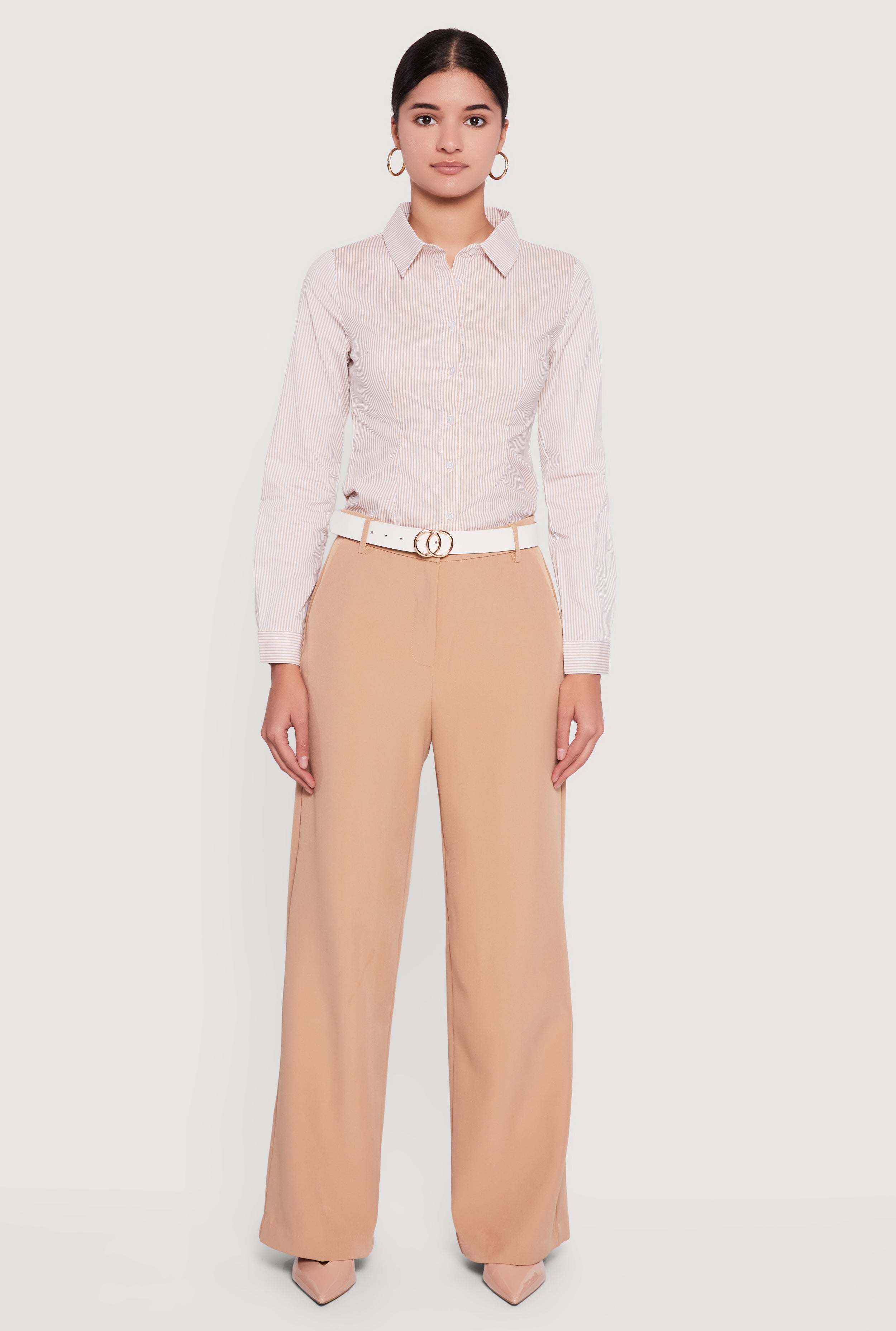 High Waisted Pinstripe Wide Leg Dress Pants