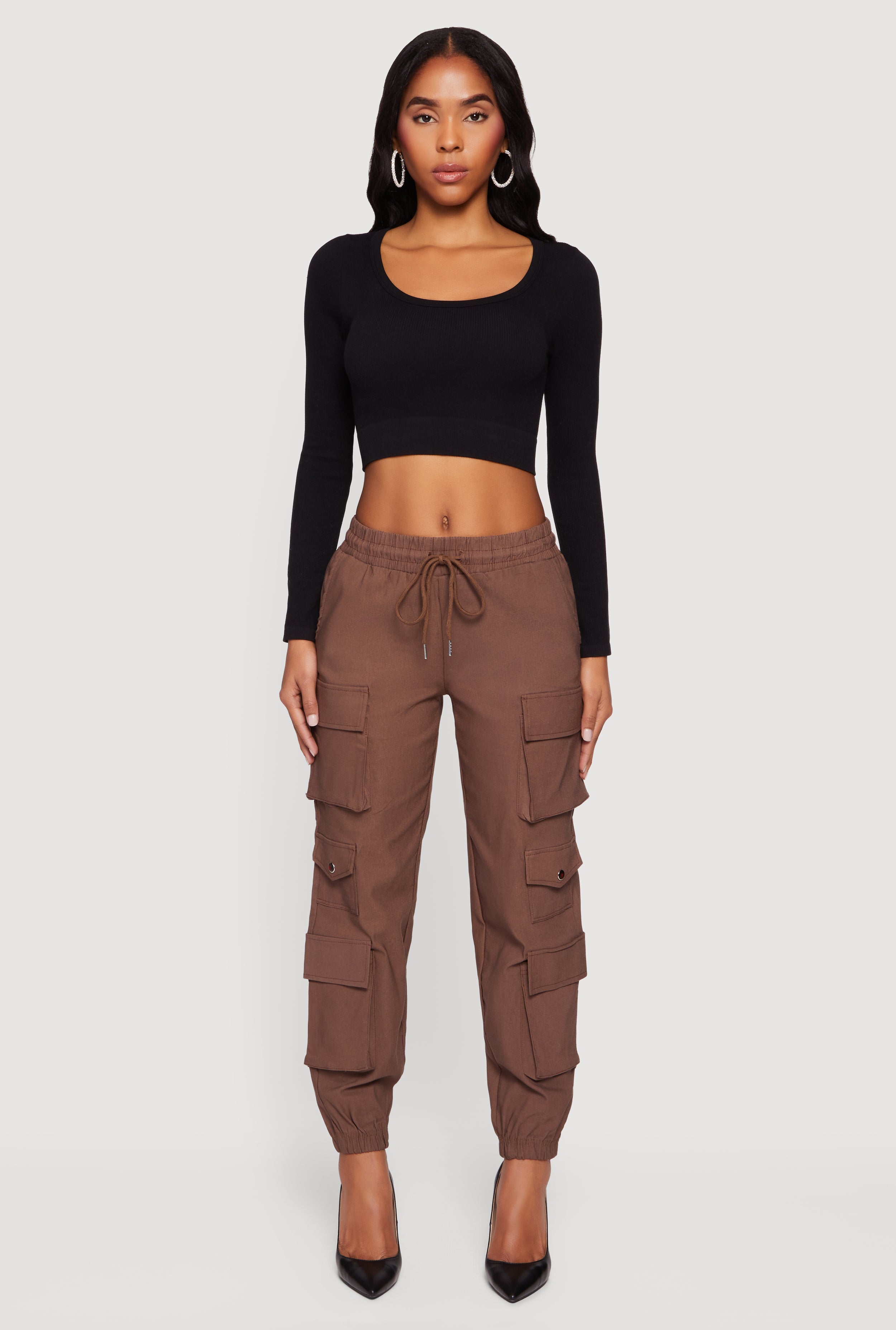 Drawstring Waist Utility Joggers