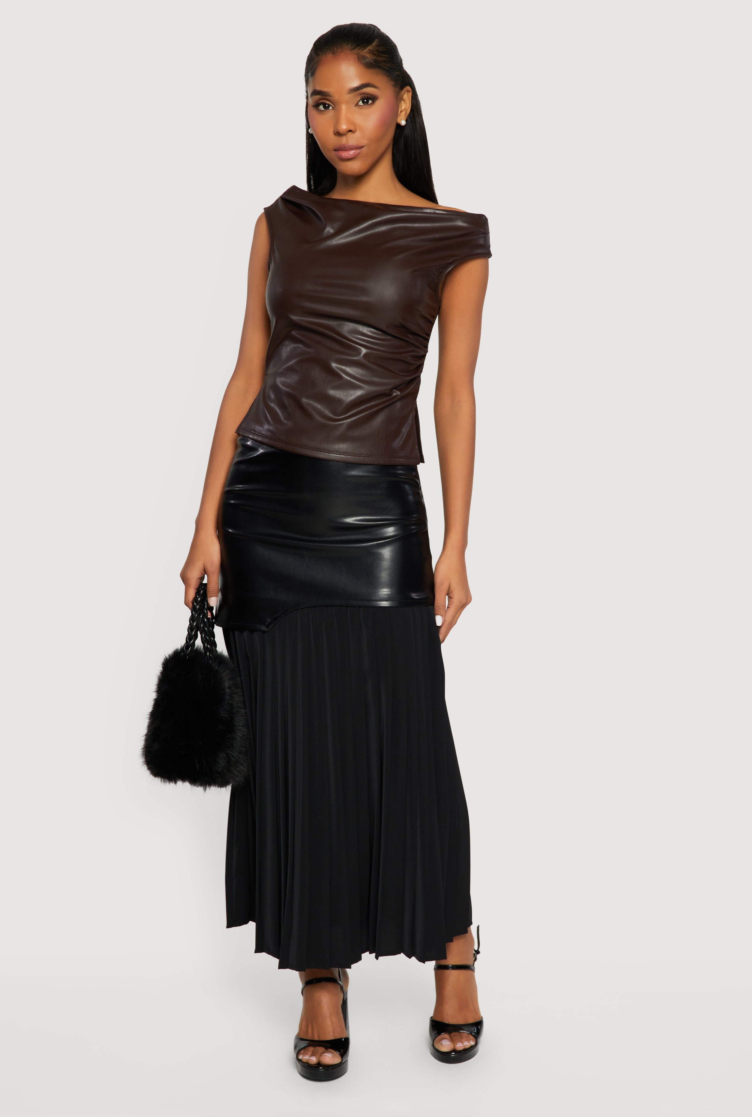 Side Ruched Drop Waist Pleated Chiffon Midi Skirt