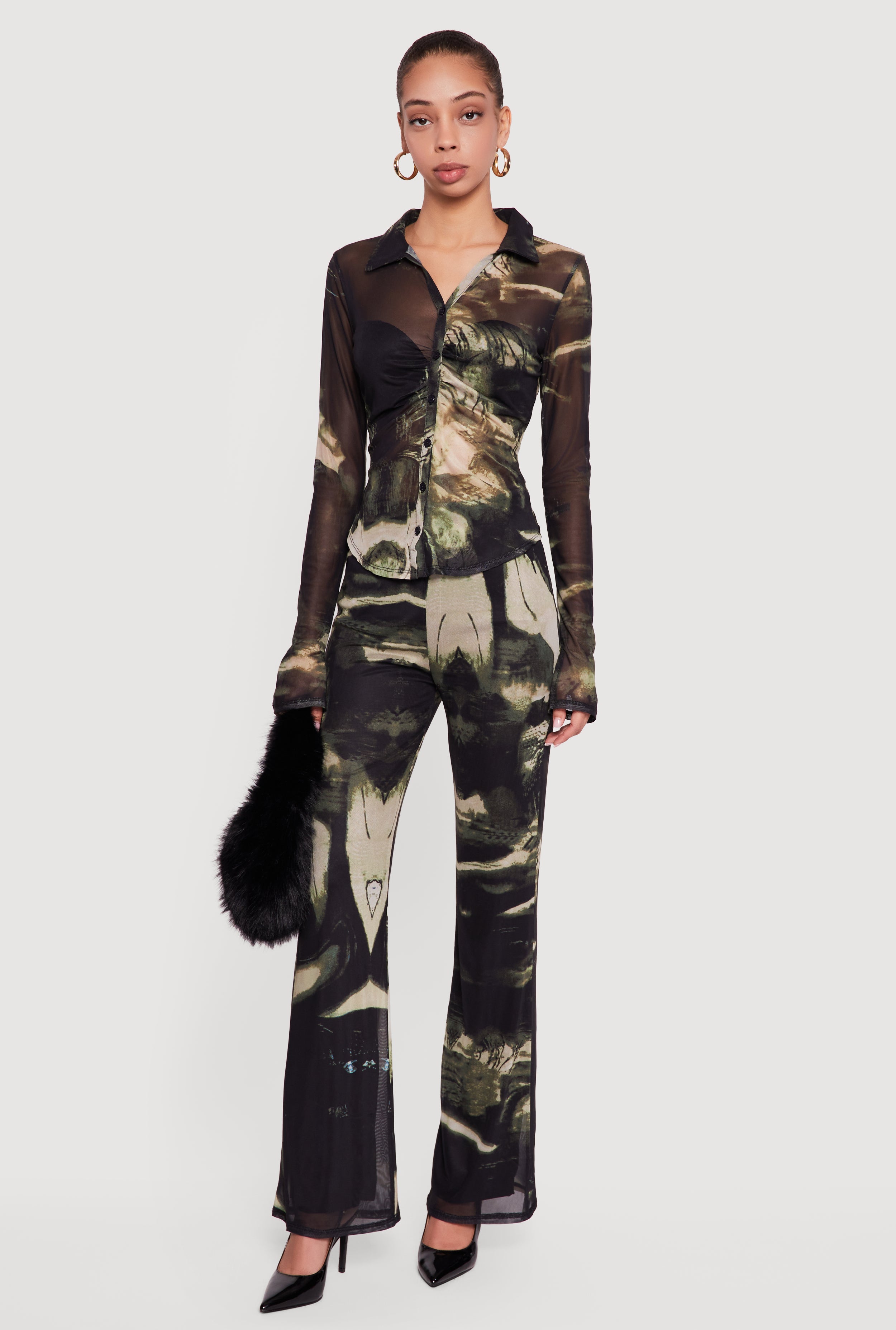 Camouflage Crepe Knit Pull On Straight Leg Pants