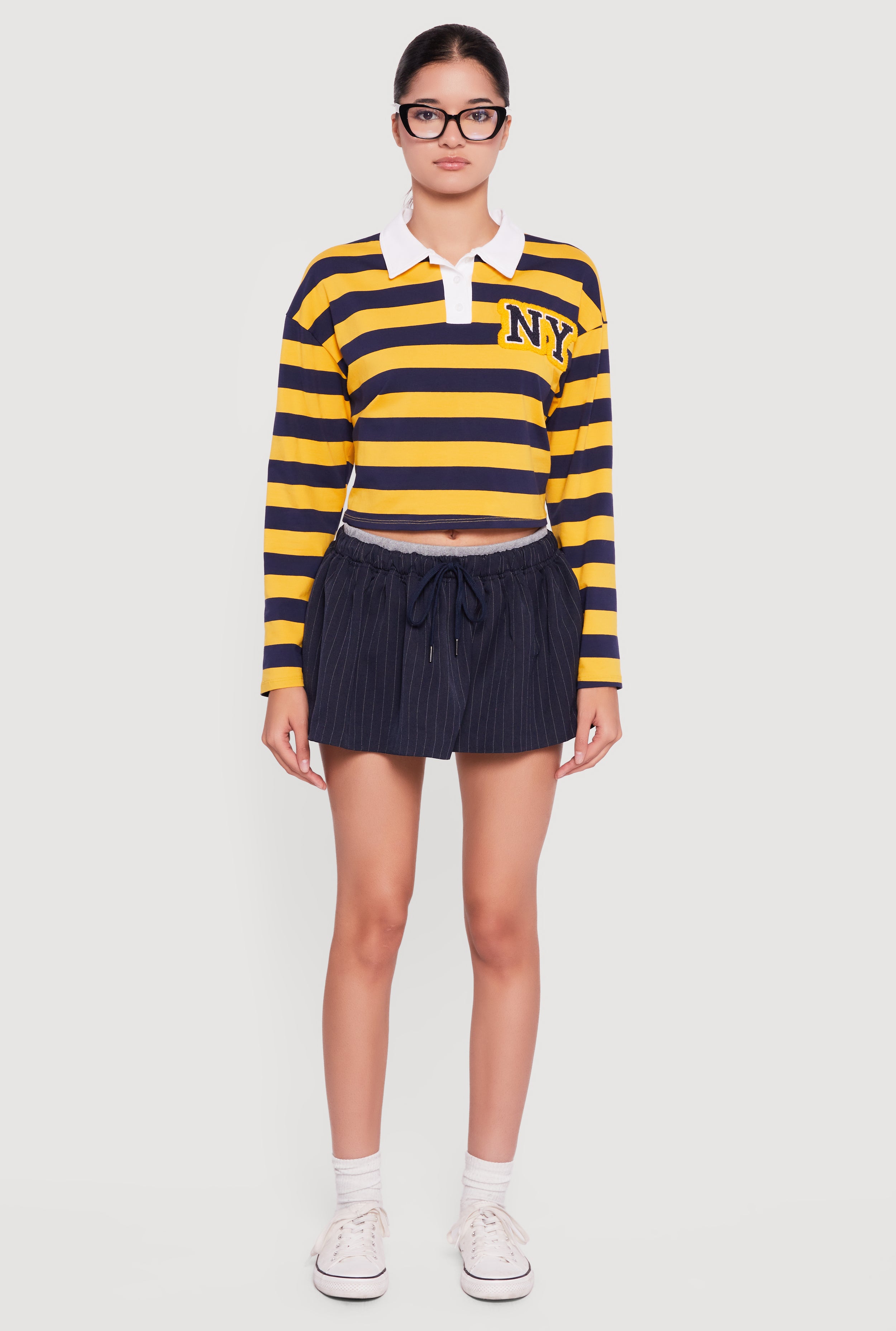 Pinstripe Double Waistband Drawstring Mini Skirt