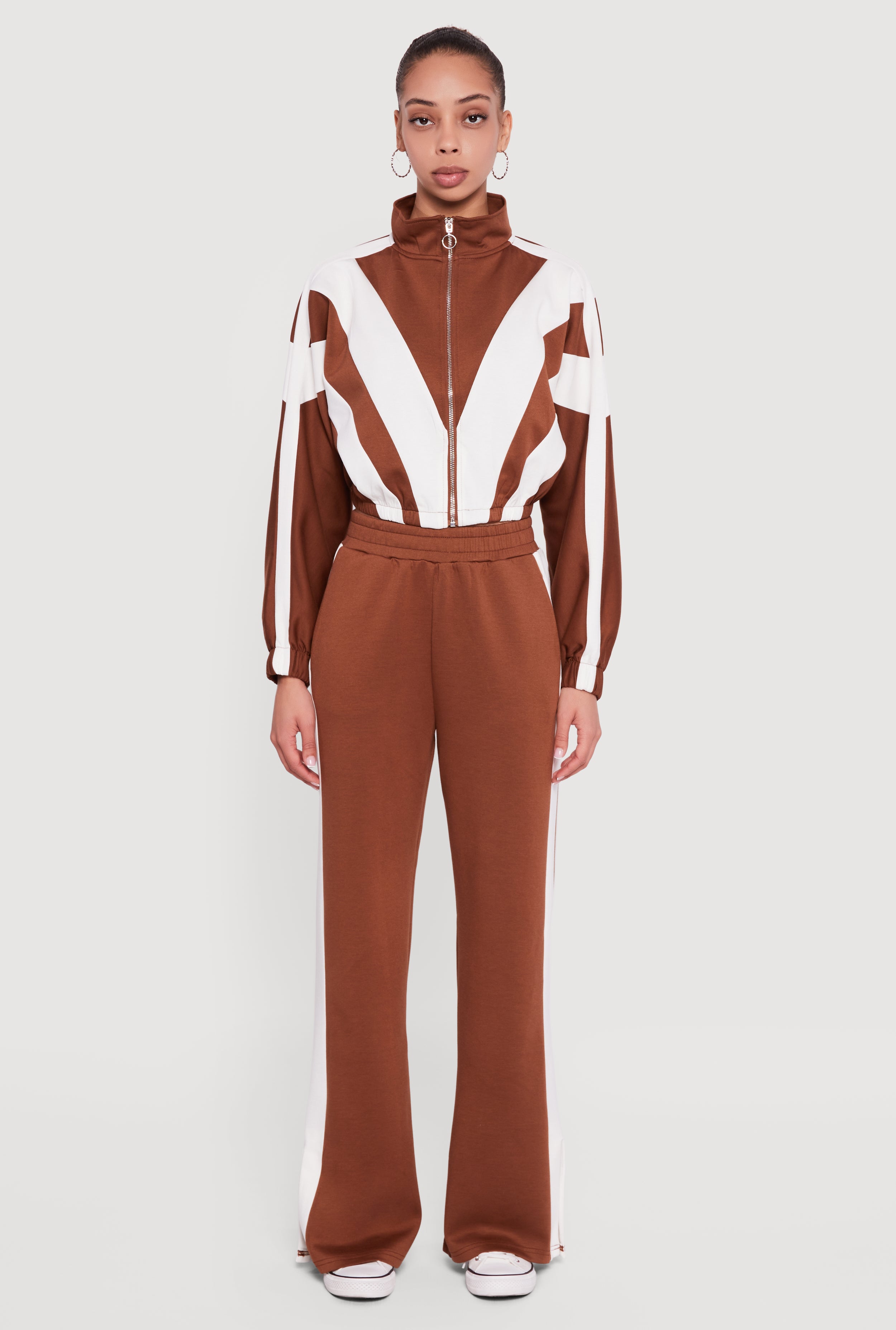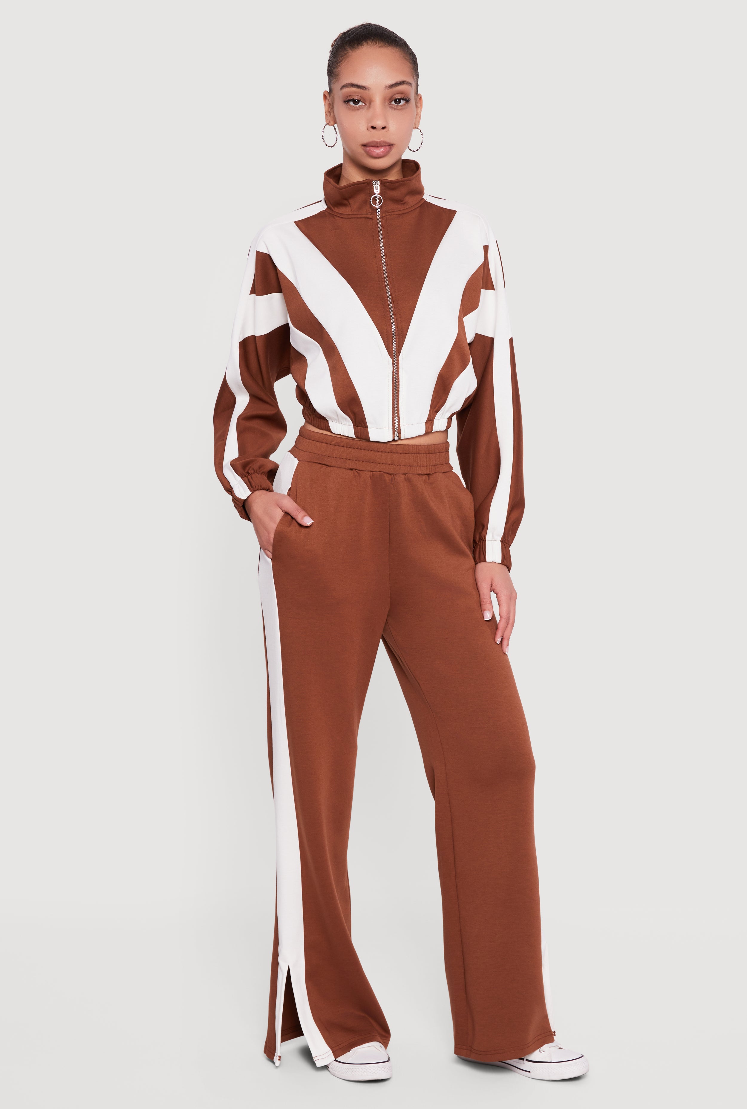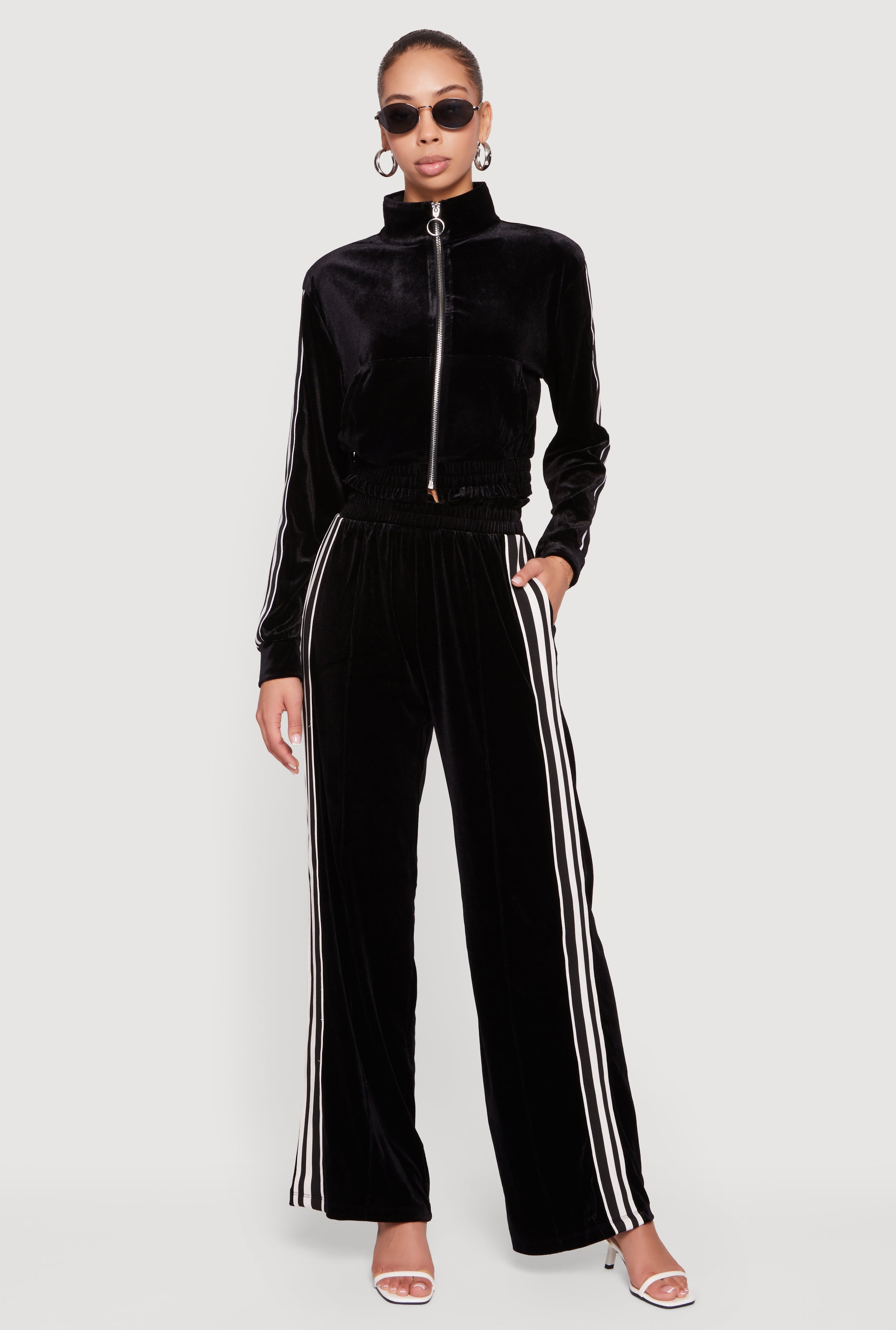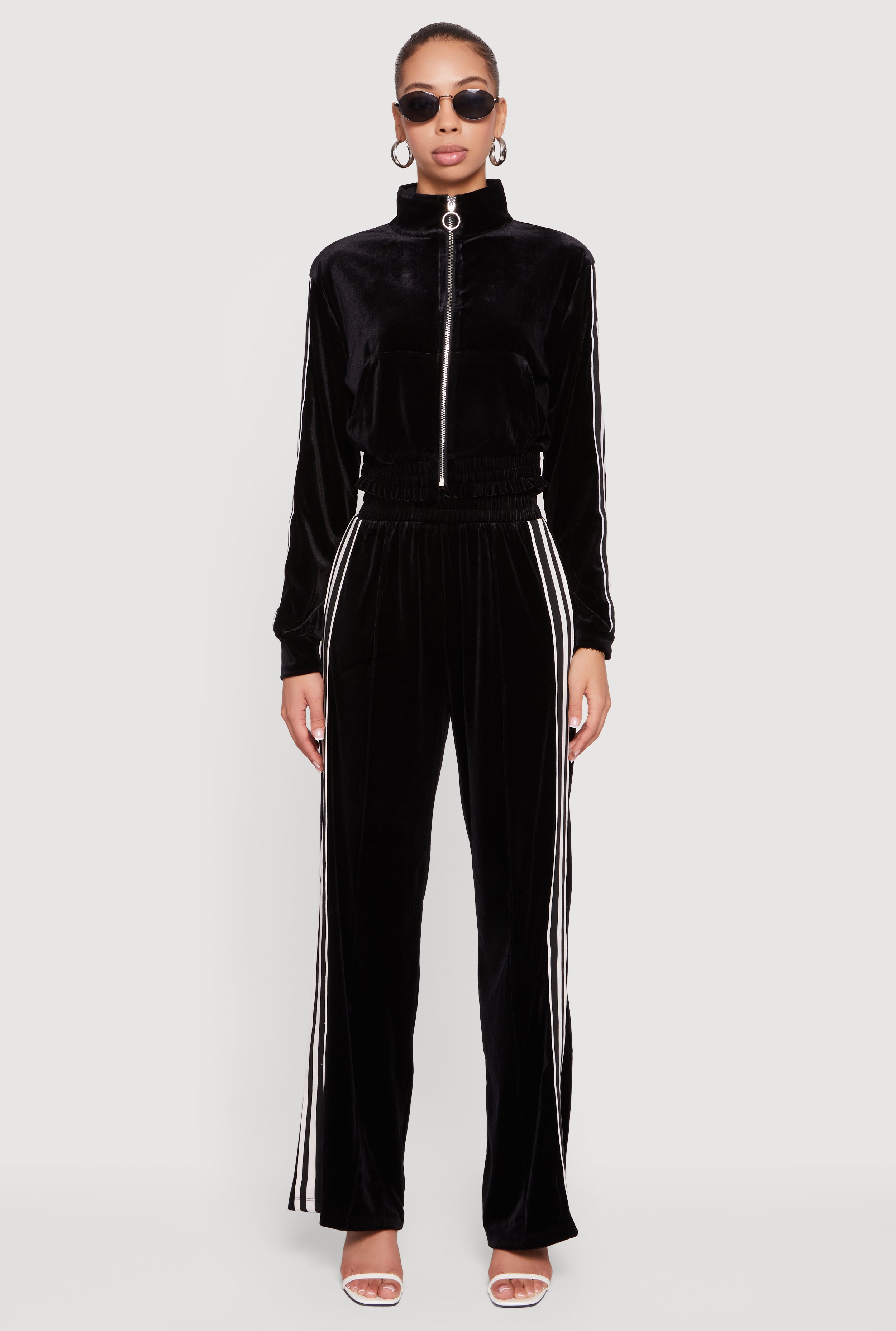 Velour Side Stripe Pull On Straight Leg Pants