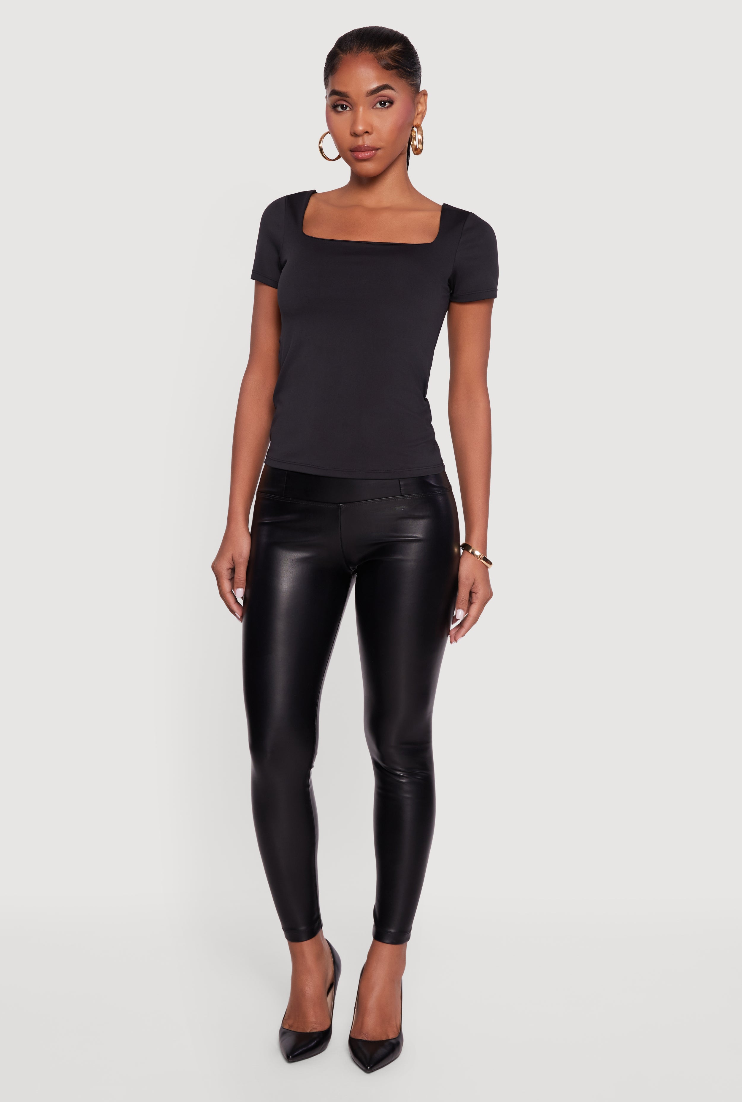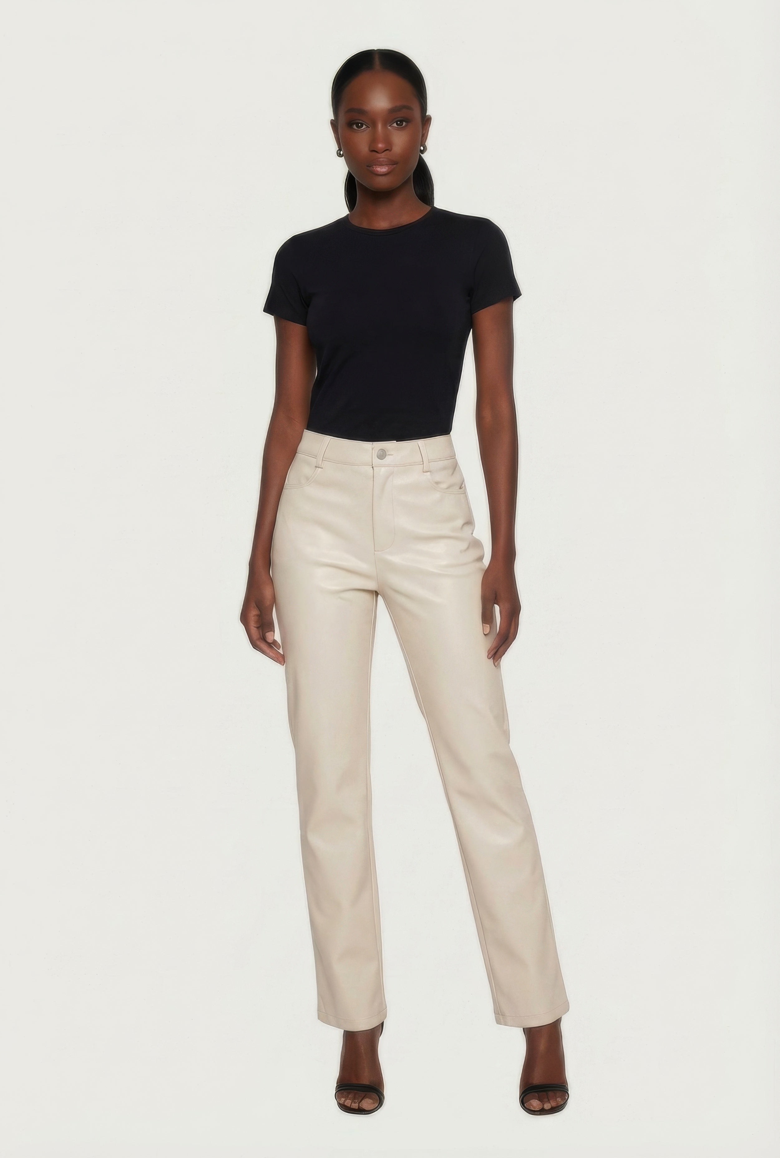 Faux Leather High Waisted Straight Leg Dress Pants