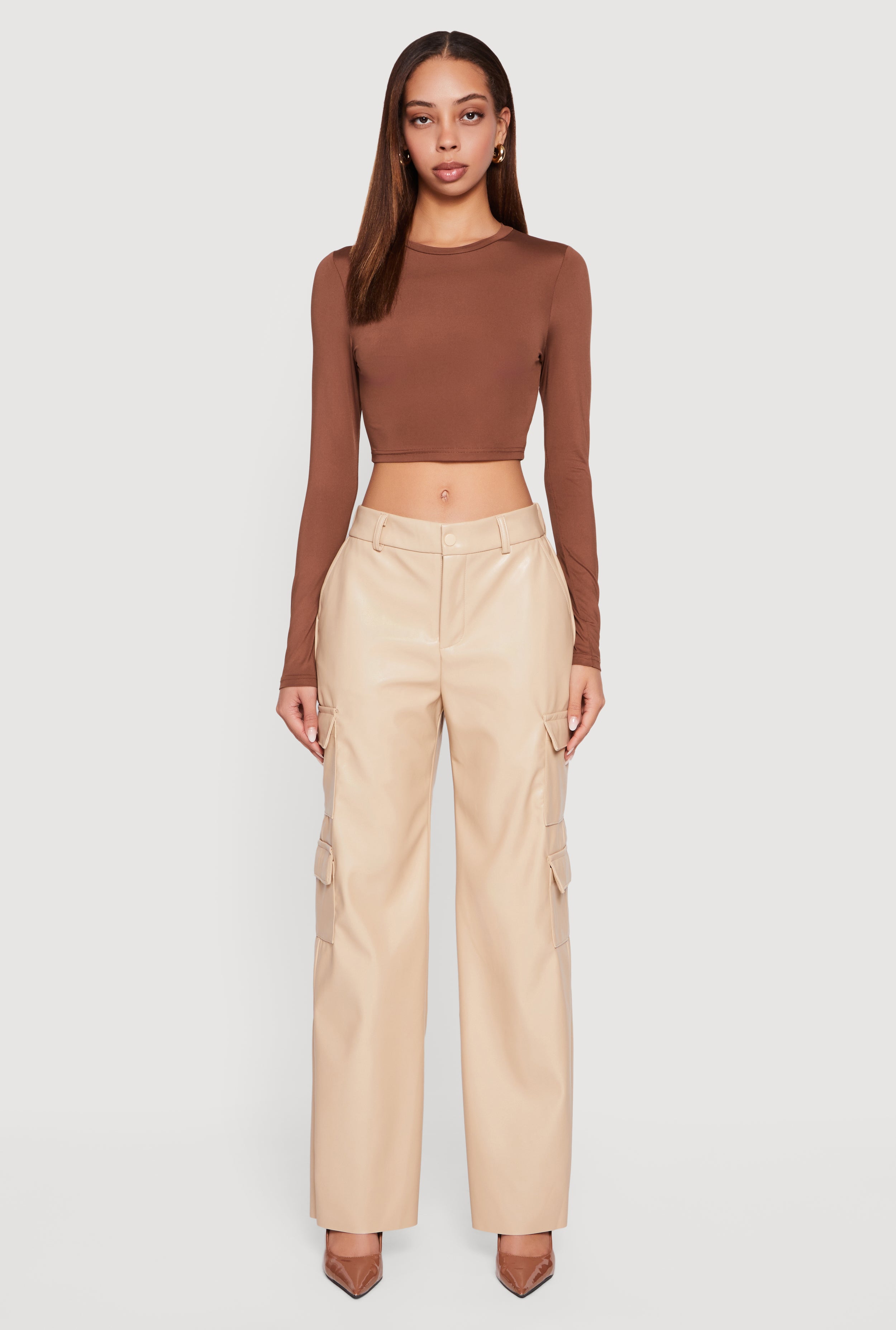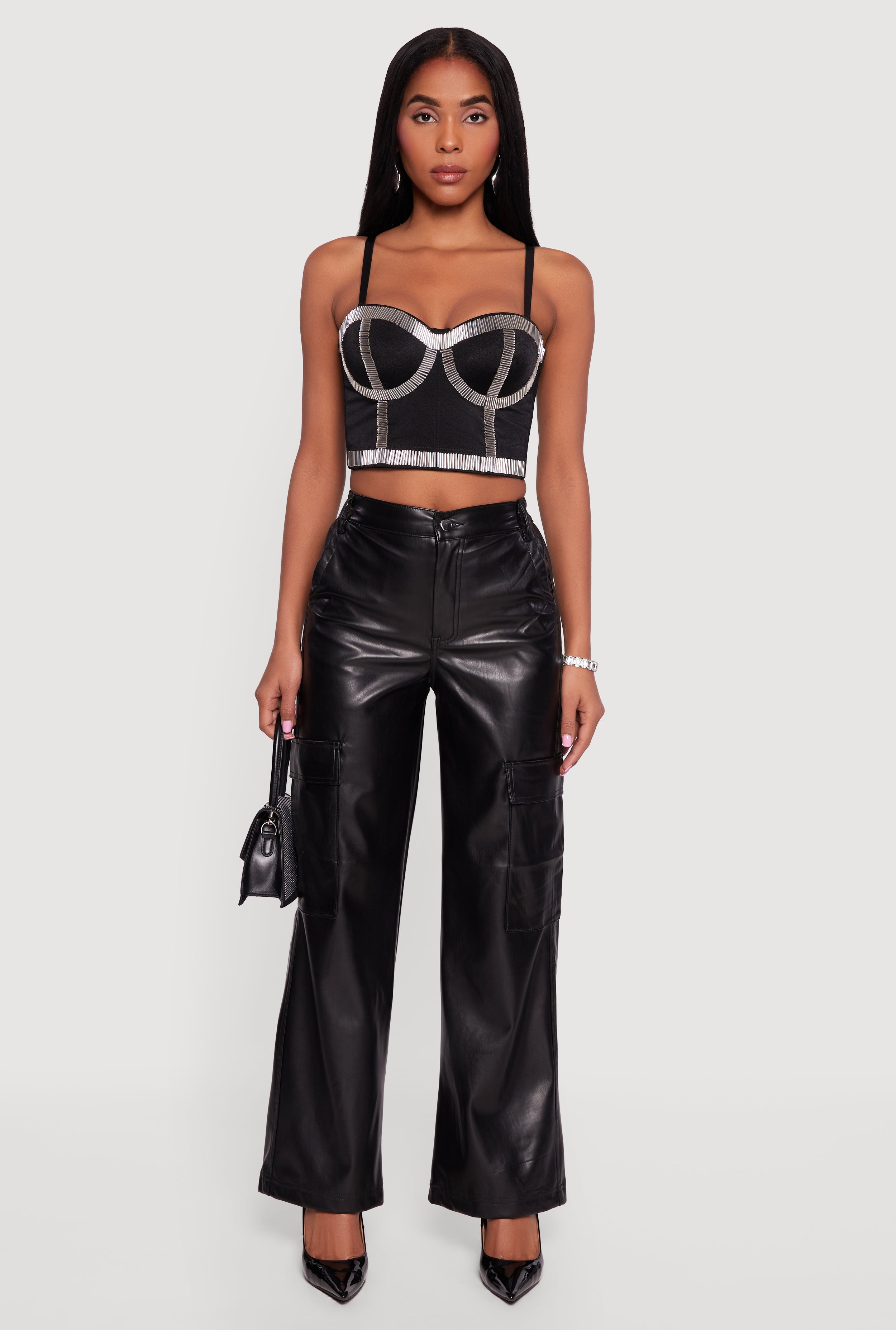 Faux Leather Straight Leg Cargo Pants