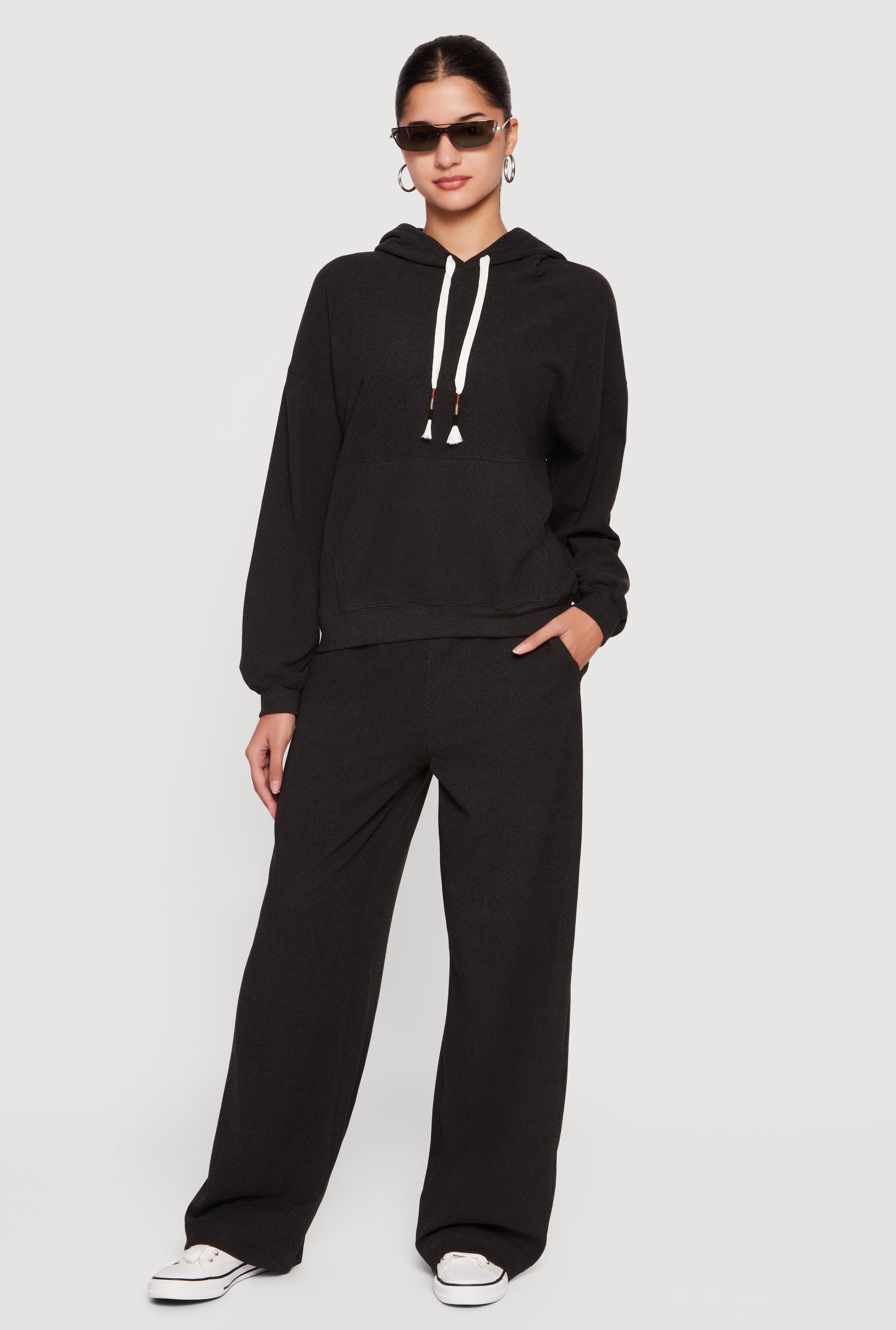 Soft Rib Knit Pull On Wide Leg Sweatpants