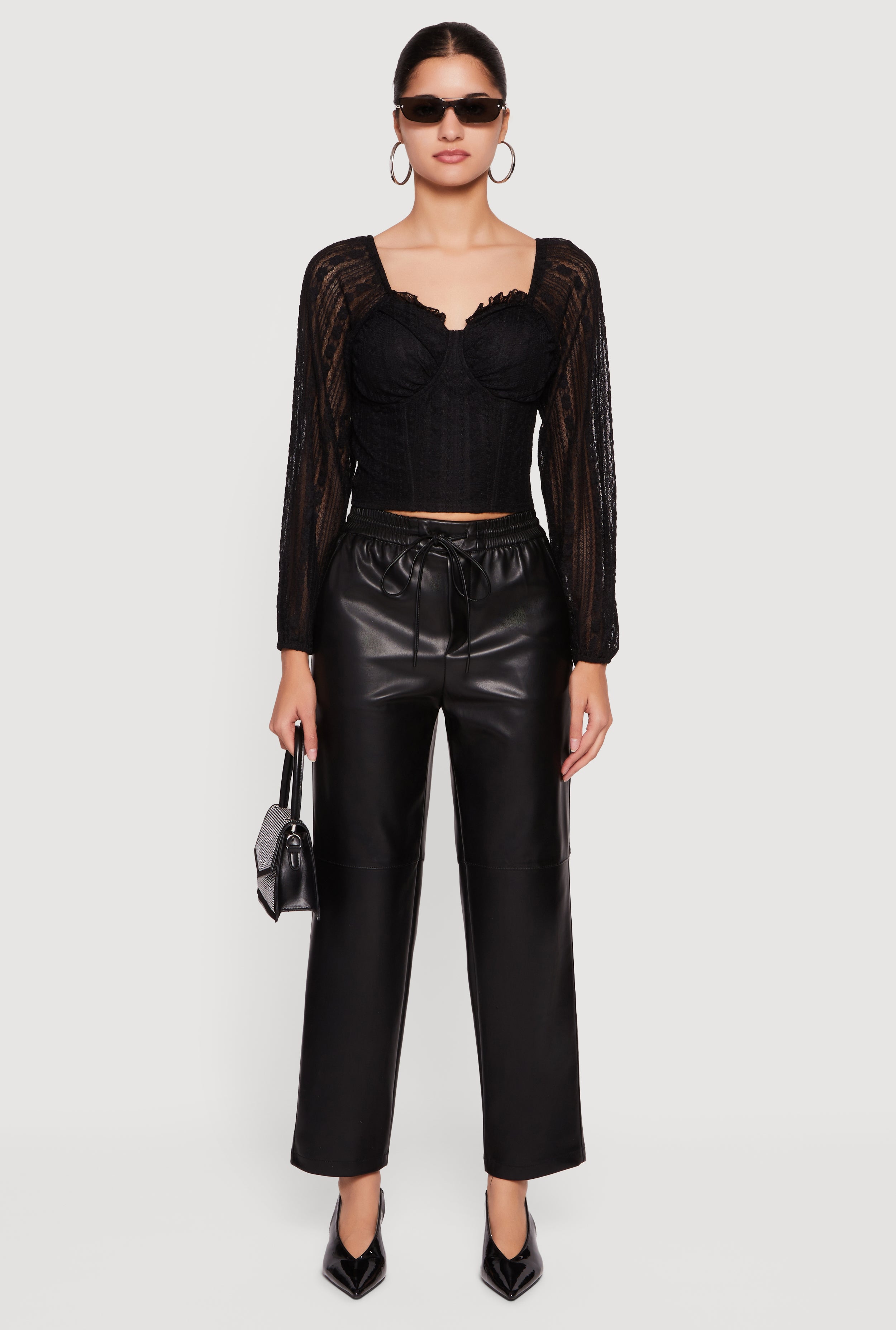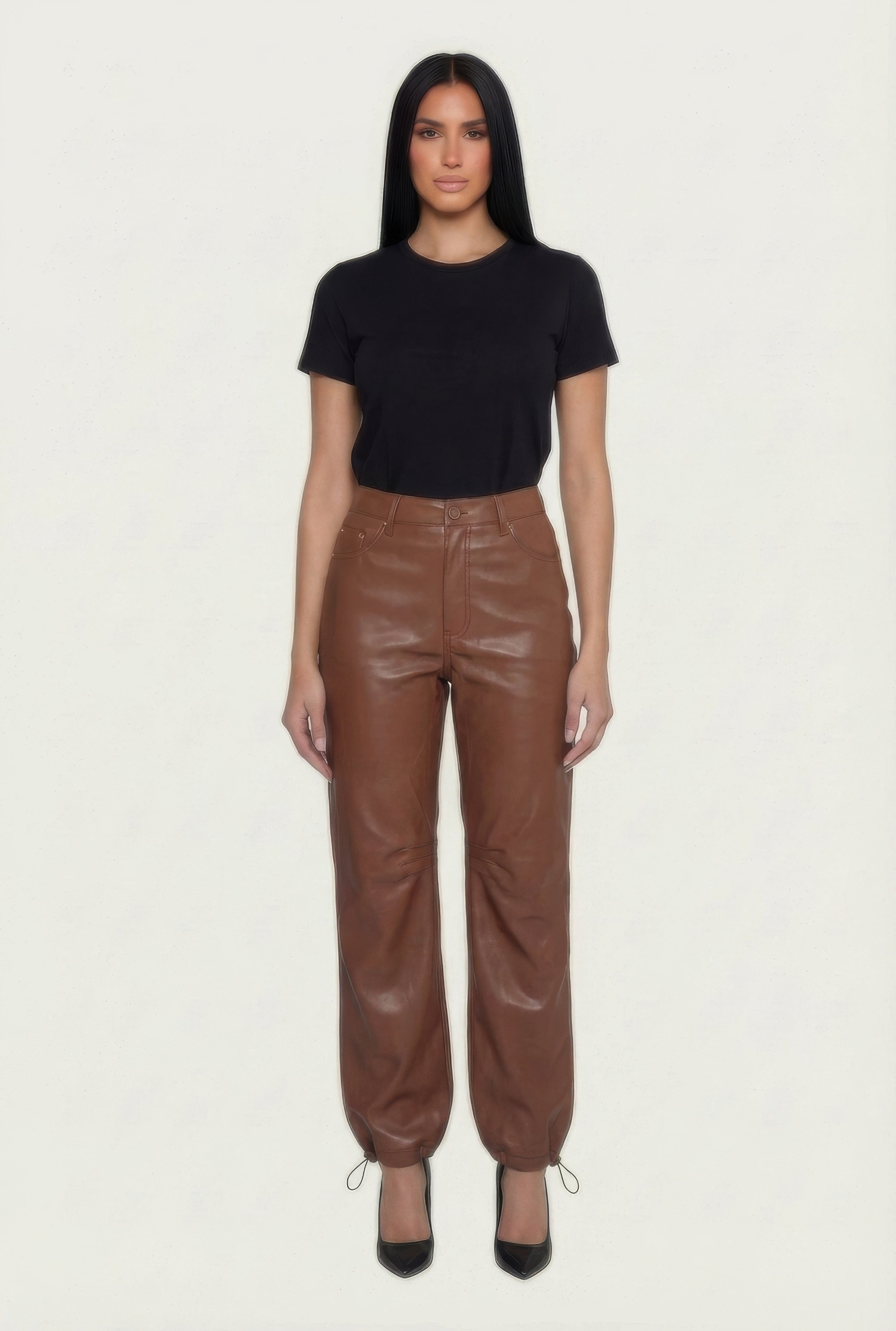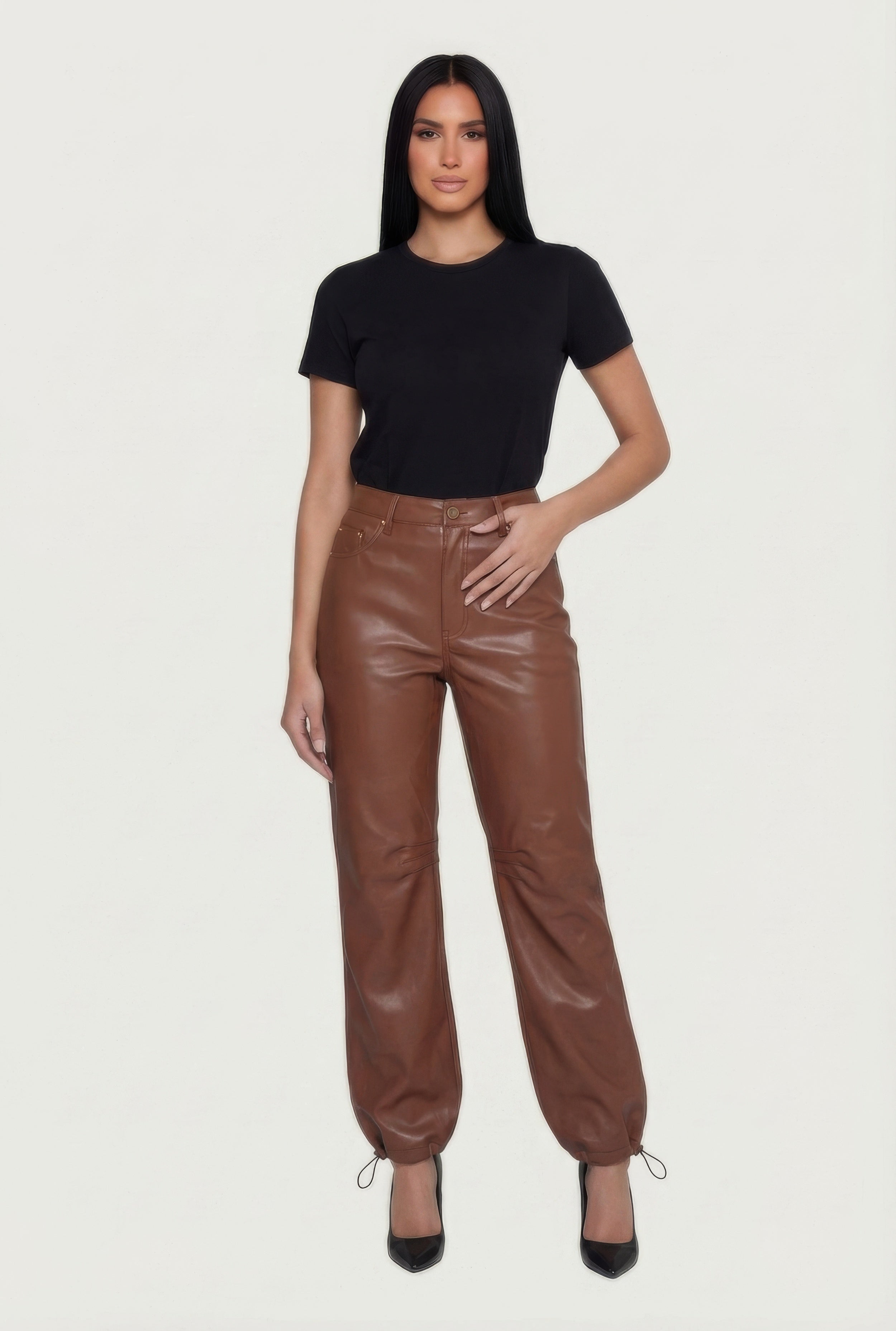 Faux Leather Drawstring Straight Leg Pants