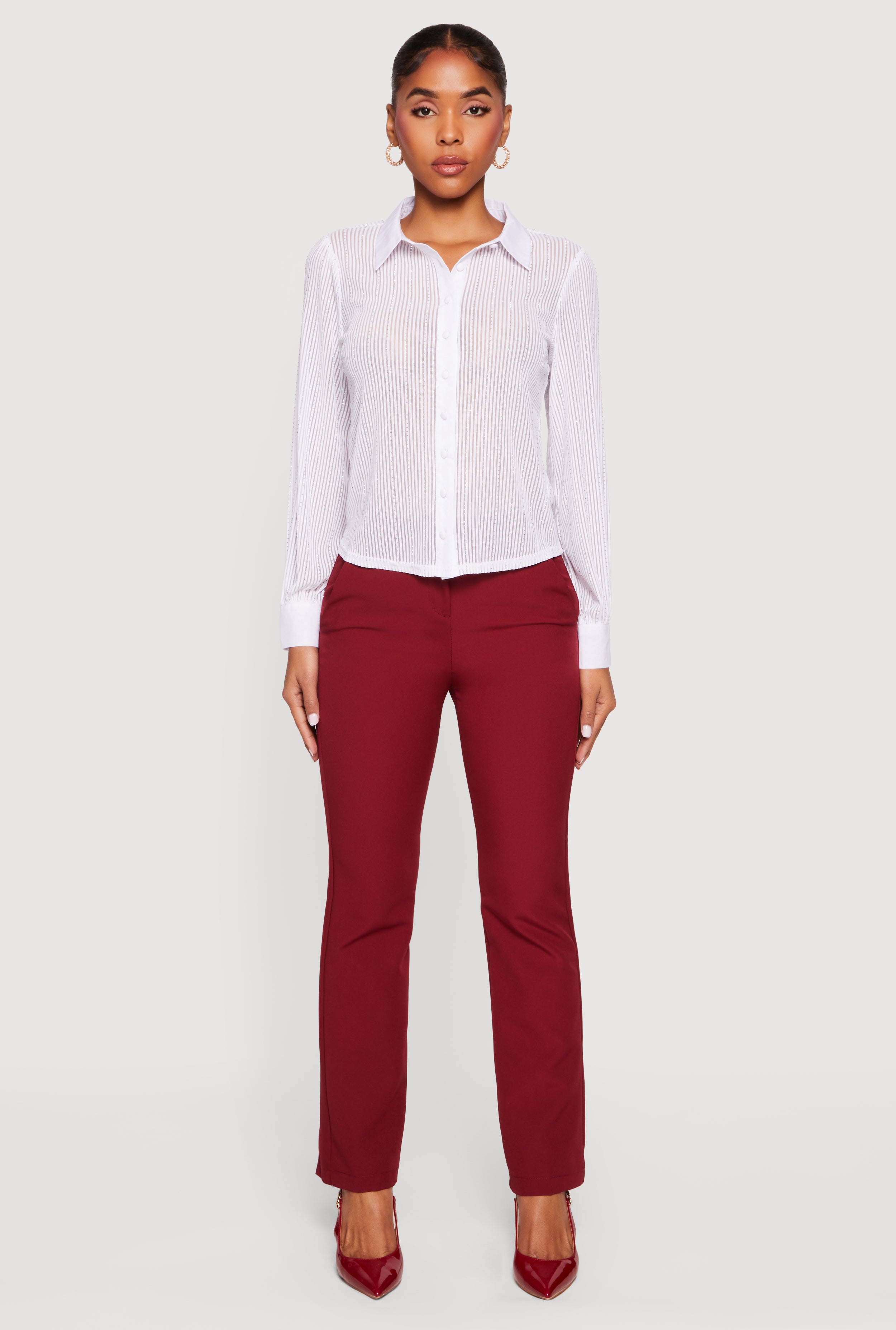 Solid Slim Straight Leg Dress Pants