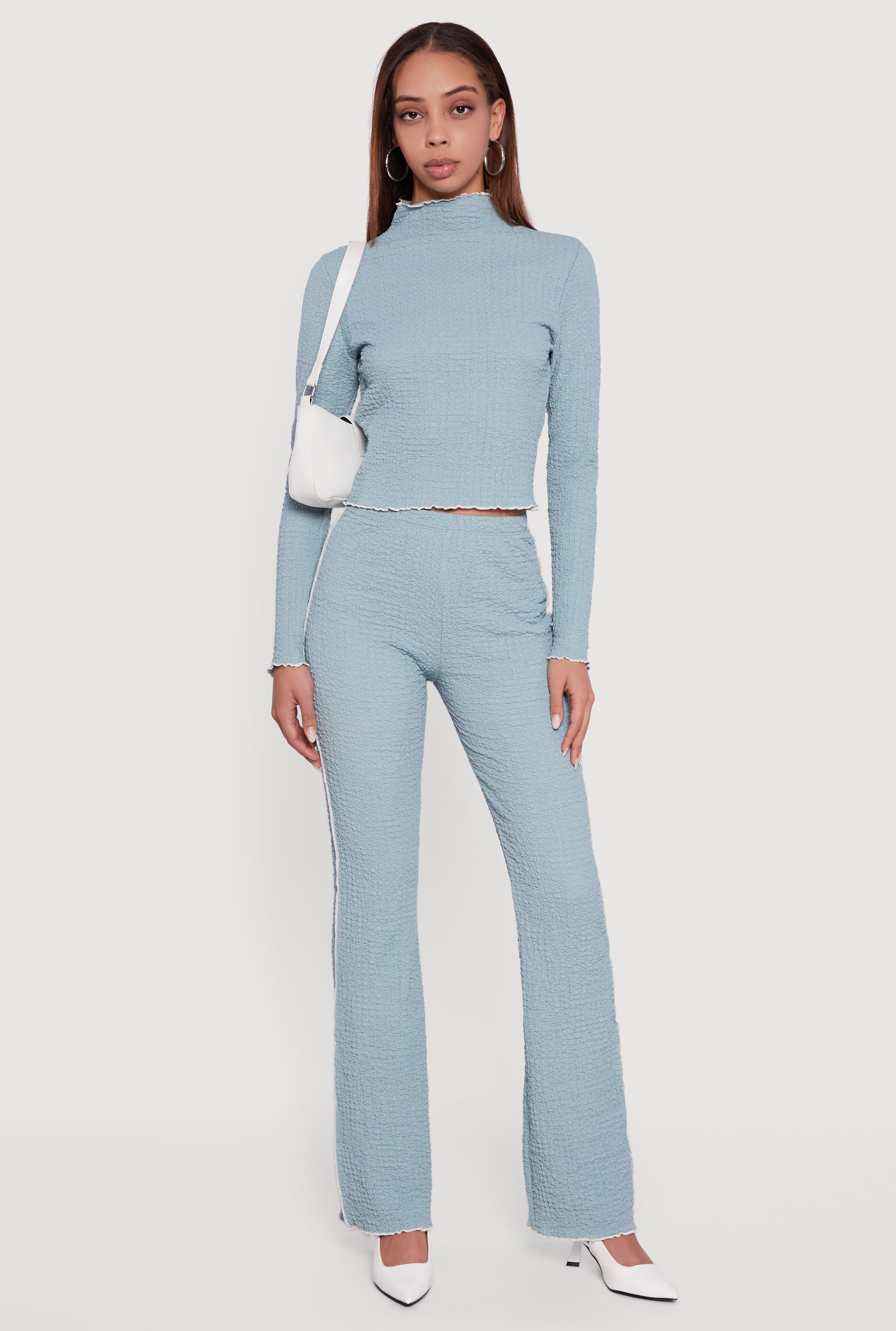Ribbed Knit High Waisted Flare Leg Pants
