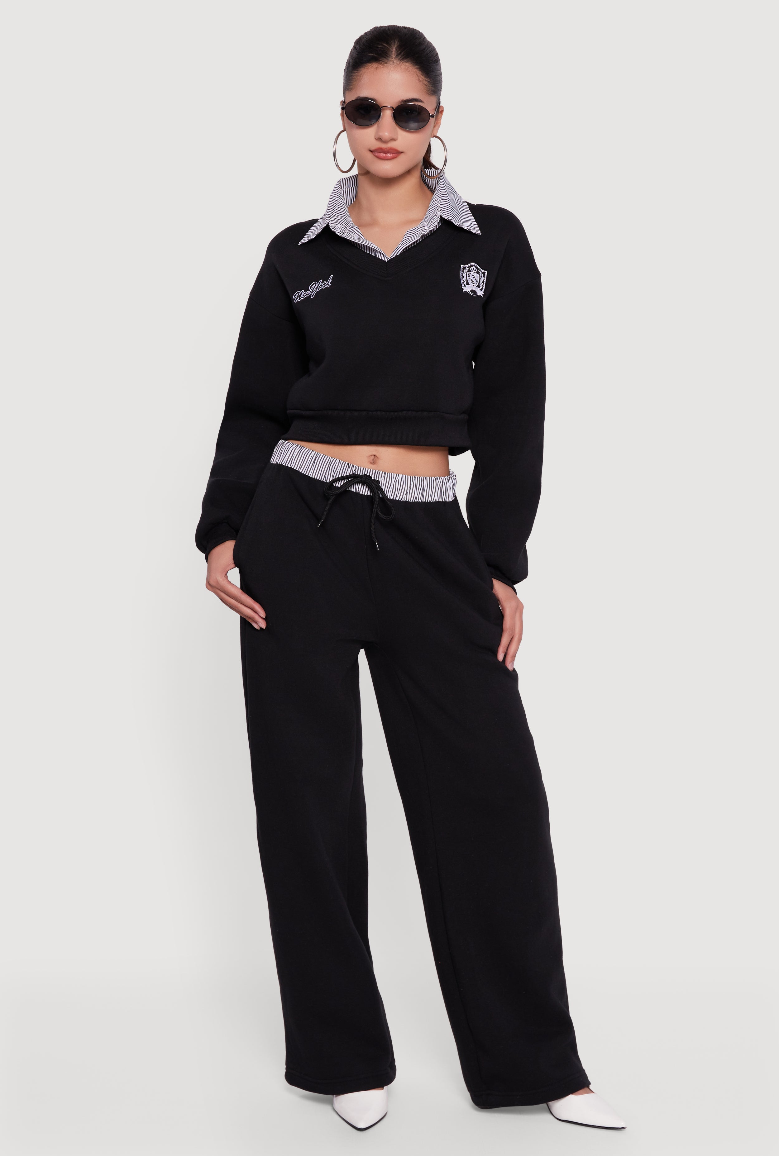 Contrast Trim Fleece Lined Wide Leg Pants