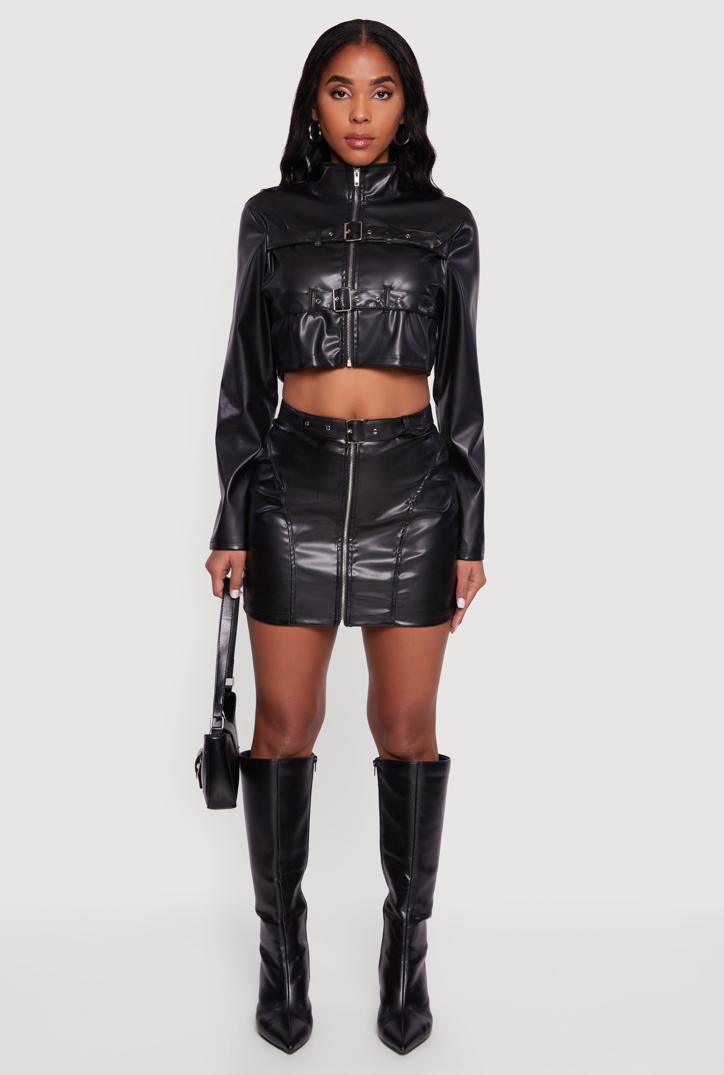 Belted Mini Faux Leather Skirt with Zip Front