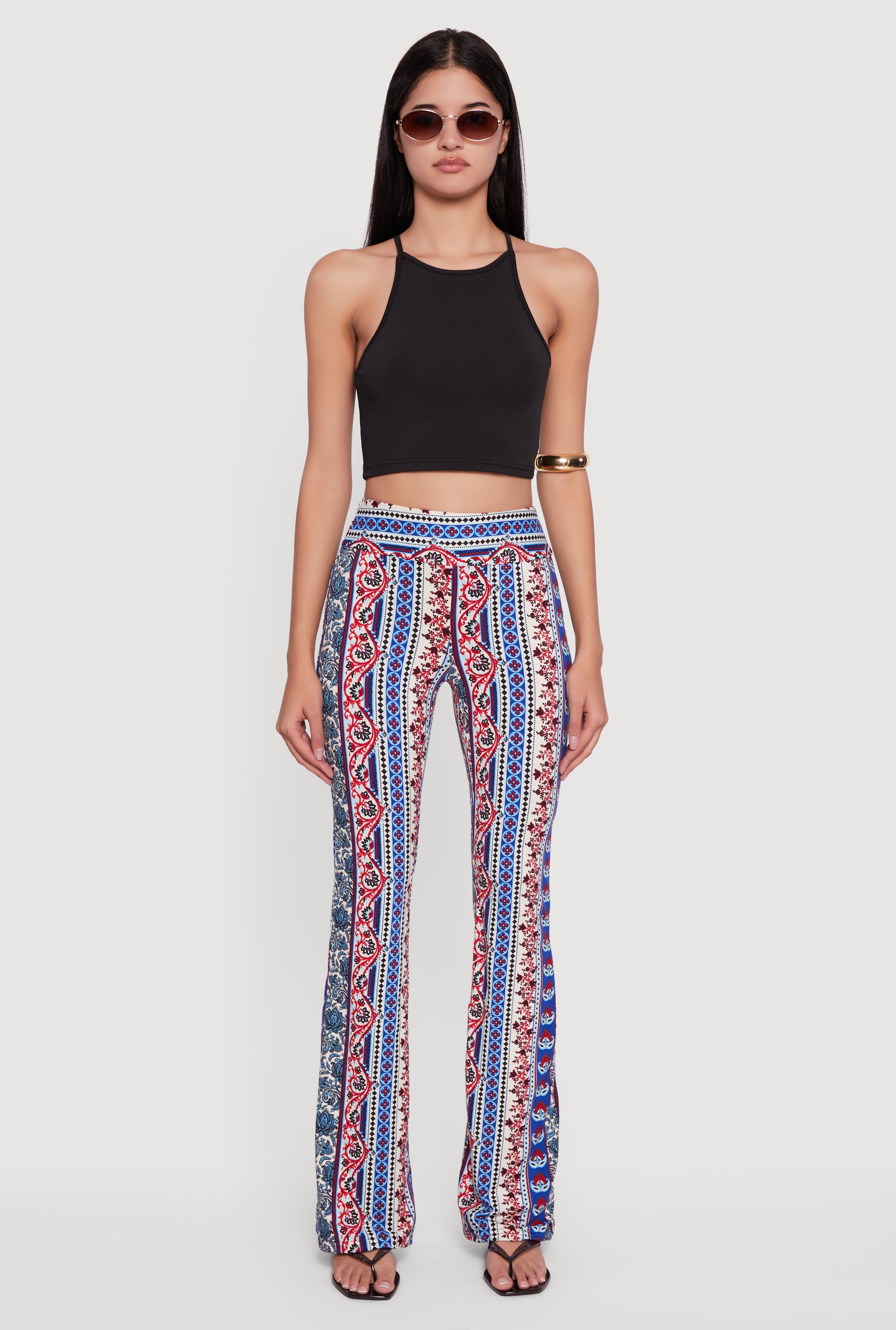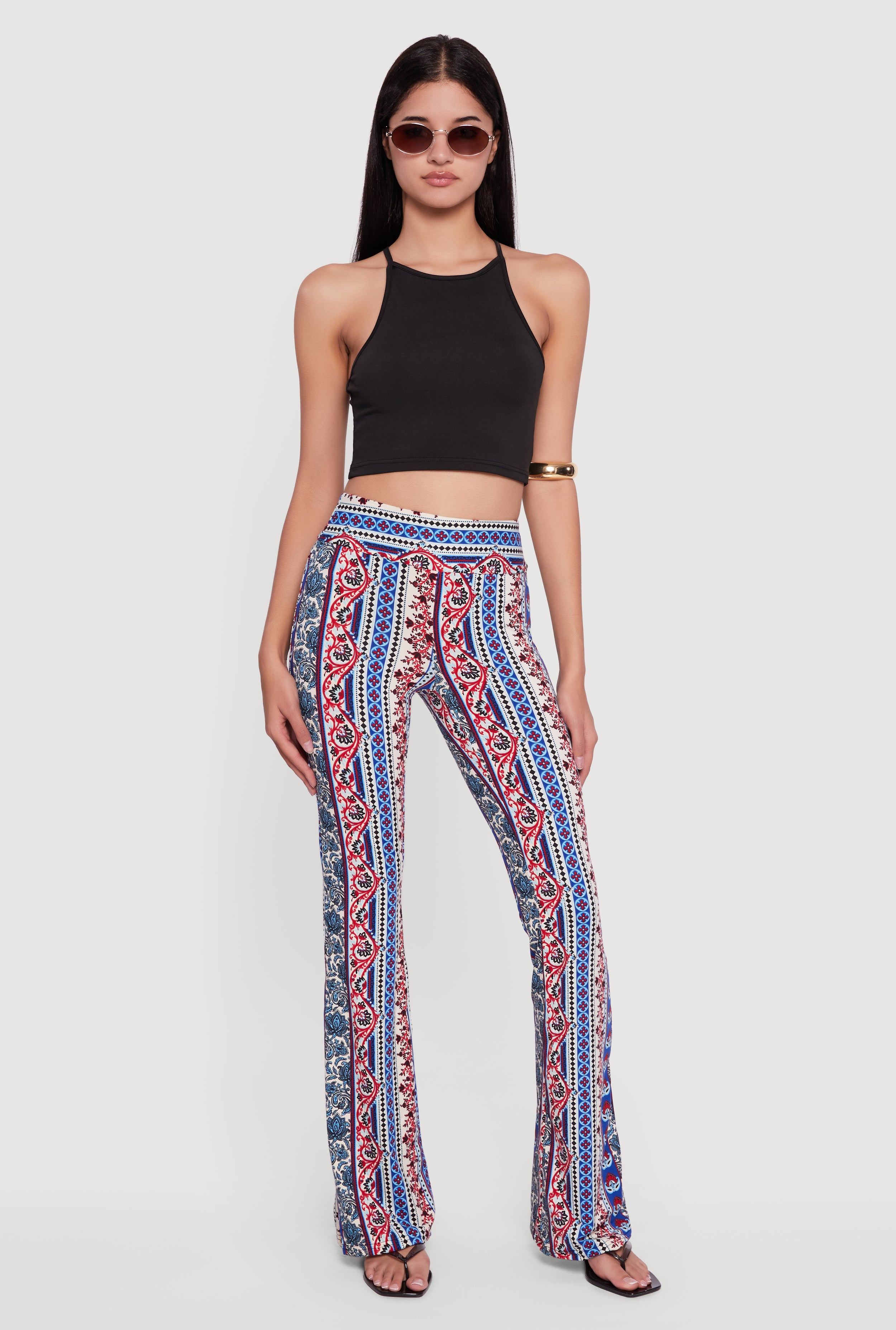 Boho Border Print High Waisted Flare Leg Pants