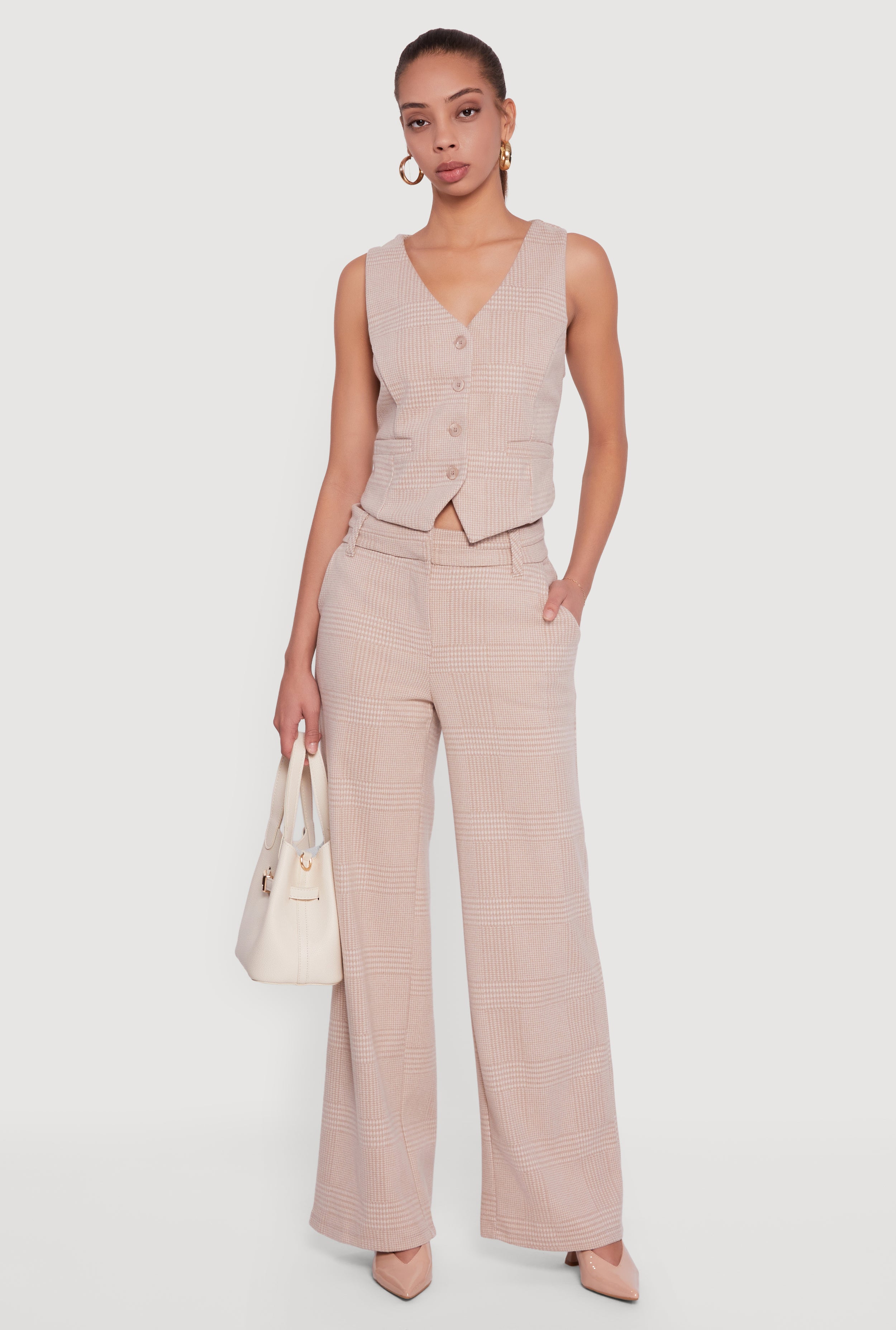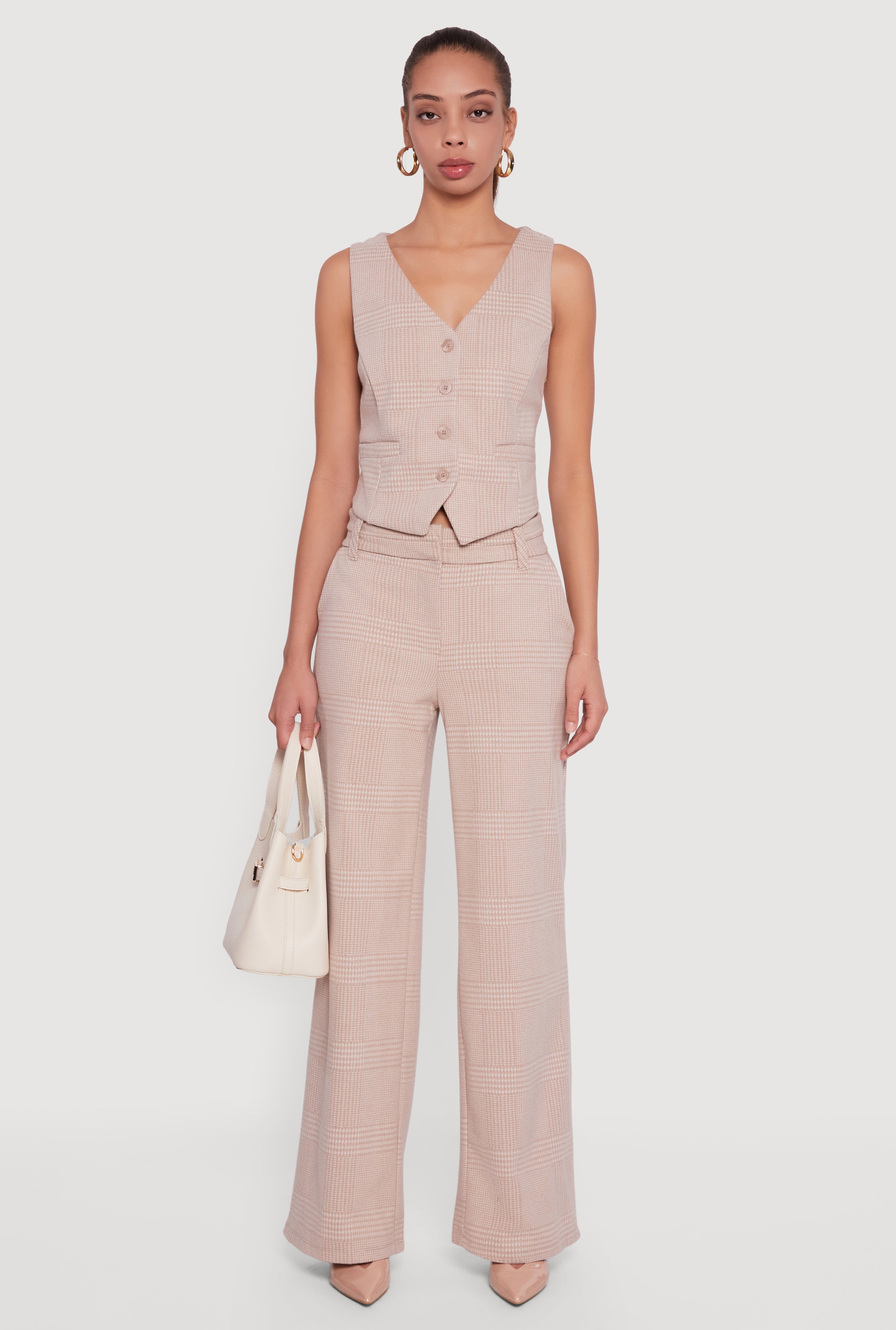 Houndstooth Plaid Straight Leg Dress Pants