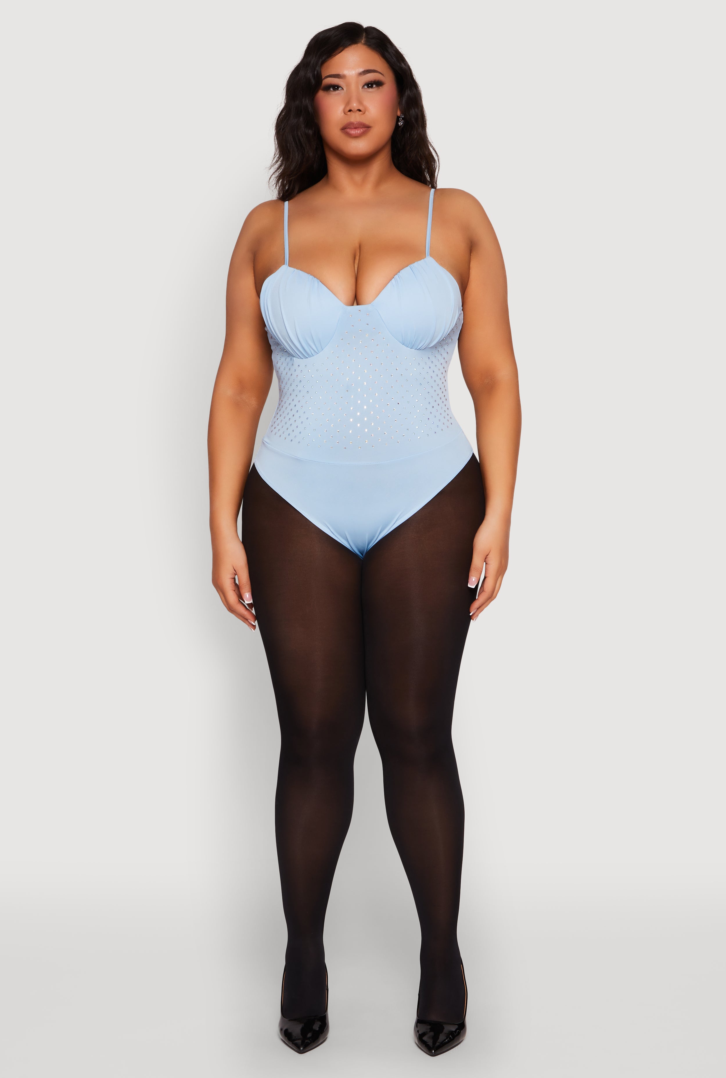 Turn heads and sparkle all night in our Plus Size Rhinestone Ruched Padded Bustier Bodysuit. Designed to hug your curves with a shaped silhouette, this sleeveless piece features a stunning sweetheart neckline and eye-catching rhinestones that add just the right amount of glam. Perfect for club nights or going out, it’s your new favorite go-to for a bold and confident look that makes every moment unforgettable.