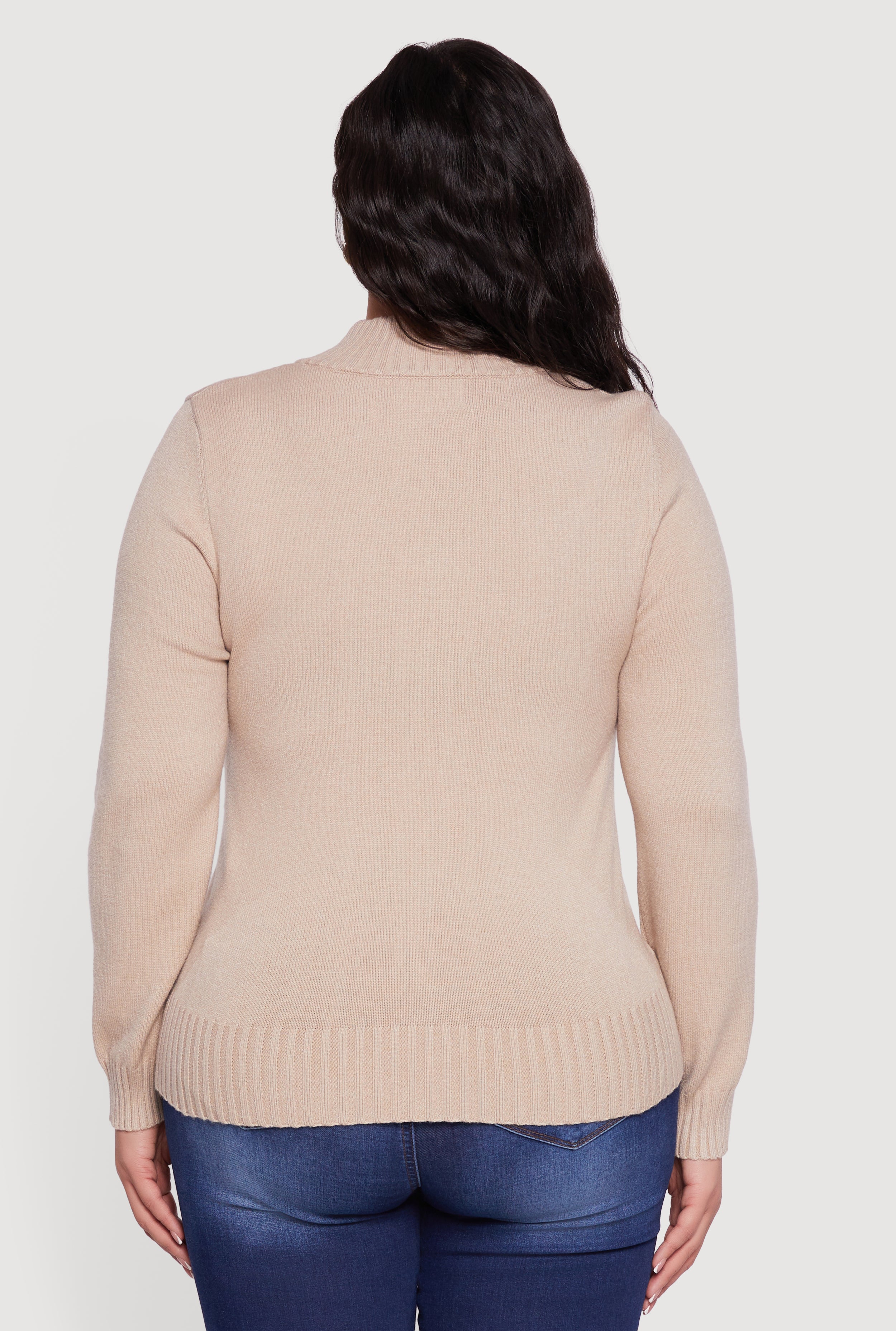 Plus Size 89 Zip Front Mock Neck Sweater