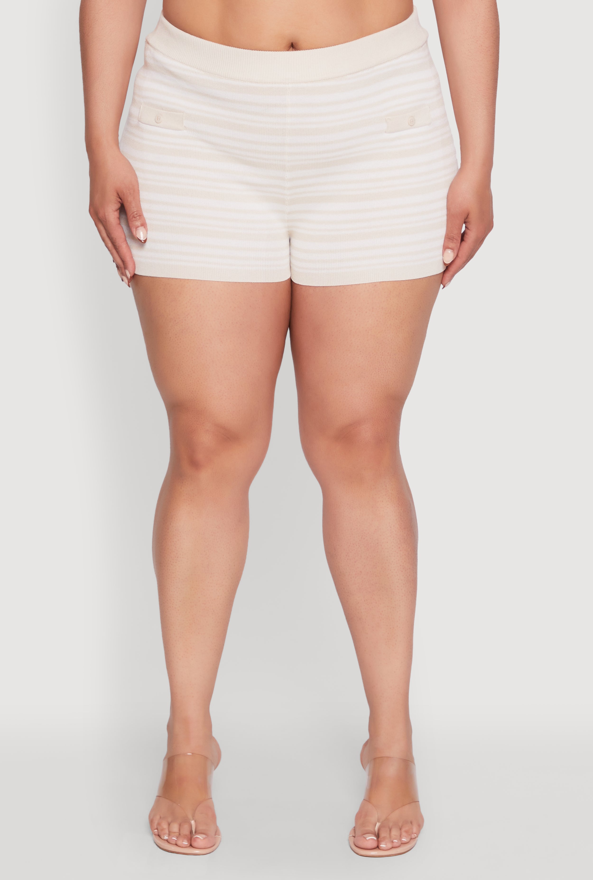 Step into summer with our Plus Size Daisy Striped Button Detail Shorts, the perfect blend of playful style and effortless comfort. Featuring a charming striped pattern and cute faux buttons, these shorts are your new go-to for sunny days, casual outings, or just feeling fabulous wherever you go. Designed with your curves in mind, they offer a flattering fit that keeps you feeling confident and cool all season long.