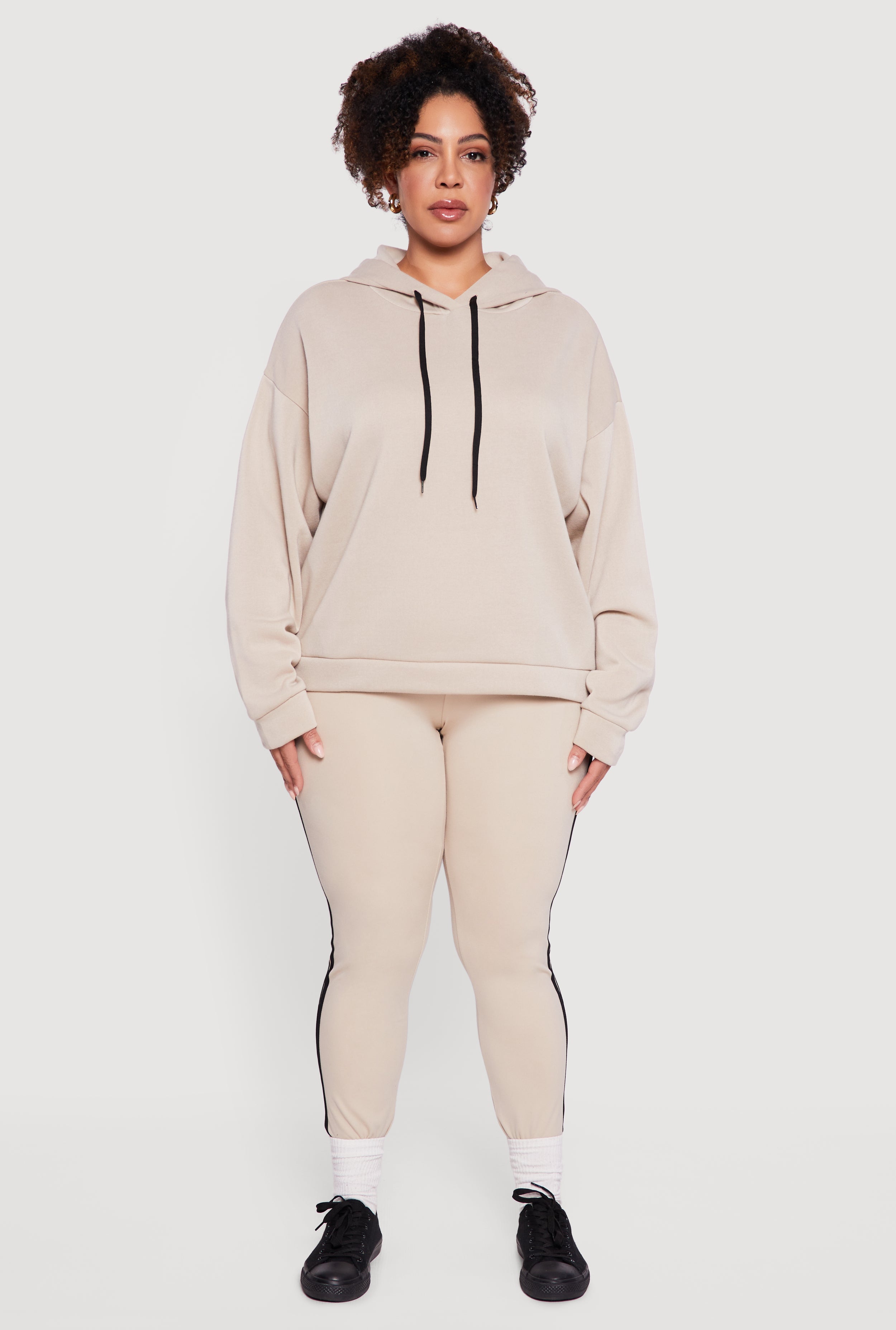 Cozy up in this Plus Size Drawstring Hooded Drop Sleeve Sweatshirt designed to keep your casual looks effortlessly cool. Crafted from soft fleece, it features a classic fit that flatters your curves while the drop shoulder and blouson sleeves add a trendy vibe. The adjustable drawstring hood and pullover style make it easy to wear, perfect for lounging or running errands in style.
