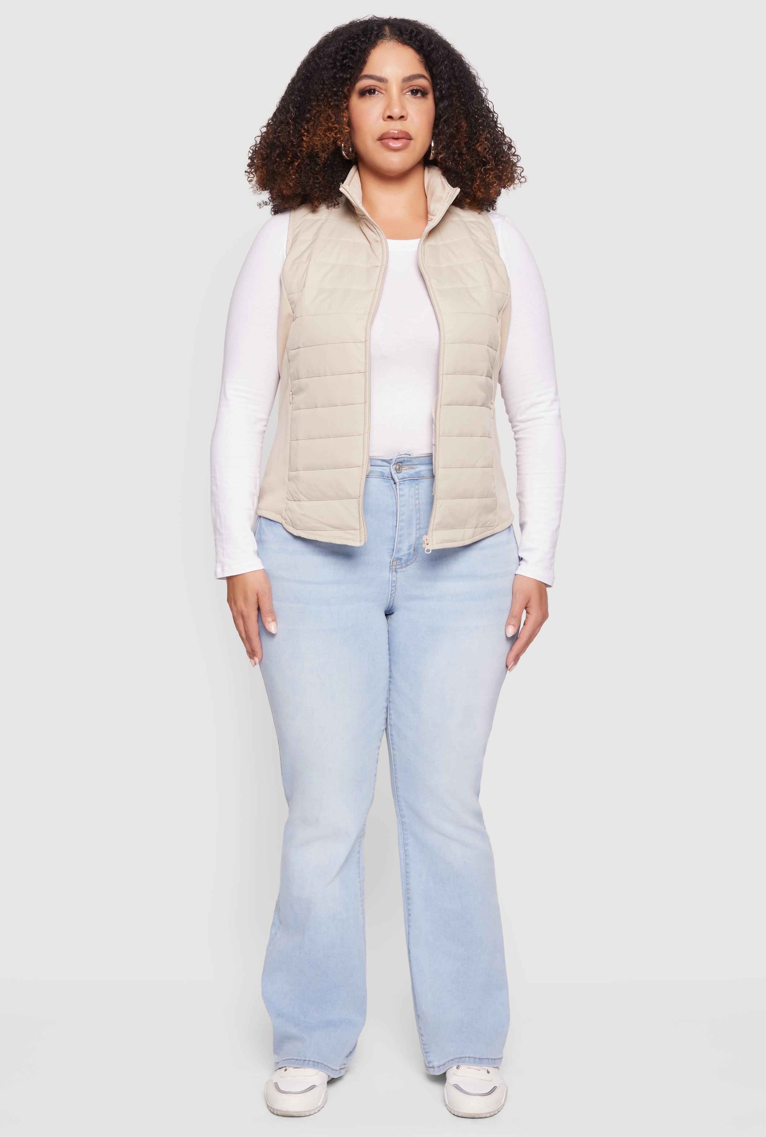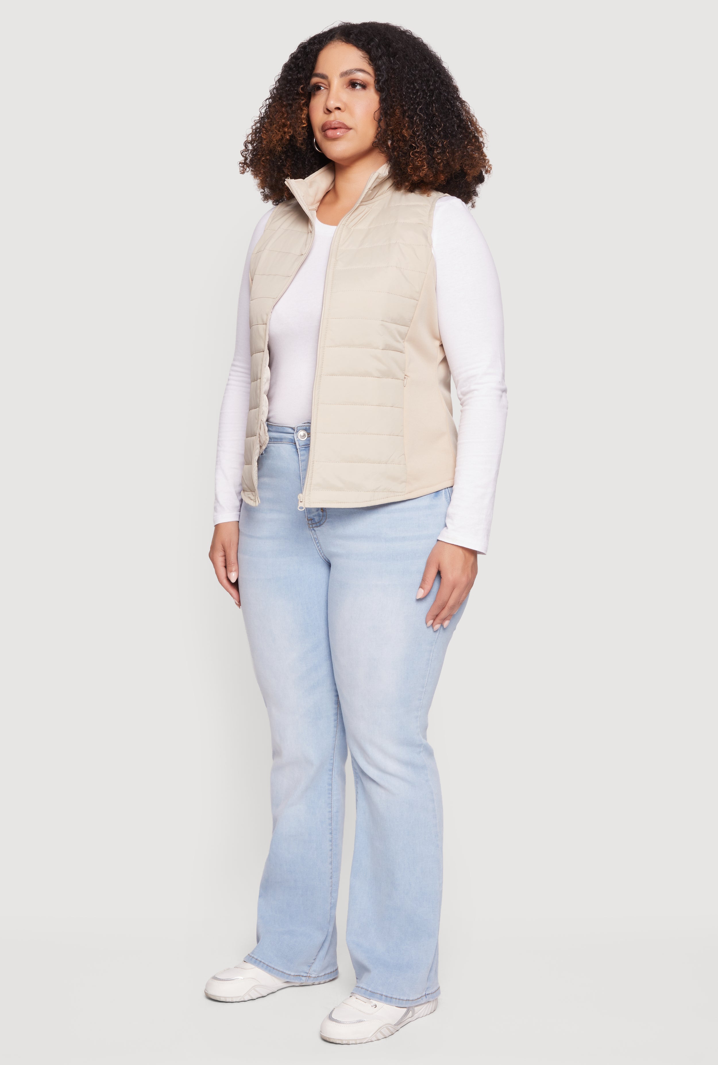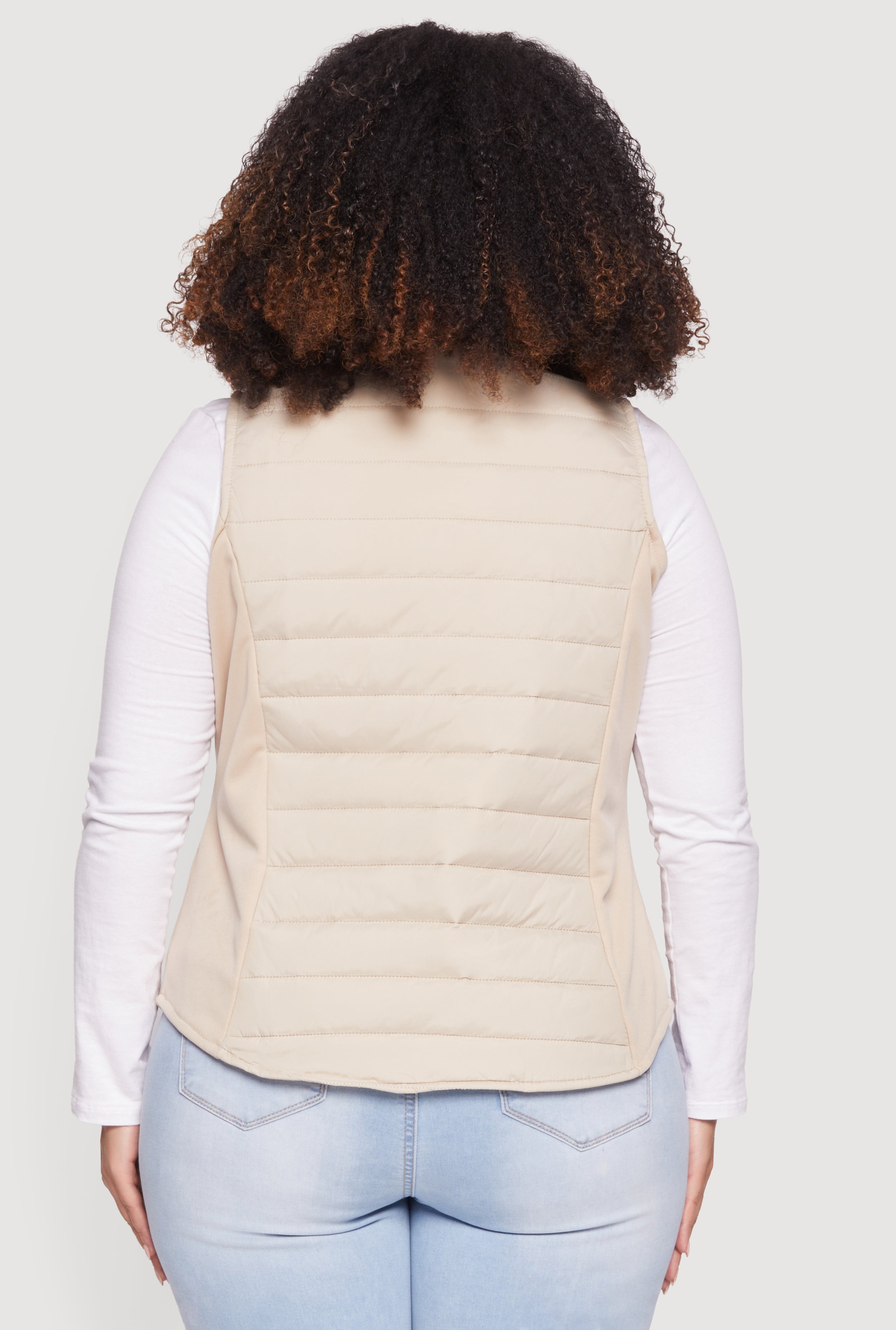 Plus Size Fleece Lined Side Detail Nylon Puffer Vest