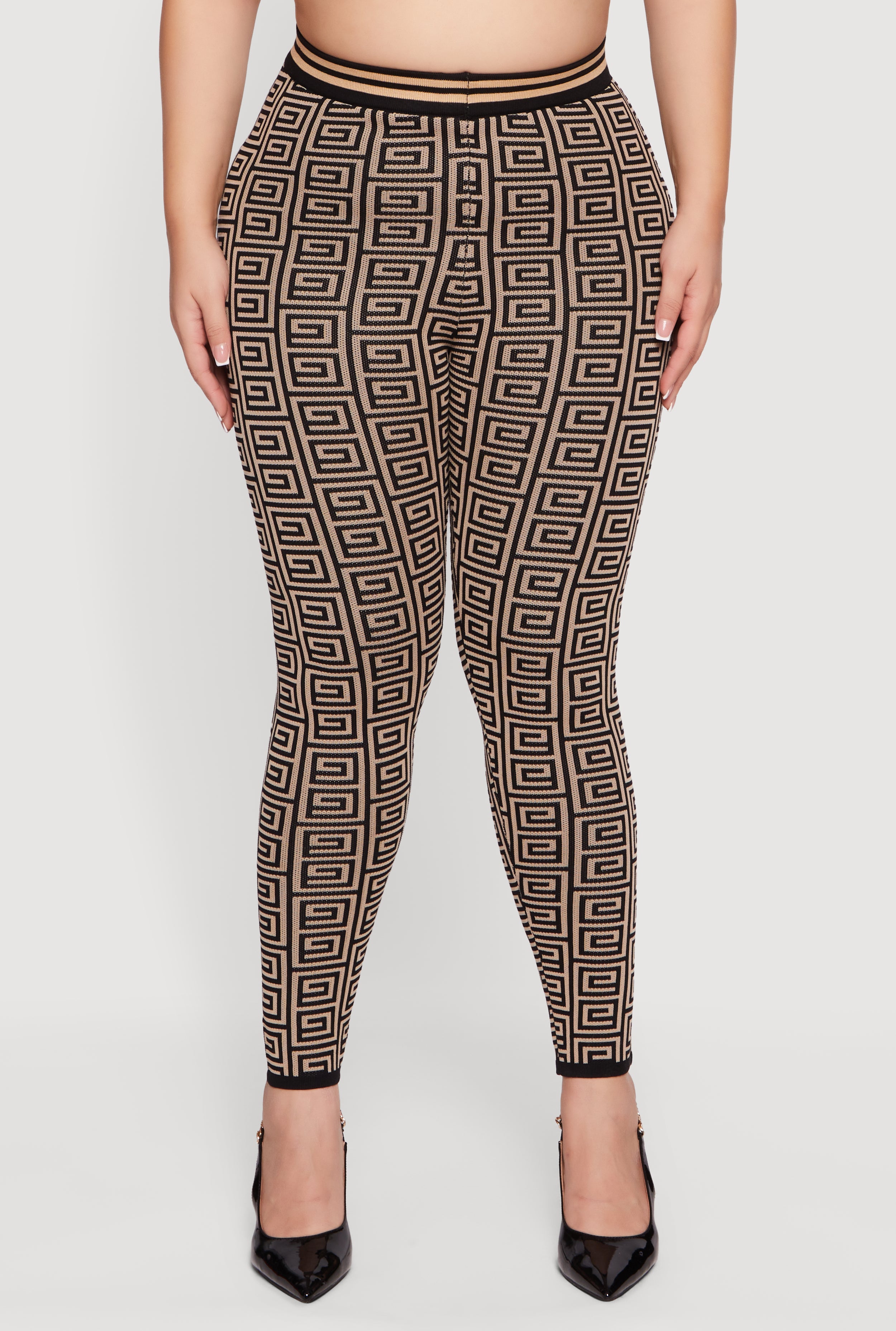 Step into bold style and comfort with these Plus Size High Waisted Geometric Print Leggings. Designed to hug your curves with a flattering high waist and skinny fit, these leggings bring a fresh, modern vibe to your casual wardrobe. The eye-catching geometric pattern adds a playful edge while the ankle length keeps things sleek and versatile for any day out or chill day in.