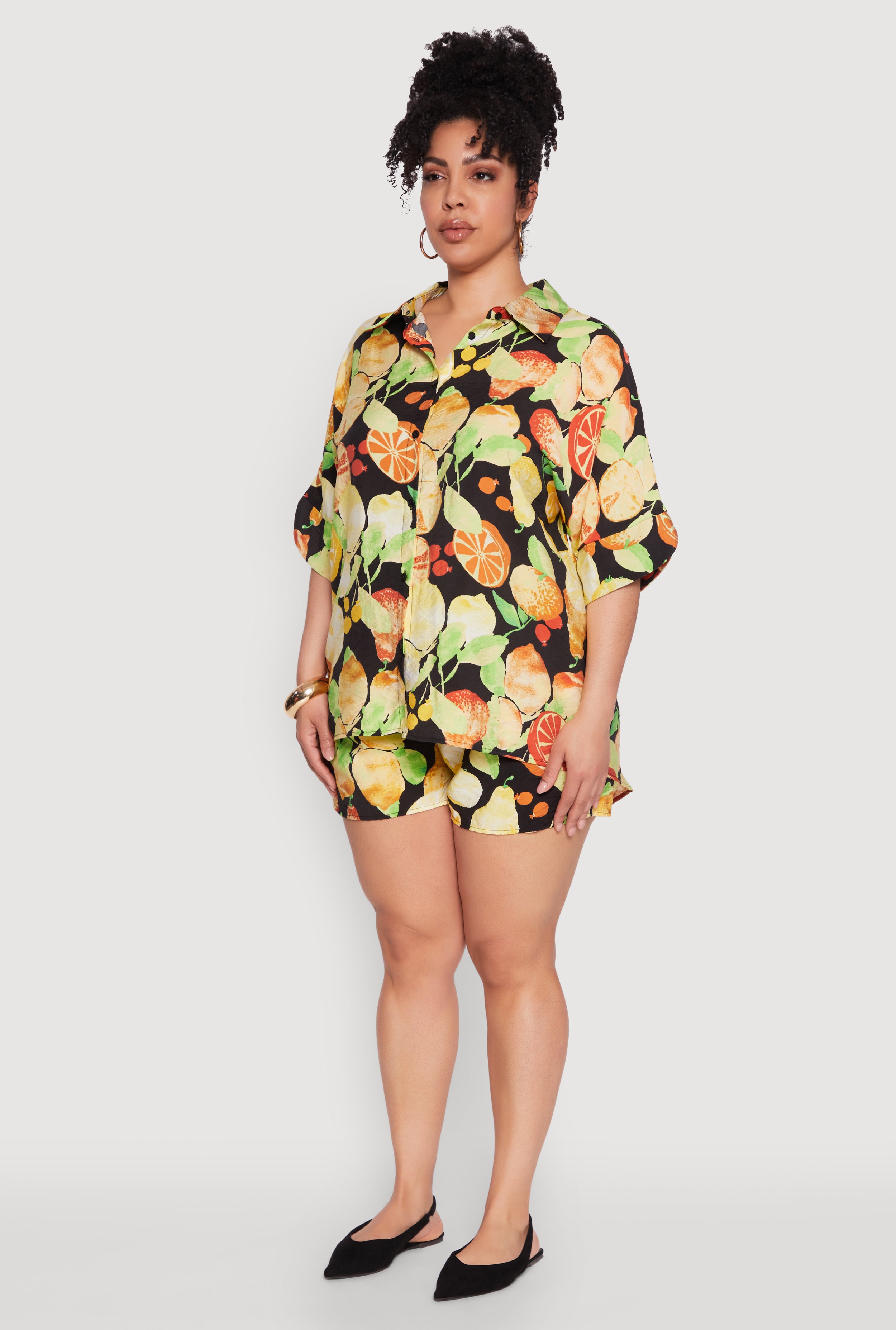 Stay cool and stylish with our Plus Size Airy Fruit Print Shirt, perfect for adding a fun and fresh vibe to your wardrobe. Its lightweight crepe knit fabric feels breezy and comfortable, making it ideal for everyday wear or casual sets. The classic fit and timeless silhouette ensure you look effortlessly chic, while the button front and shirt collar add a touch of polish. With 3/4 sleeves, this shirt is versatile and perfect for transitioning through seasons. Embrace your unique style and enjoy a look that’s both playful and polished.