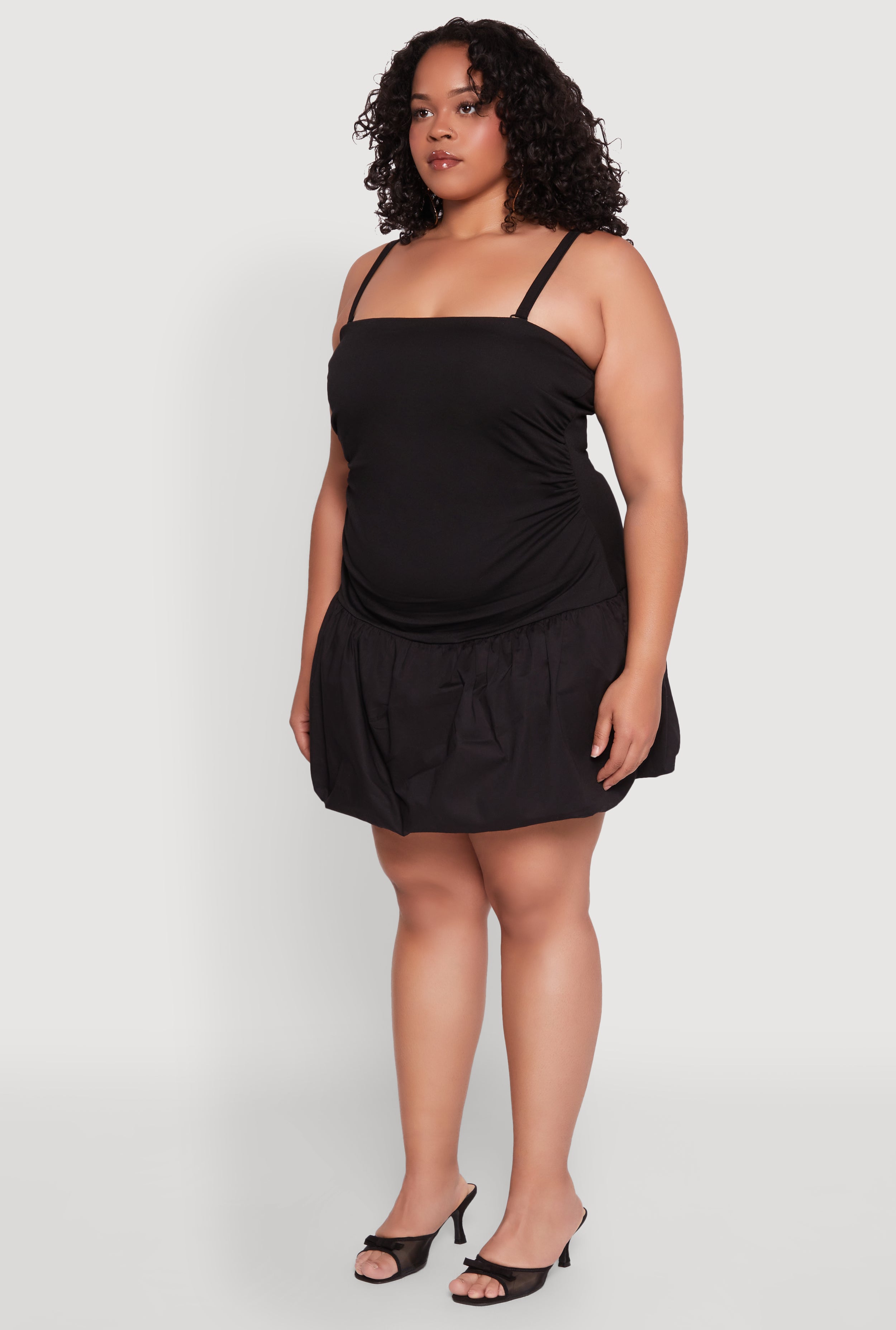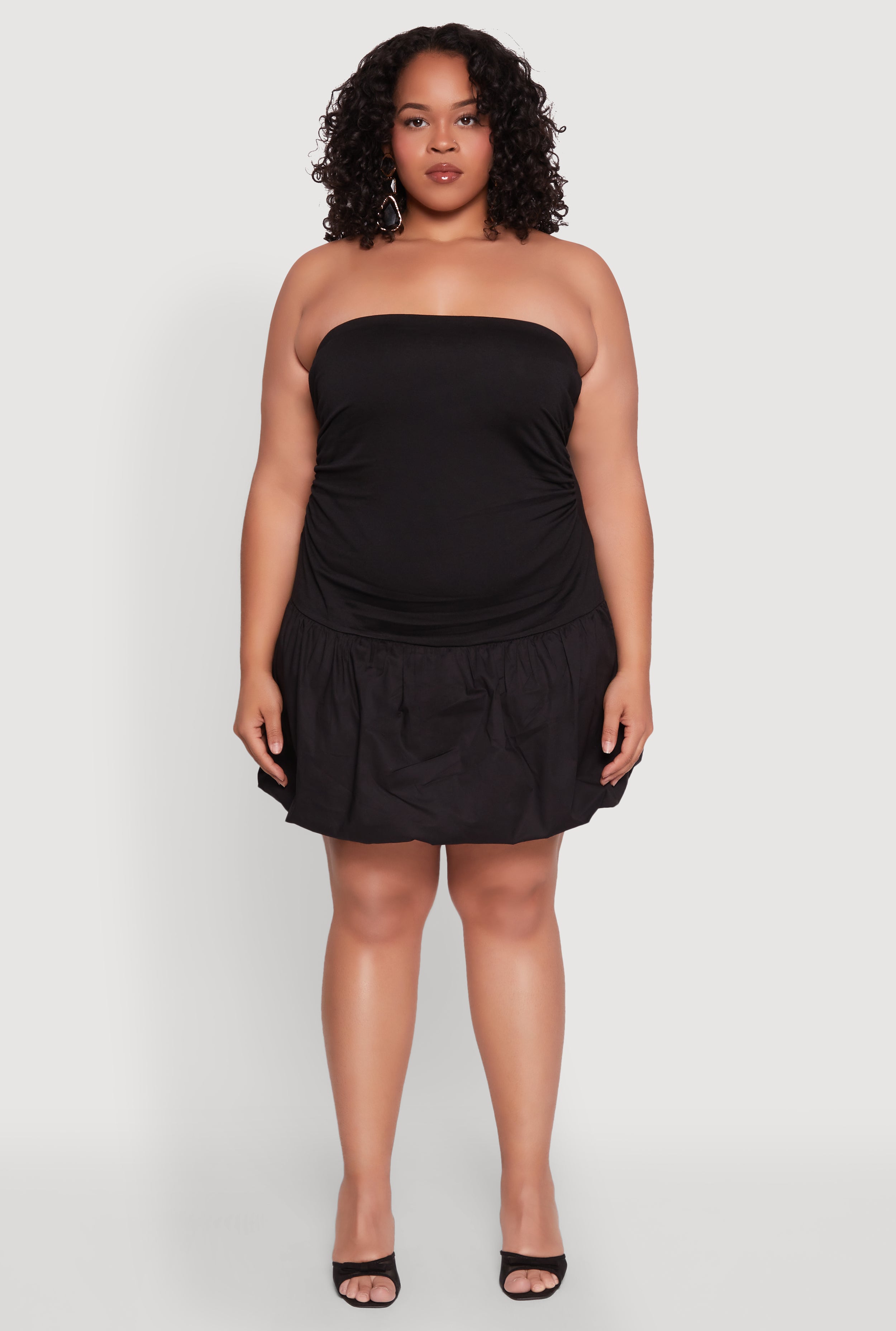 Get ready to turn heads with the Plus Size Almost Famous Convertible Bubble Hem Dress. This versatile piece is perfect for those who love to switch up their look and stand out at any event. With its curve-hugging fit and flirty short length, it’s designed to make you feel confident and fabulous. Whether you're headed to a cocktail party or just want to feel sexy and stylish, this dress has got you covered. The strapless, bubble hem adds a playful touch, and the adjustable straps make it easy to customize your perfect fit. Plus, you can wear it two ways, making it a must-have in your wardrobe for endless style options.
