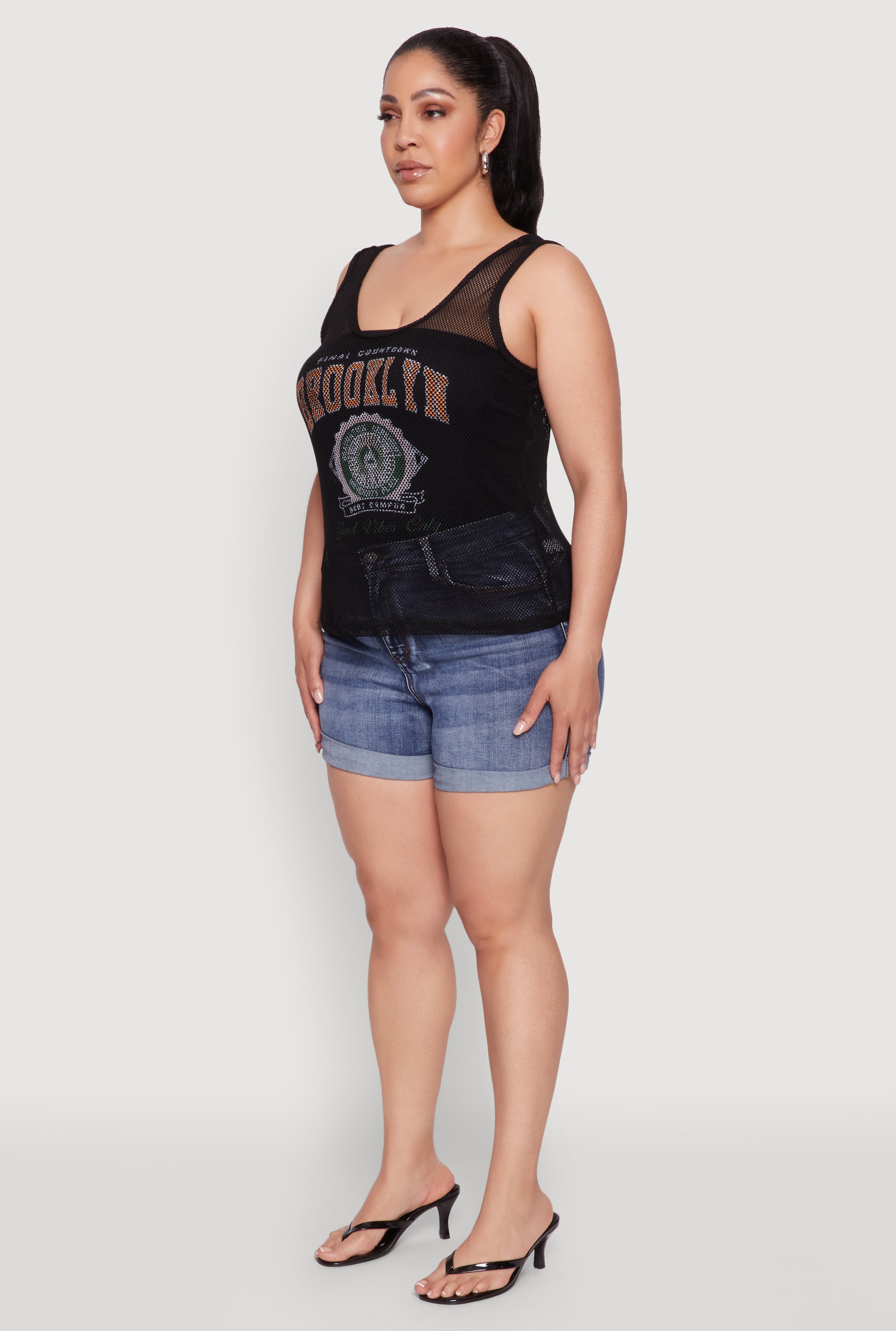 Plus Size Brooklyn Graphic Fishnet Tank Top
