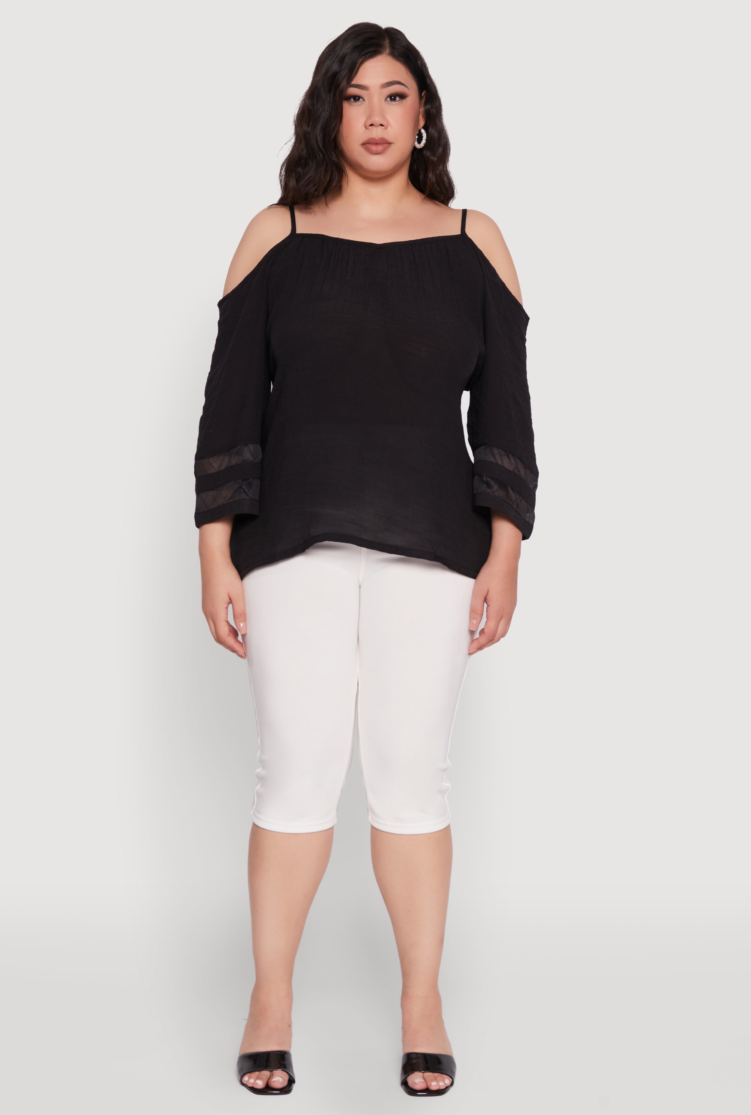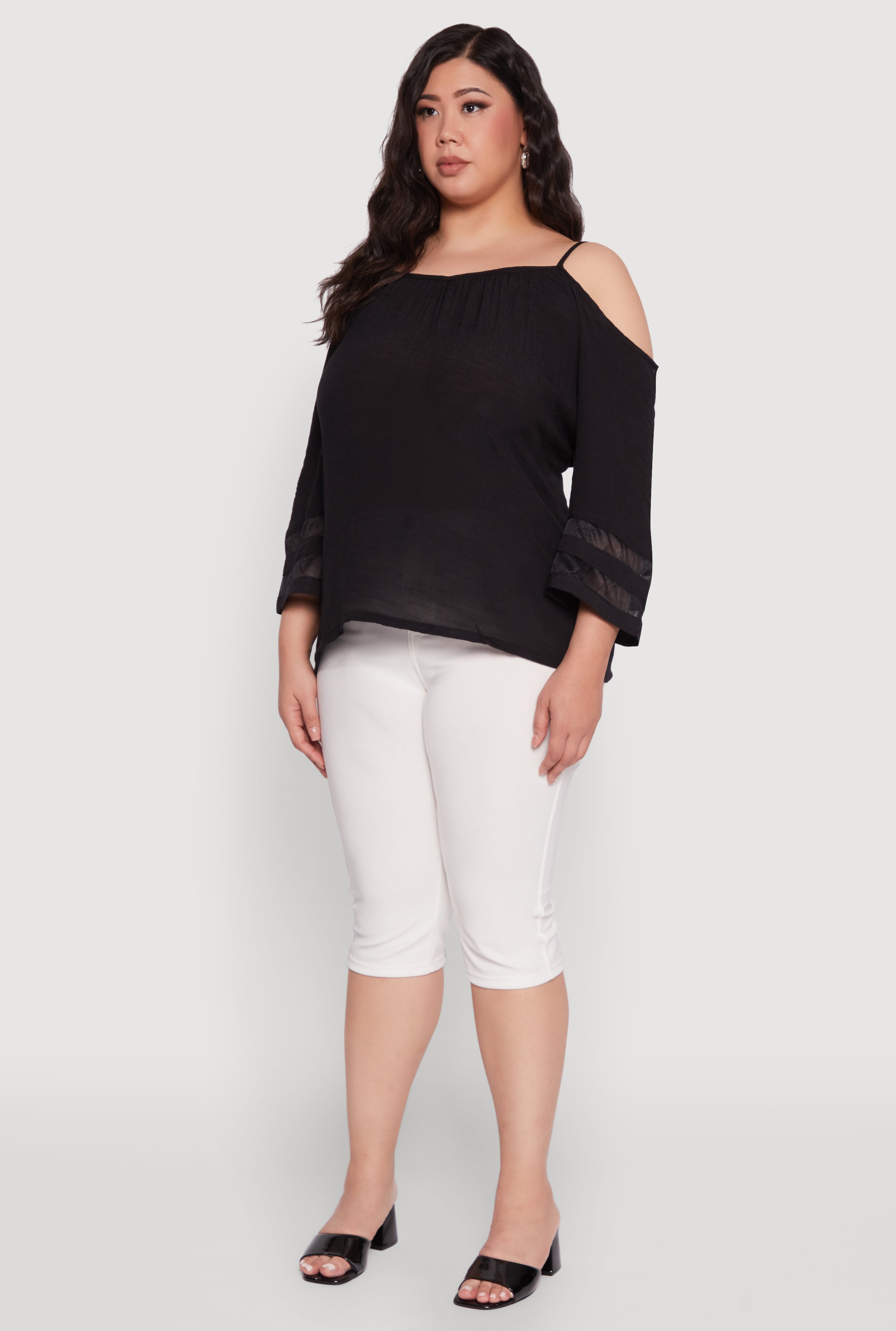 Step up your style game with our Plus Size Chic Cold Shoulder Gauze Knit Top. Designed for comfort and confidence, this top features a breezy gauze knit fabric and adjustable straps that let you customize your look. The classic fit and timeless silhouette make it a versatile staple for any wardrobe. Perfect for those sunny days or layered looks, this top is your new go-to for effortless, chic fashion.
