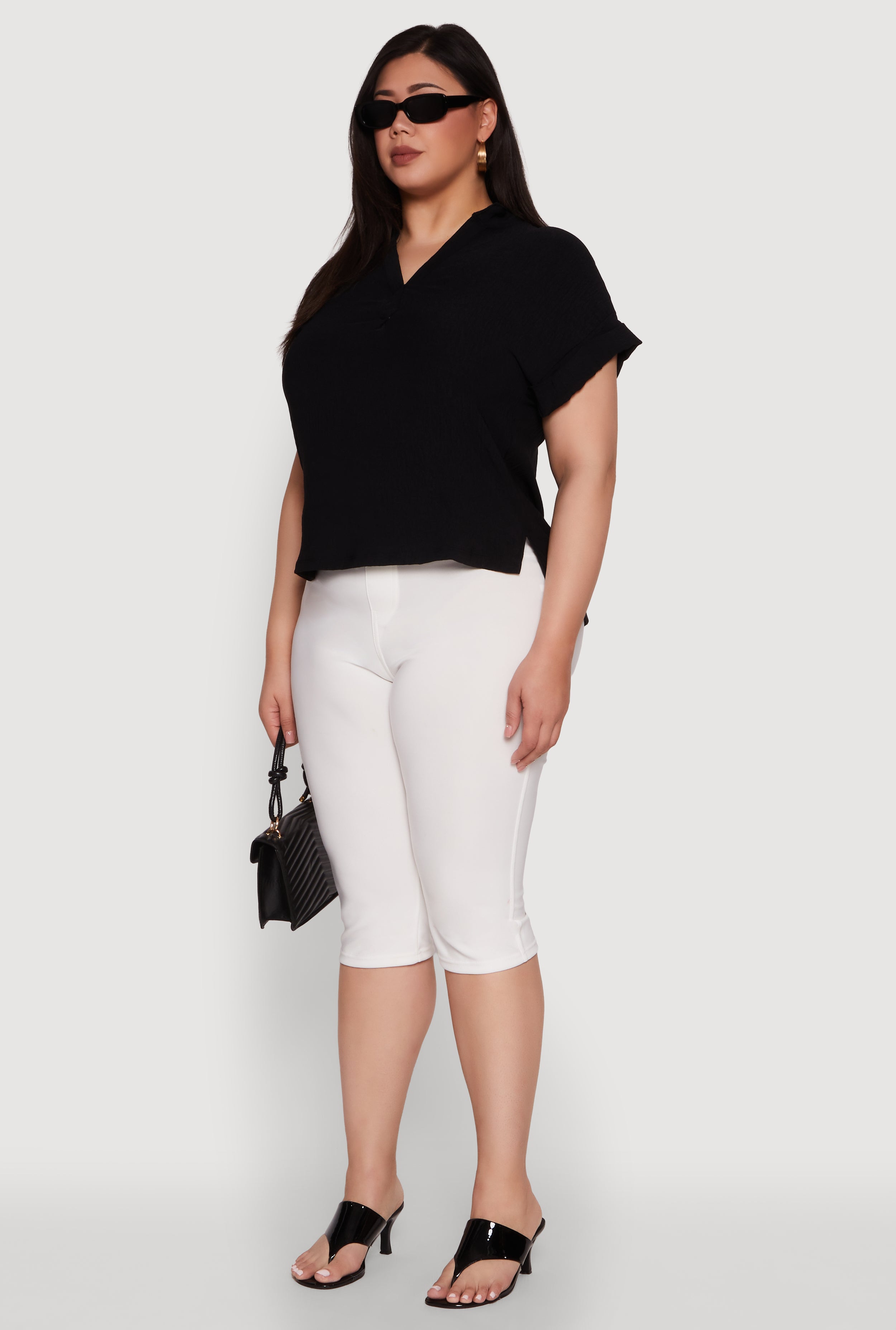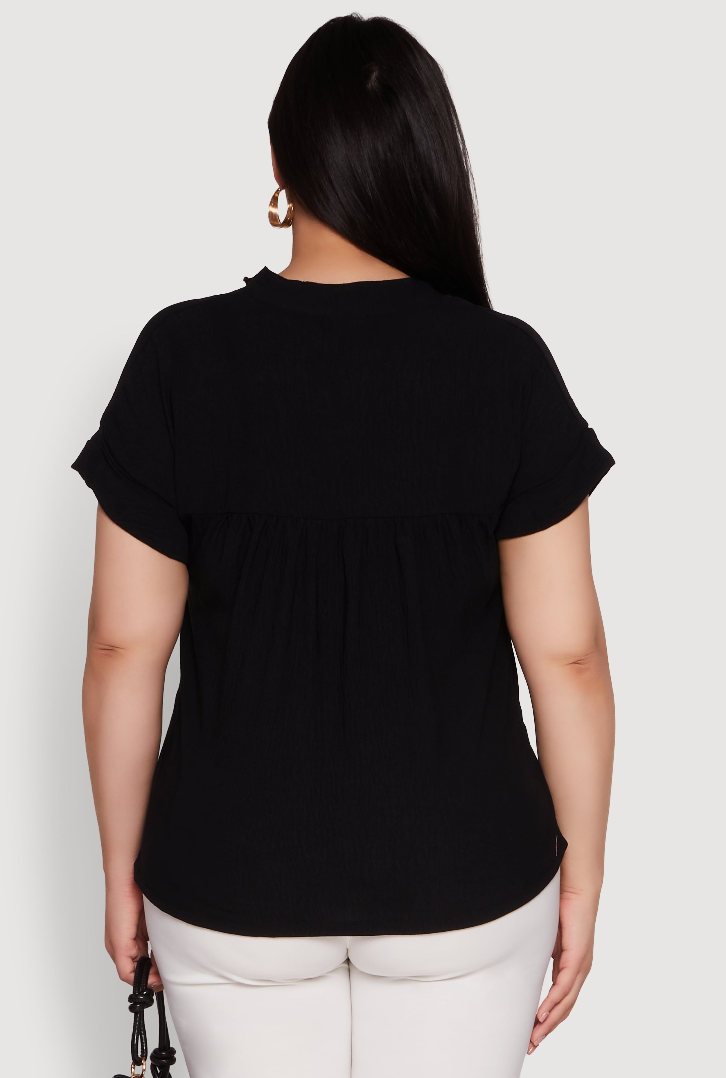 Upgrade your wardrobe with the Plus Size Chic Crepe Knit Side Slit Blouse, a perfect blend of style and comfort that makes you feel confident and fabulous. Featuring a flattering classic fit and timeless silhouette, this blouse is designed to elevate your everyday look. The side slit adds a touch of flair, while the mandarin collar and notch neckline create a chic vibe. Crafted from soft crepe knit, it’s ideal for dressing up or down, making it a versatile addition to your closet. Whether you're heading out for a casual day or a special occasion, this blouse has got you covered.