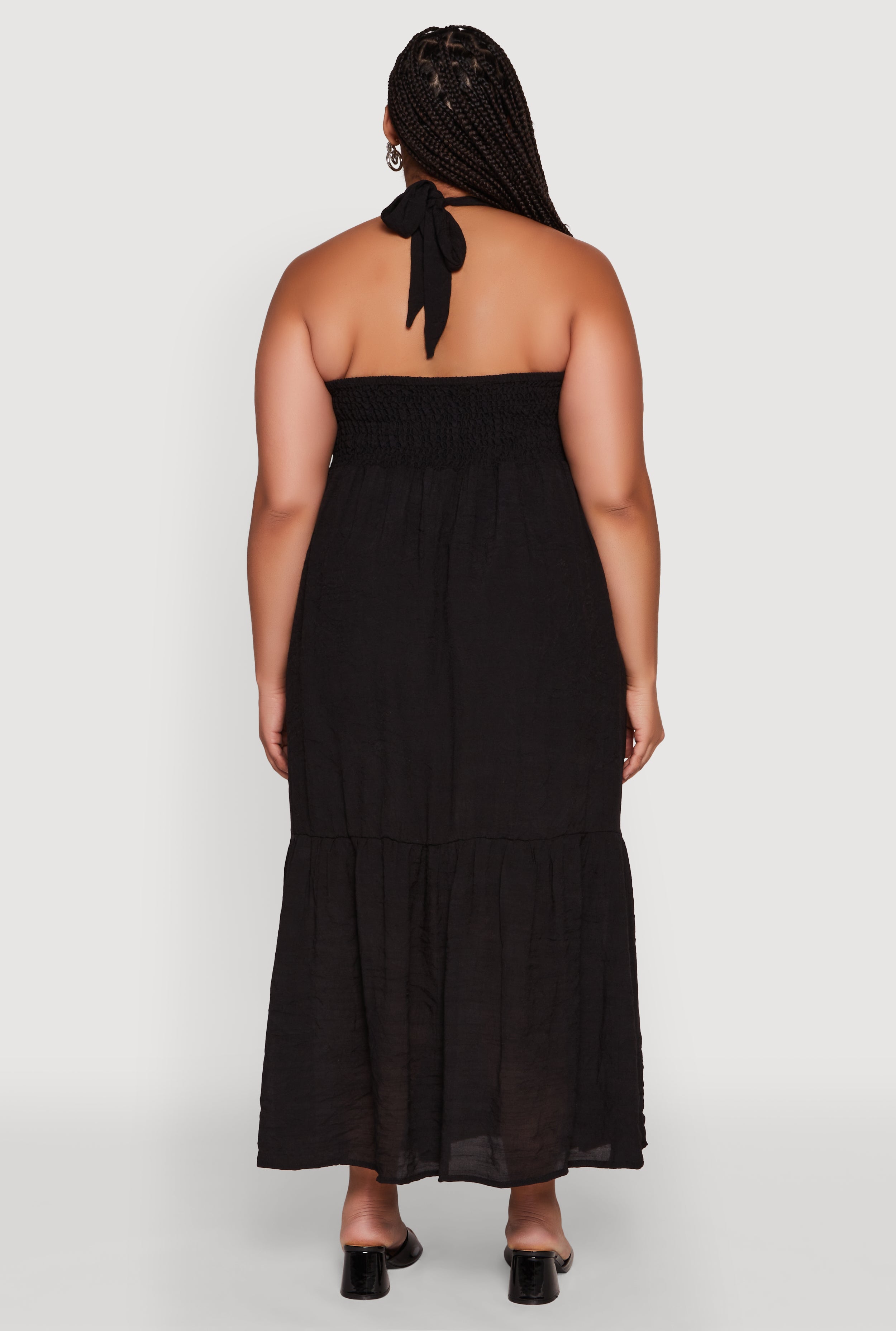 Step out in effortless style with our Plus Size Chic Smocked Back Halter Maxi Sundress. Perfect for sunny days or breezy evenings, this long-length dress combines comfort with a timeless silhouette. The halter neckline adds a flirty touch, while the ruching and smocked back create a flattering fit that moves with you. Whether you're heading to a casual brunch or a summer getaway, this sundress is your go-to for chic, affordable fashion that makes a statement.