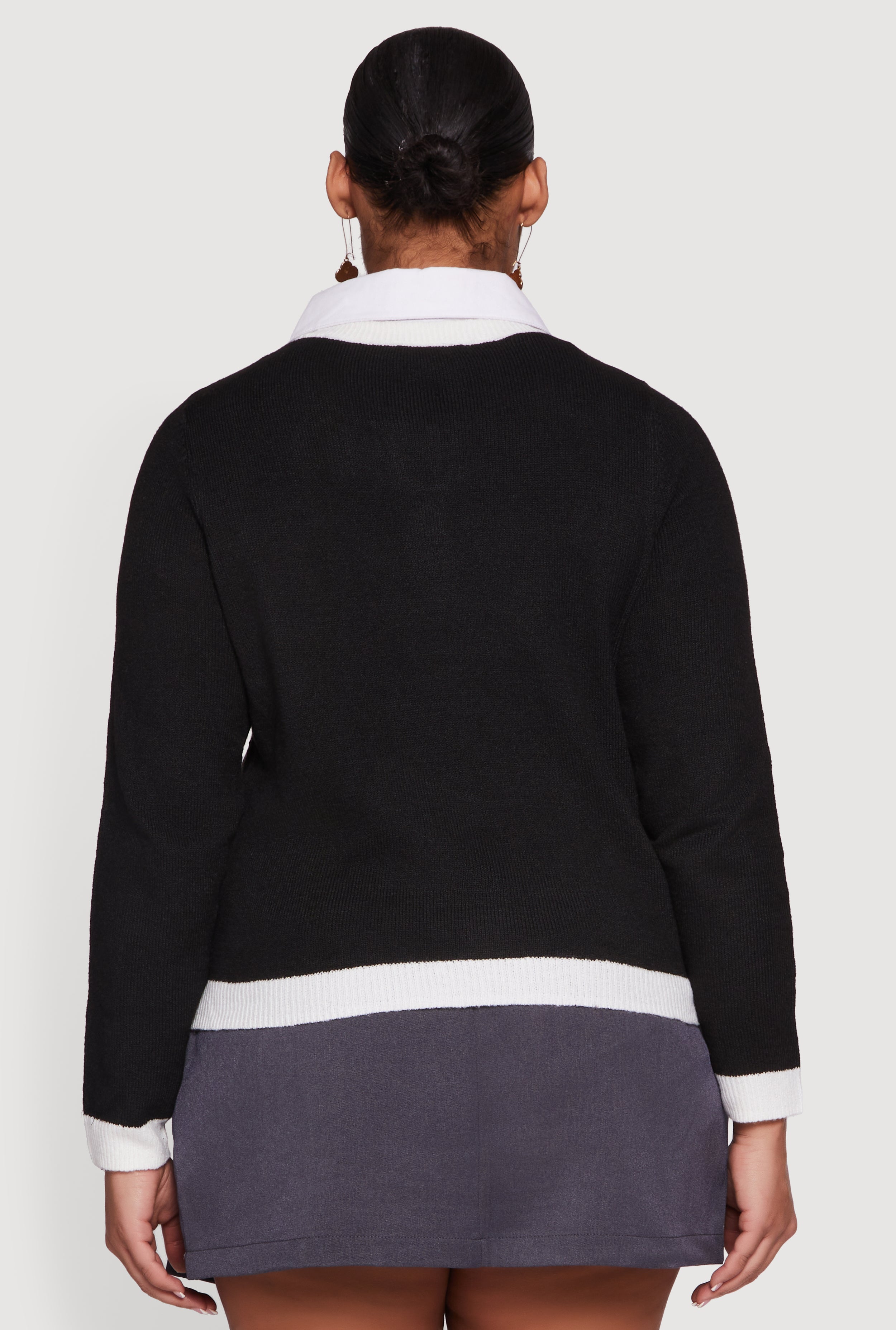 Step up your style game with this Plus Size Contrast Trim Shirt Collar Sweater. Perfect for adding a polished layered look to your casual or officewear outfits, it features a classic fit that flatters your curves and a sharp shirt collar with eye-catching contrast trim. Embrace comfort and confidence in a sweater that’s as versatile as your busy day demands.