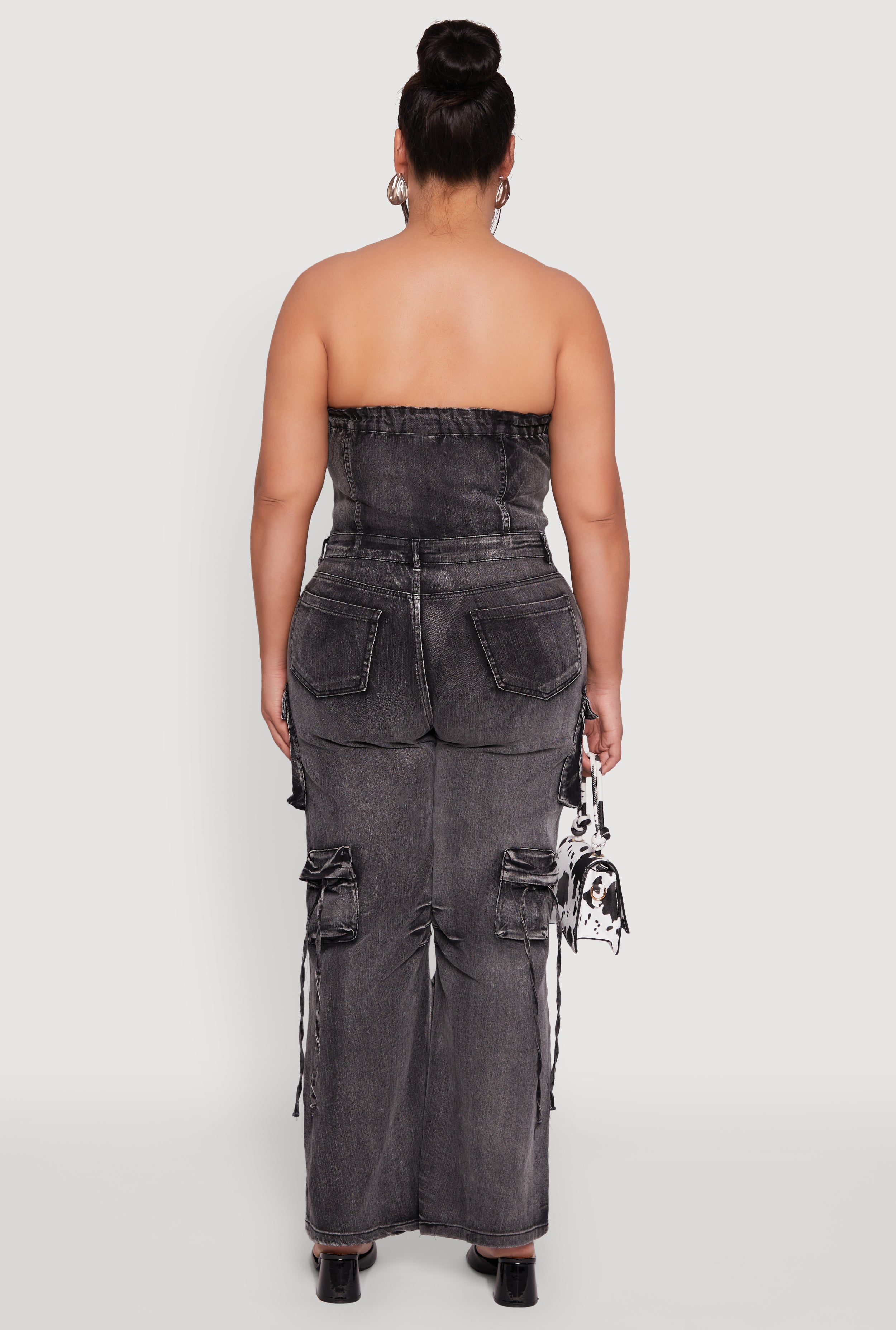 Step out in style with the Plus Size Daisy Acid Wash Denim Strapless Jumpsuit, your new go-to for effortless cool vibes. This strapless, sleeveless jumpsuit features a trendy acid wash finish and a flattering wide-leg silhouette that moves with you. The button front and zipper closure add a touch of retro flair while keeping it easy to wear. Whether you're hitting the streets or chilling with friends, this jumpsuit combines comfort and streetwear edge perfectly. Plus, those cargo pockets and decorative stitching bring just the right amount of detail to keep all eyes on you.