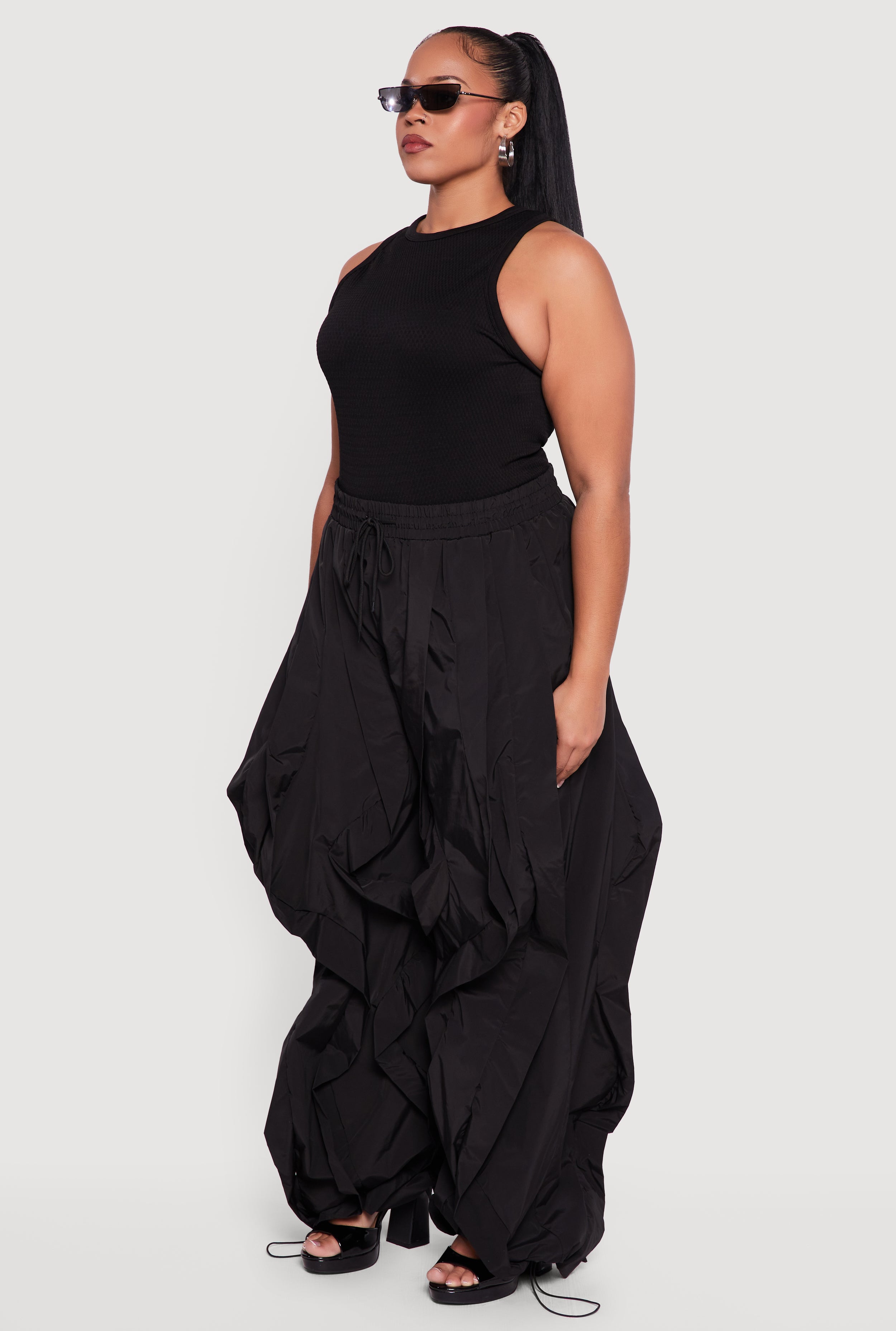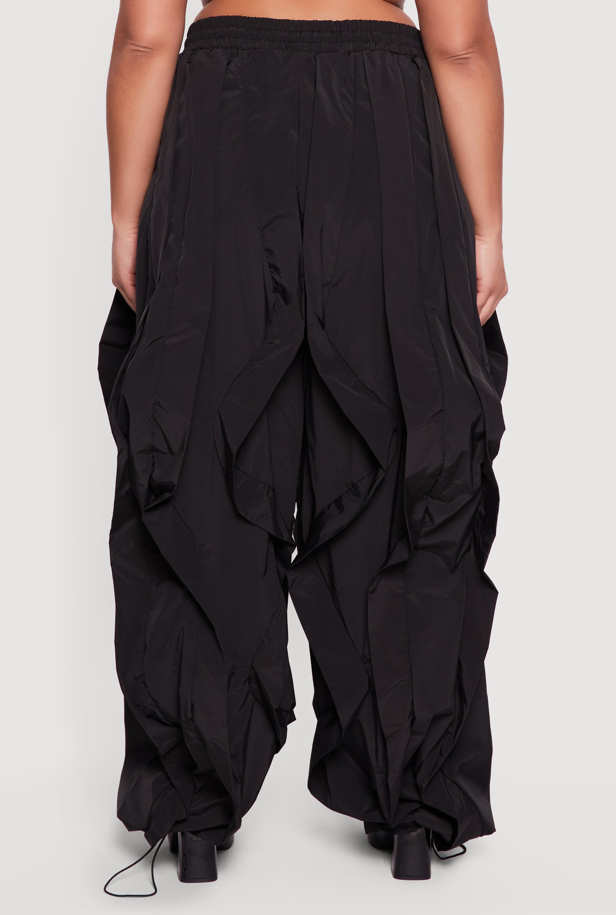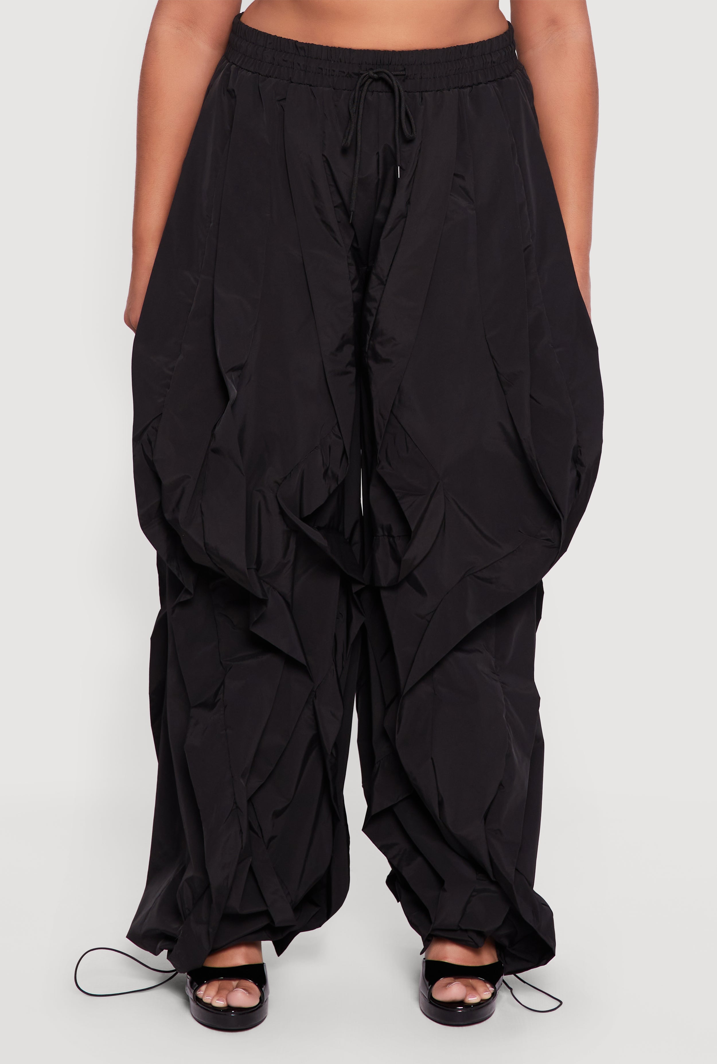 Step up your comfort game with these Plus Size Drawstring High Waisted Ruffle Detail Joggers. Designed to flatter your curves with a high waist and a relaxed, baggy fit, these joggers bring a playful twist with delicate ruffle details. Perfect for casual days or a stylish night out, they feature a drawstring waist and hem for a customizable fit that keeps you comfy all day long. The tapered ankle length adds a modern edge, making these joggers your new go-to for effortless style and ease.