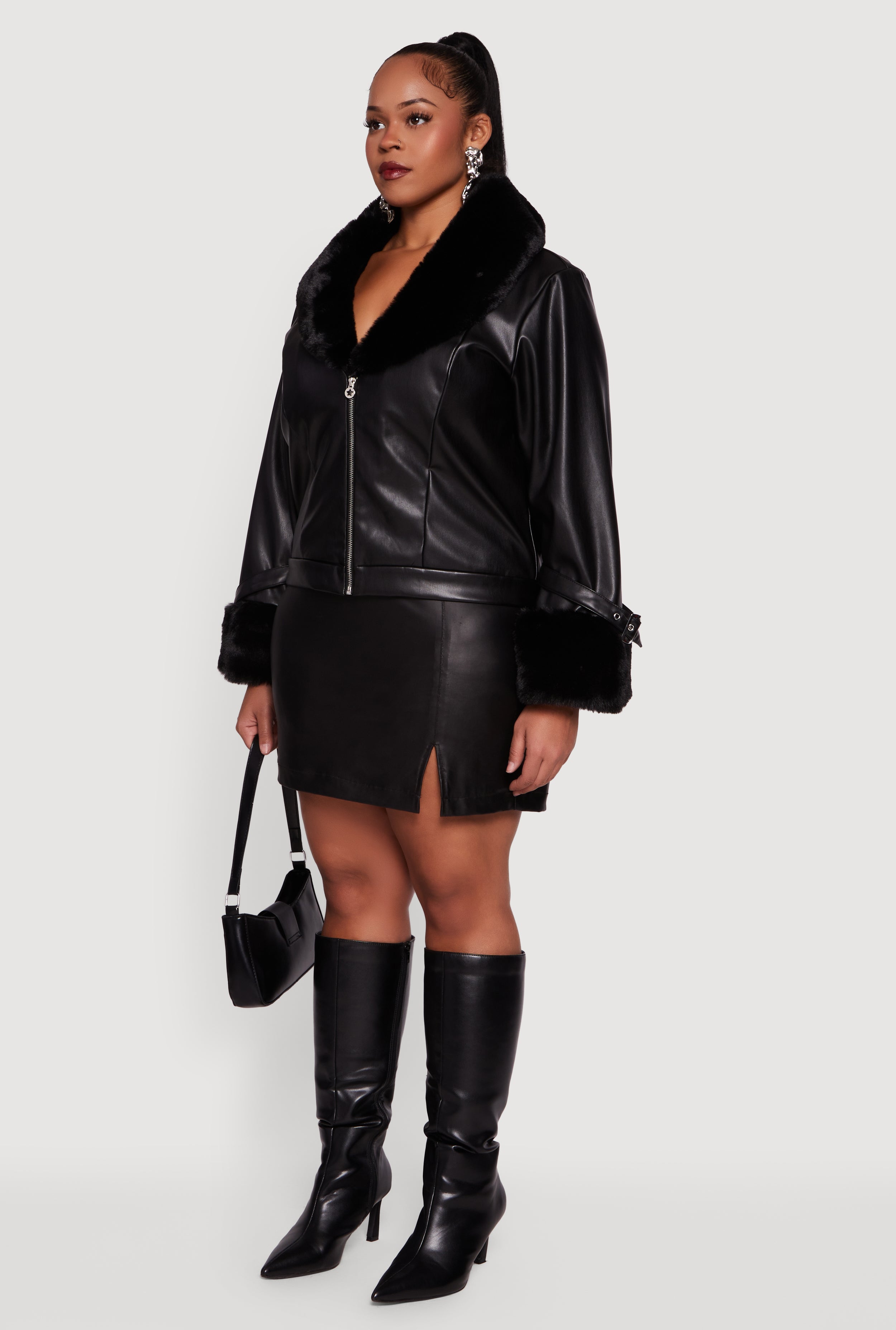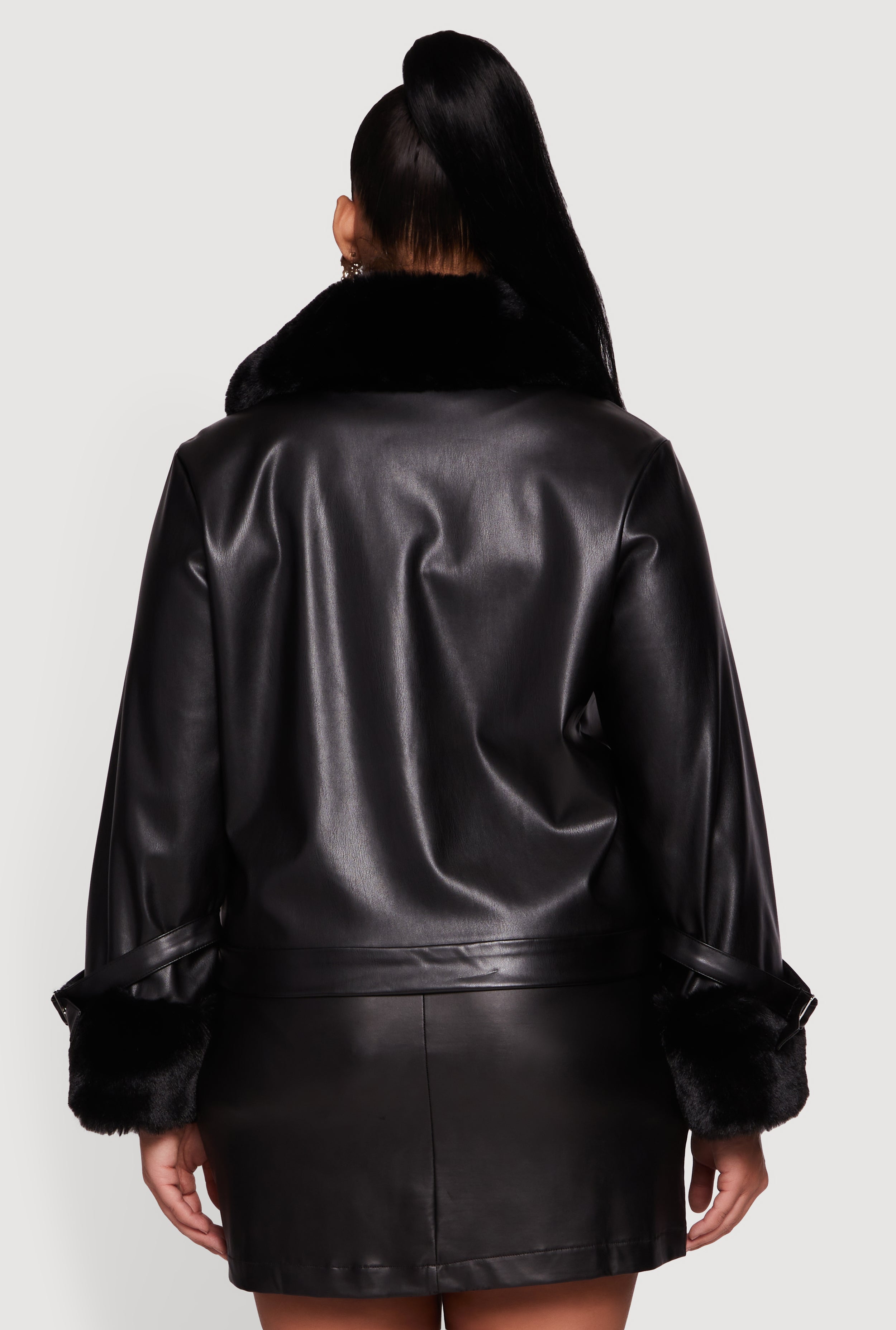 Step out in style and confidence with this Plus Size Faux Leather Jacket featuring a cozy faux fur trim. Designed for the bold and the chic, this jacket combines edgy motorcycle vibes with soft, luxe fleece lining to keep you warm without sacrificing style. The zip front closure and shawl collar add a modern twist that’s perfect for casual days or a night out on the town. Elevate your outerwear game with a jacket that fits your curves and your vibe.