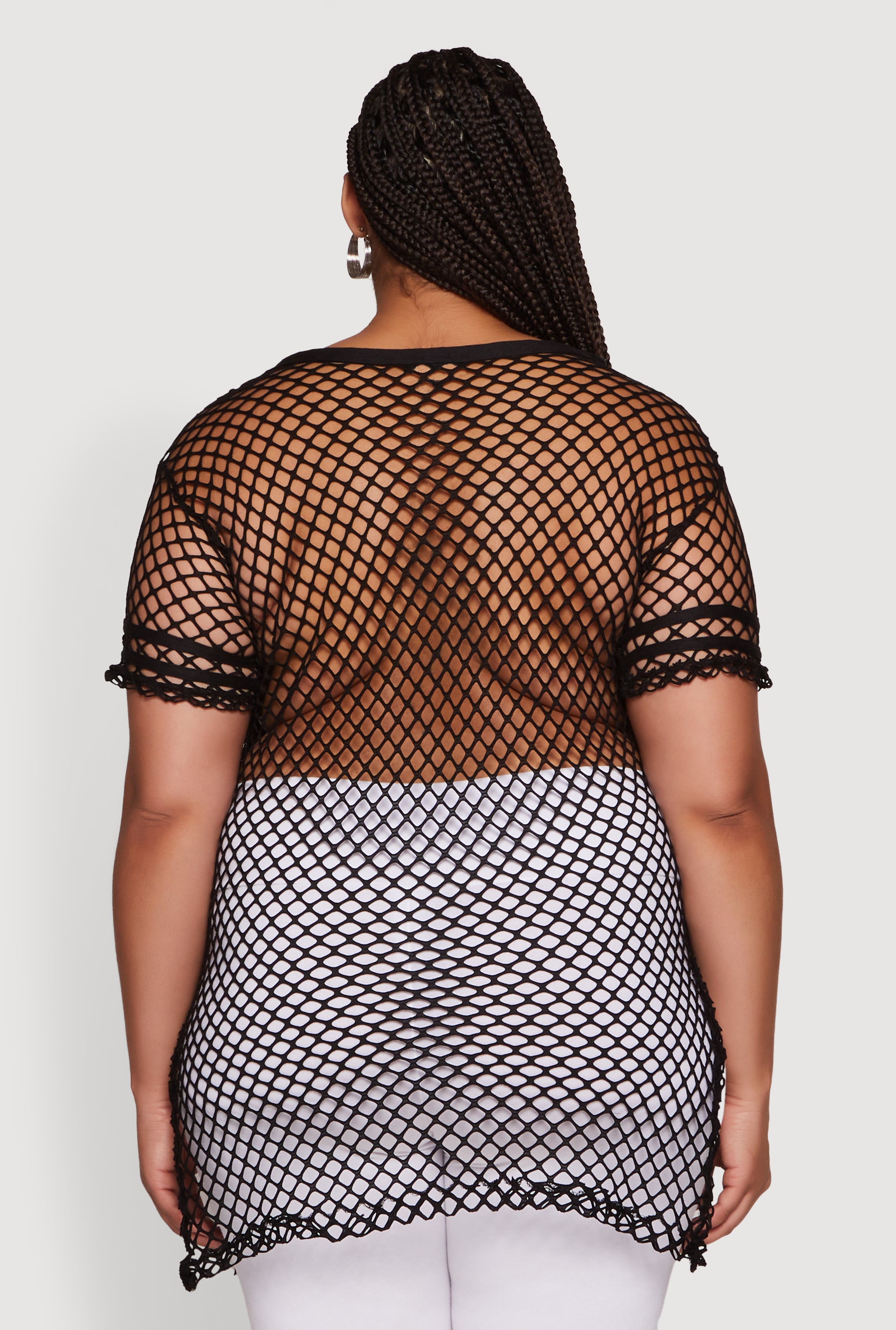 - Sheer fishnet material adds edgy, trendsetting style