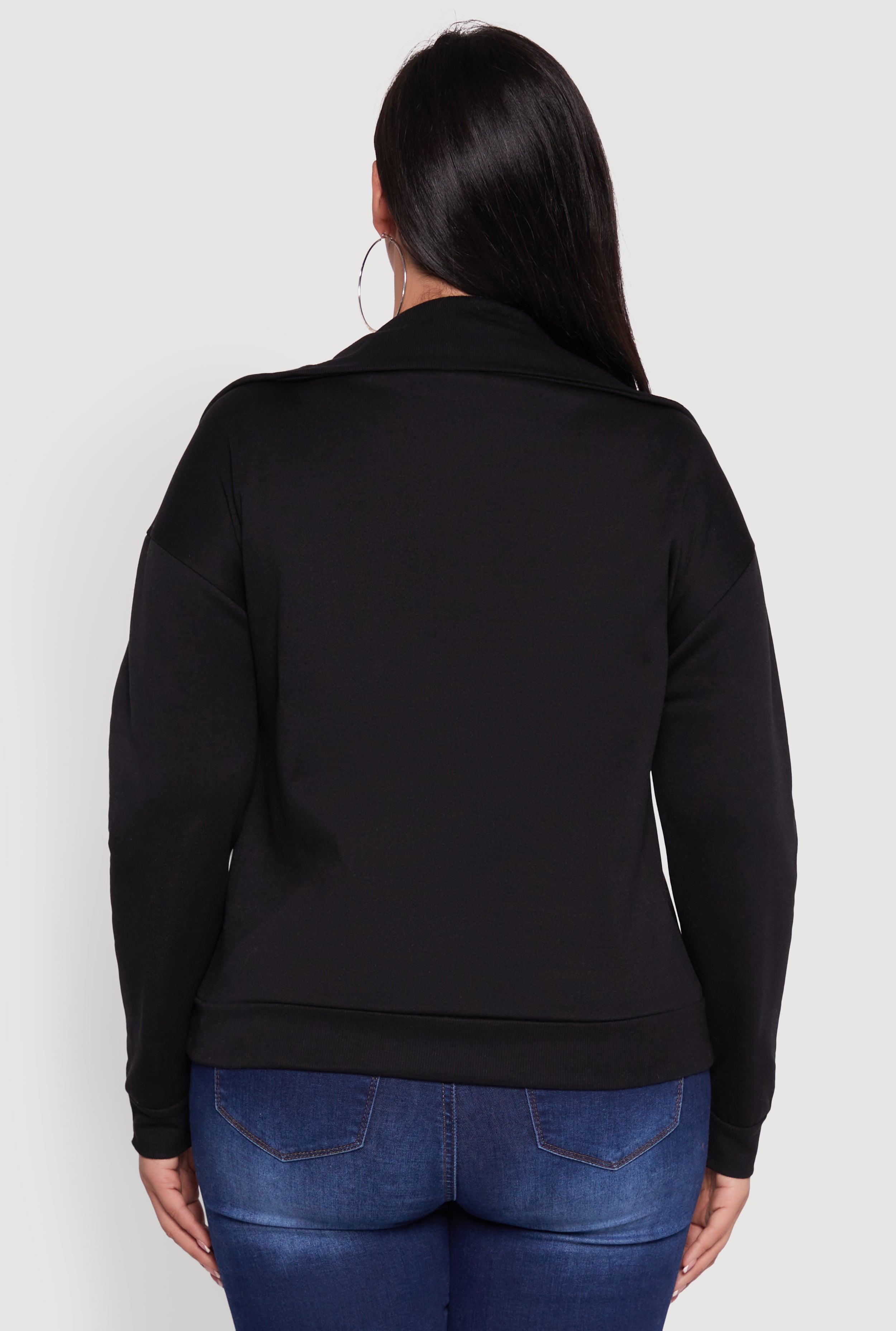 Plus Size Fleece Lined Collared Half Zip Sweatshirt