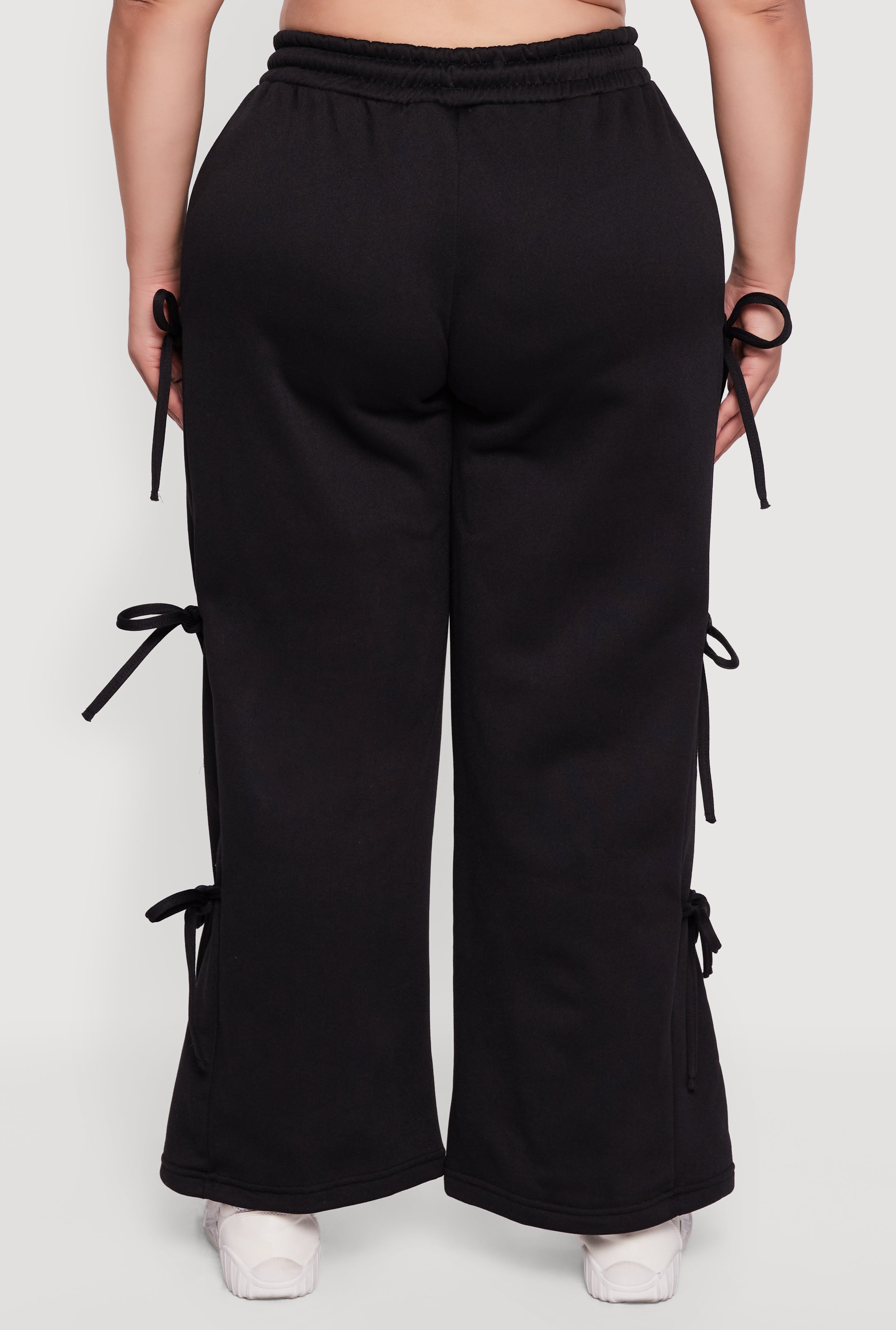 Plus Size High Waisted Fleece Sweatpants with Side Ties