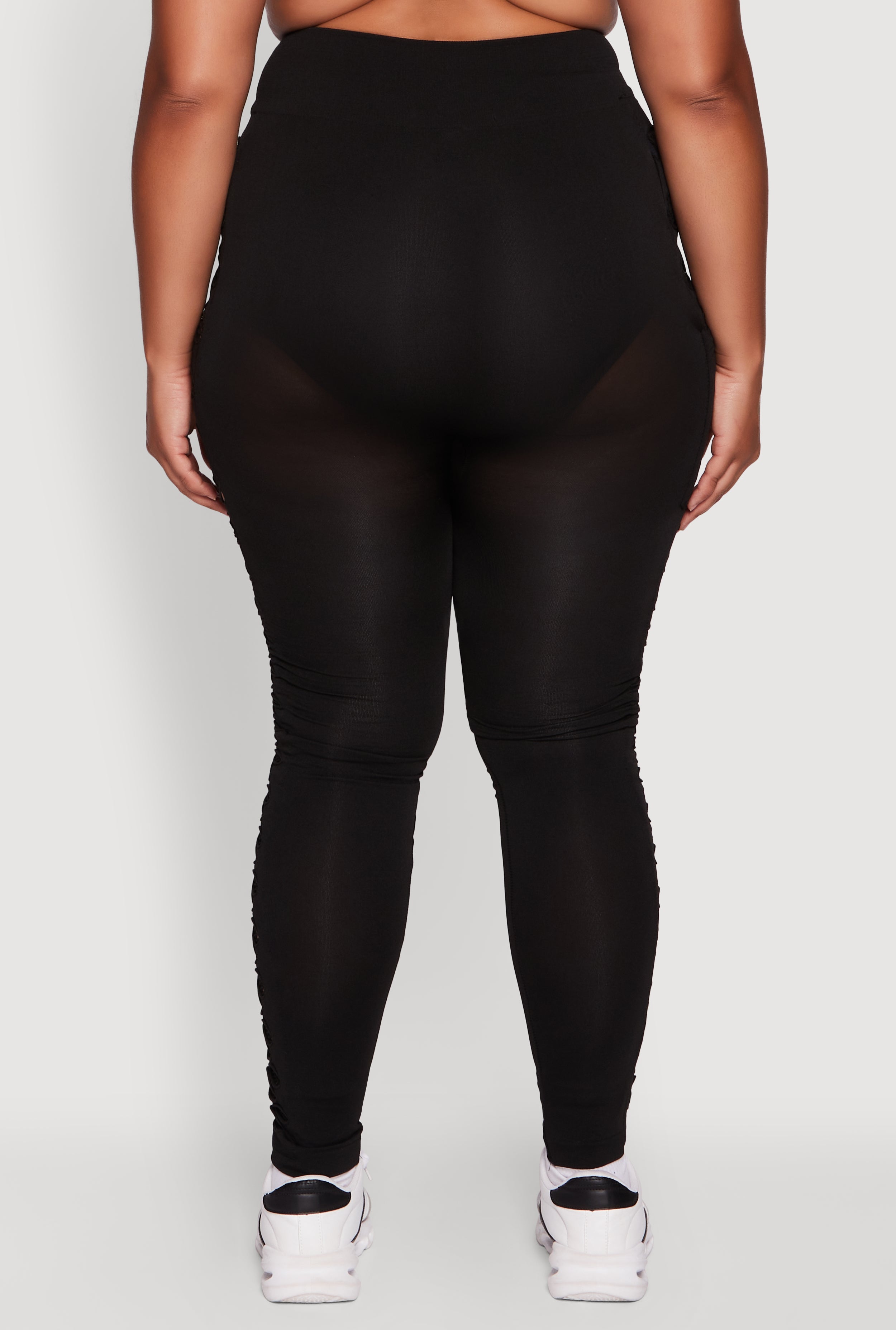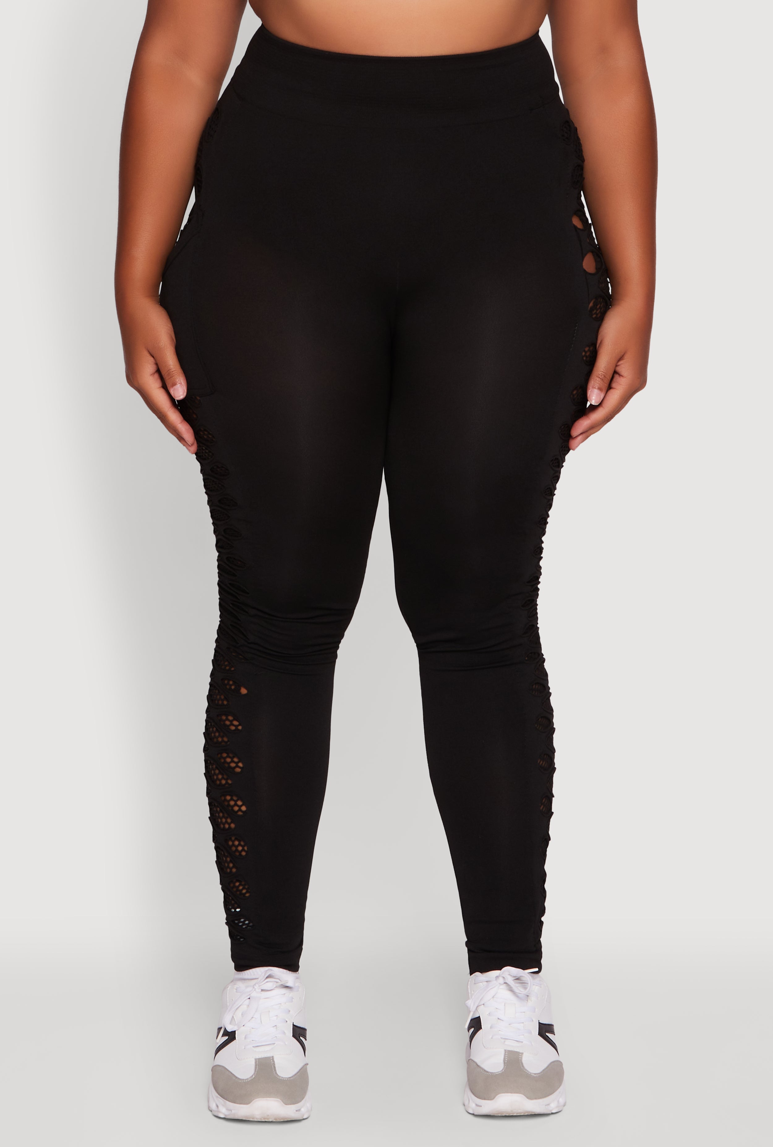 Step up your athleisure game with these Plus Size High Waisted Leggings featuring edgy fishnet detail. Perfect for those who want to blend comfort with a bold statement, these leggings hug your curves with a flattering high waist and skinny fit that moves with you. Whether you're hitting the gym or just chilling, the mesh fishnet panels add a cool, breathable twist to your everyday look. Affordable, stylish, and designed to make you feel unstoppable.