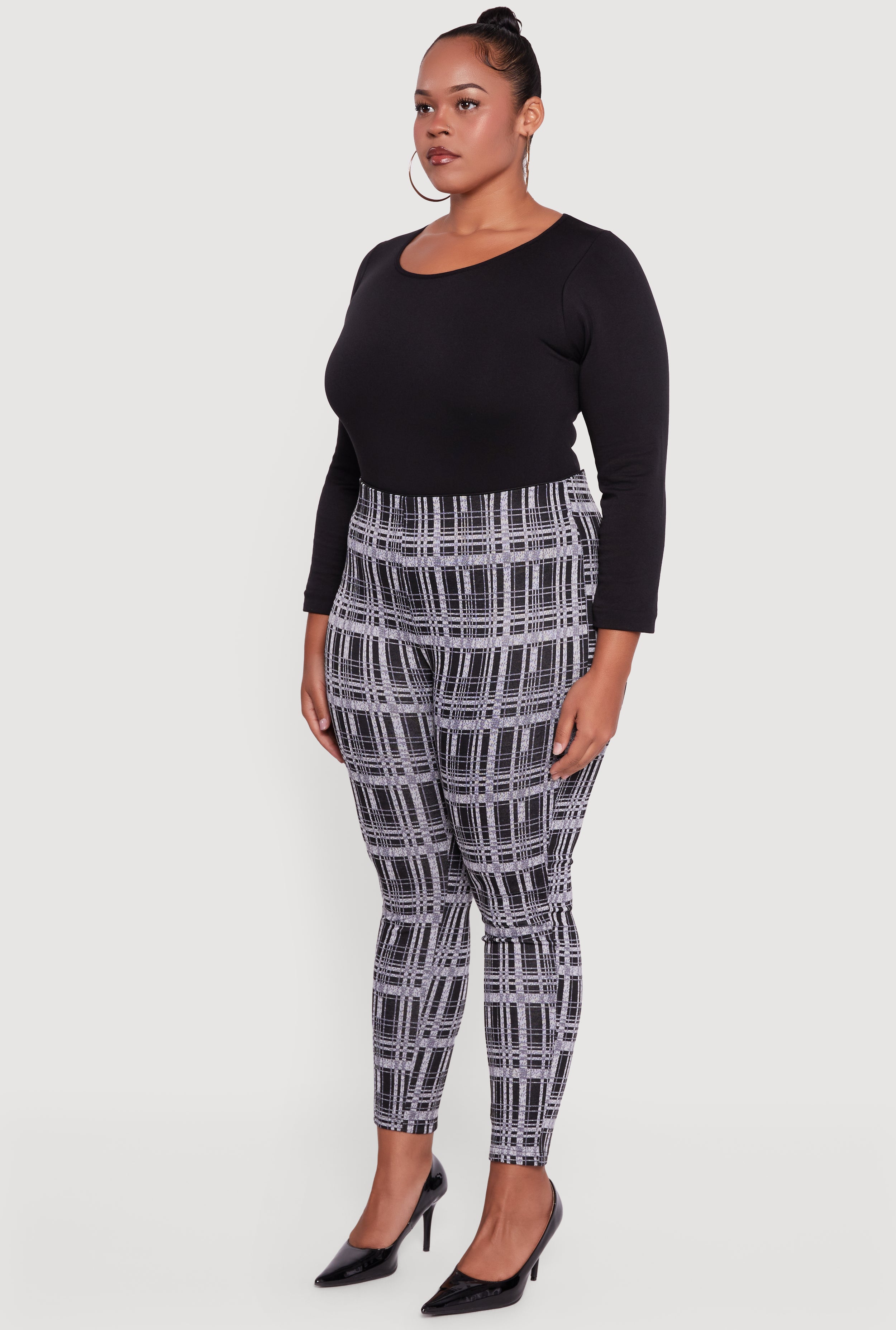 Step up your style game with these Plus Size High Waisted Plaid Skinny Pull On Pants. Perfect for casual days or office vibes, these pants hug your curves with a comfy, high waist and sleek skinny fit that hits right at the ankle. The classic plaid pattern adds a timeless touch, making it a versatile must-have for your wardrobe. Slip them on and get ready to turn heads without sacrificing comfort or breaking the bank.
