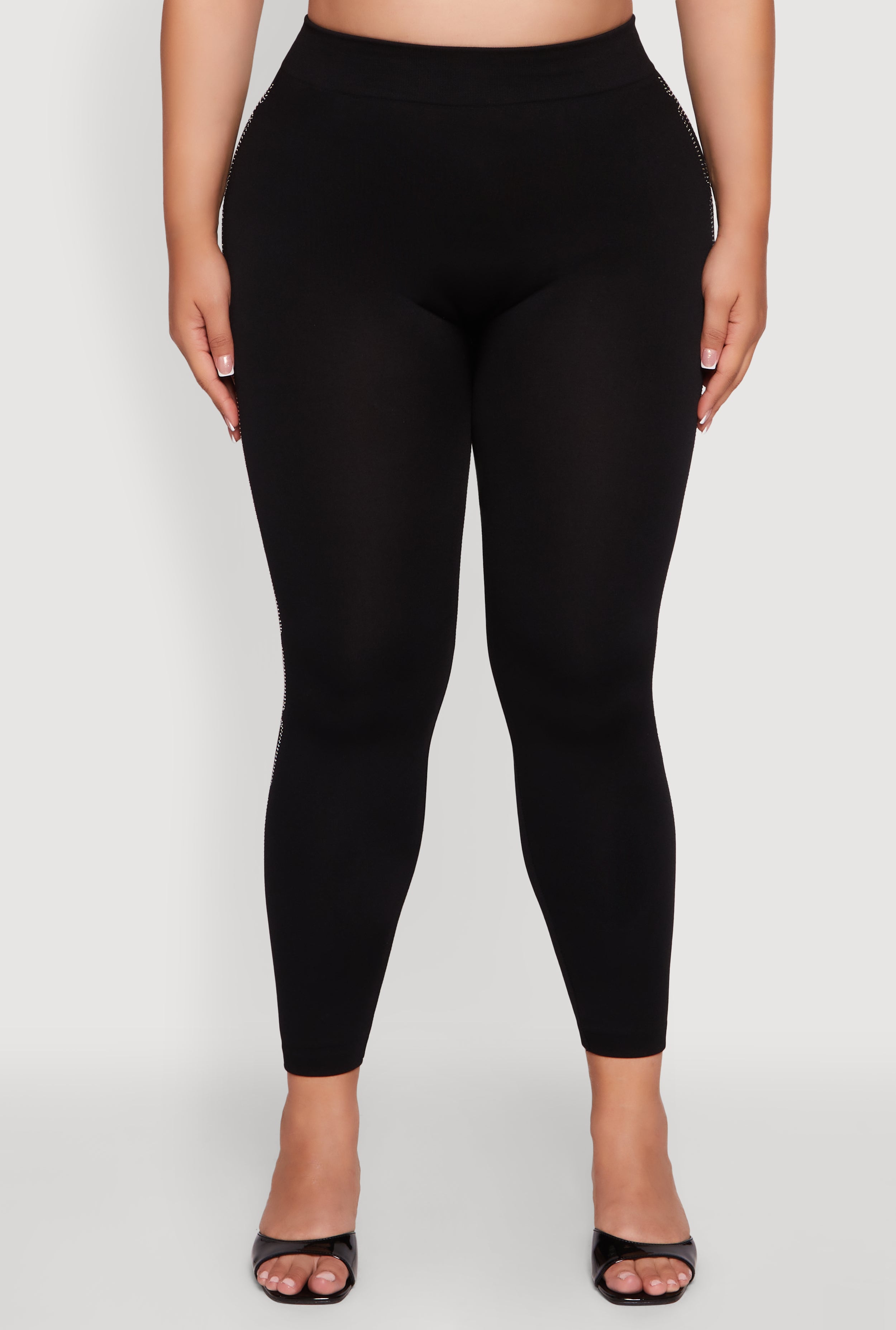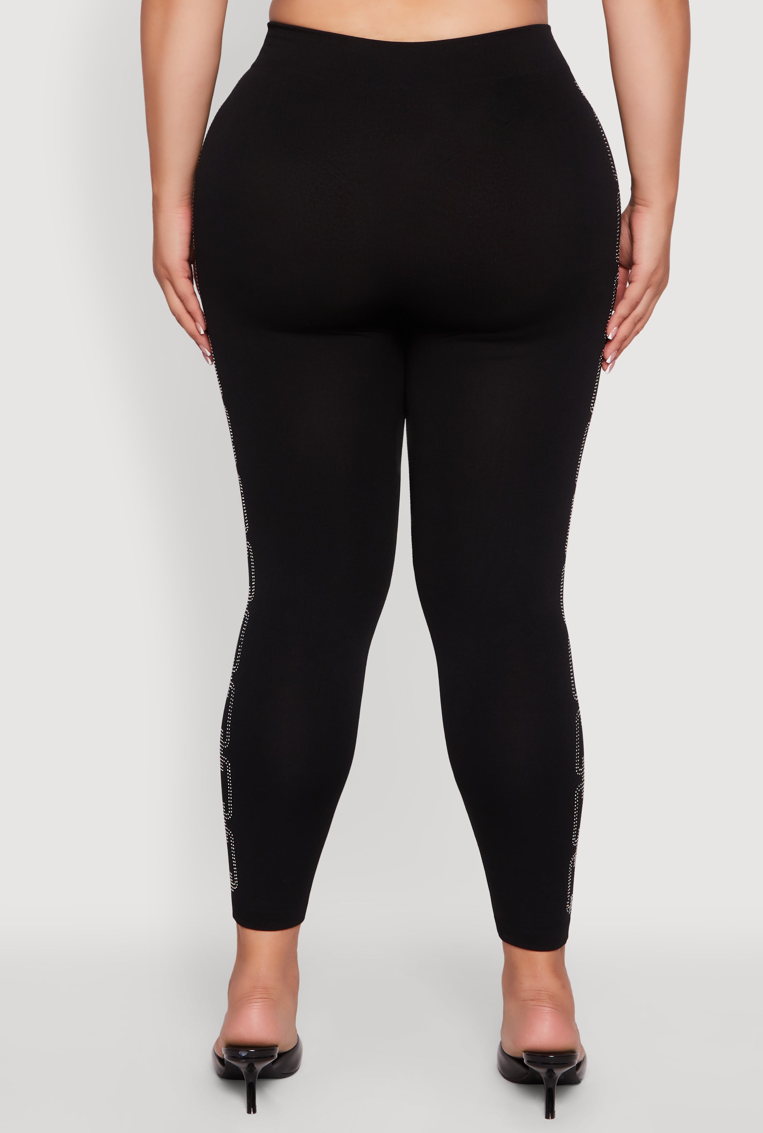 Turn heads and sparkle all night long with these Plus Size High Waisted Side Rhinestone Chain Link Leggings. Designed to hug your curves in all the right places, these leggings bring the perfect mix of glam and comfort for your next party or night out. The high waist flatters your silhouette while the rhinestone chain link detail adds just the right amount of shine to make you feel unstoppable. Whether you're dancing the night away or just vibing with friends, these leggings are your new go-to for effortless style and confidence.