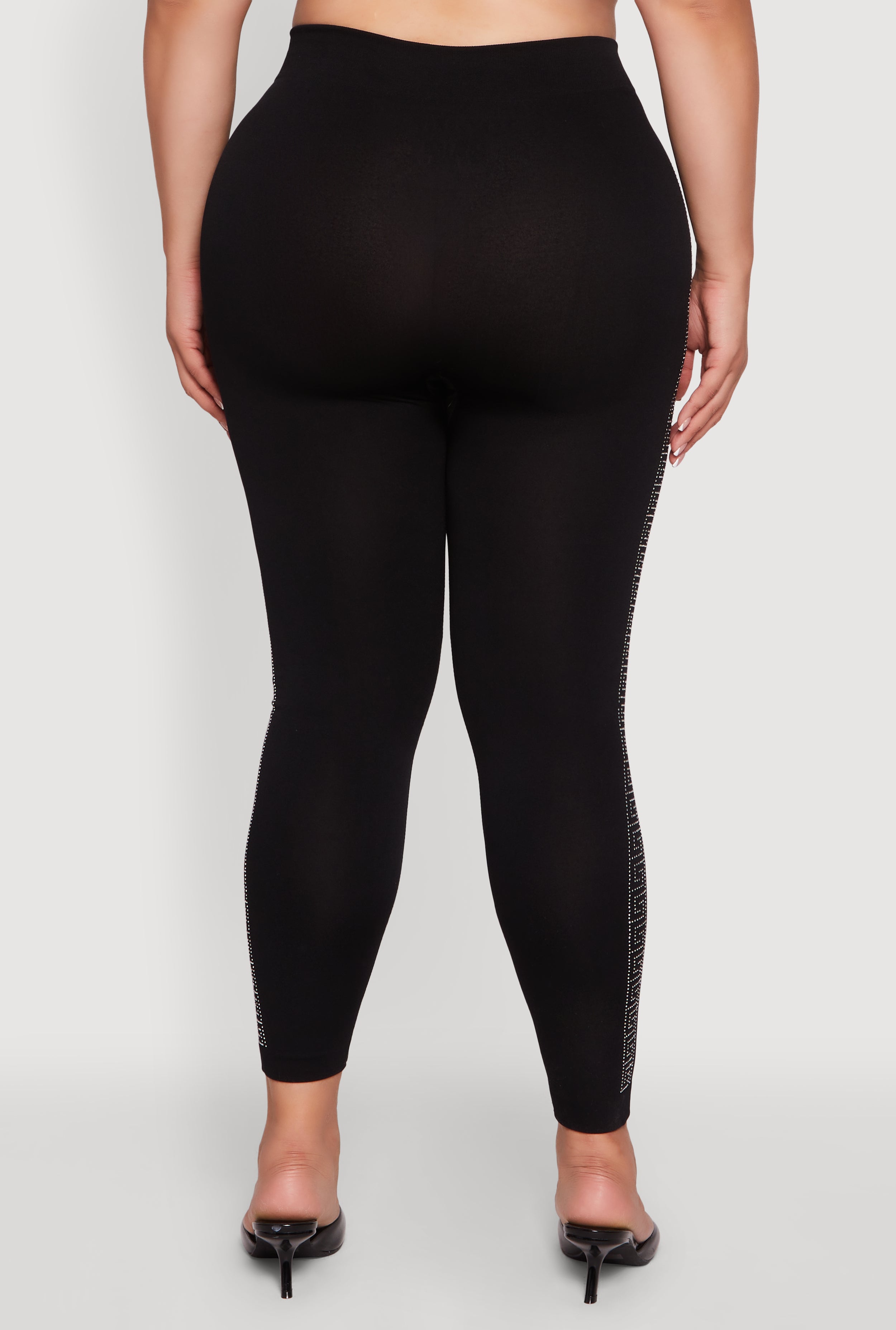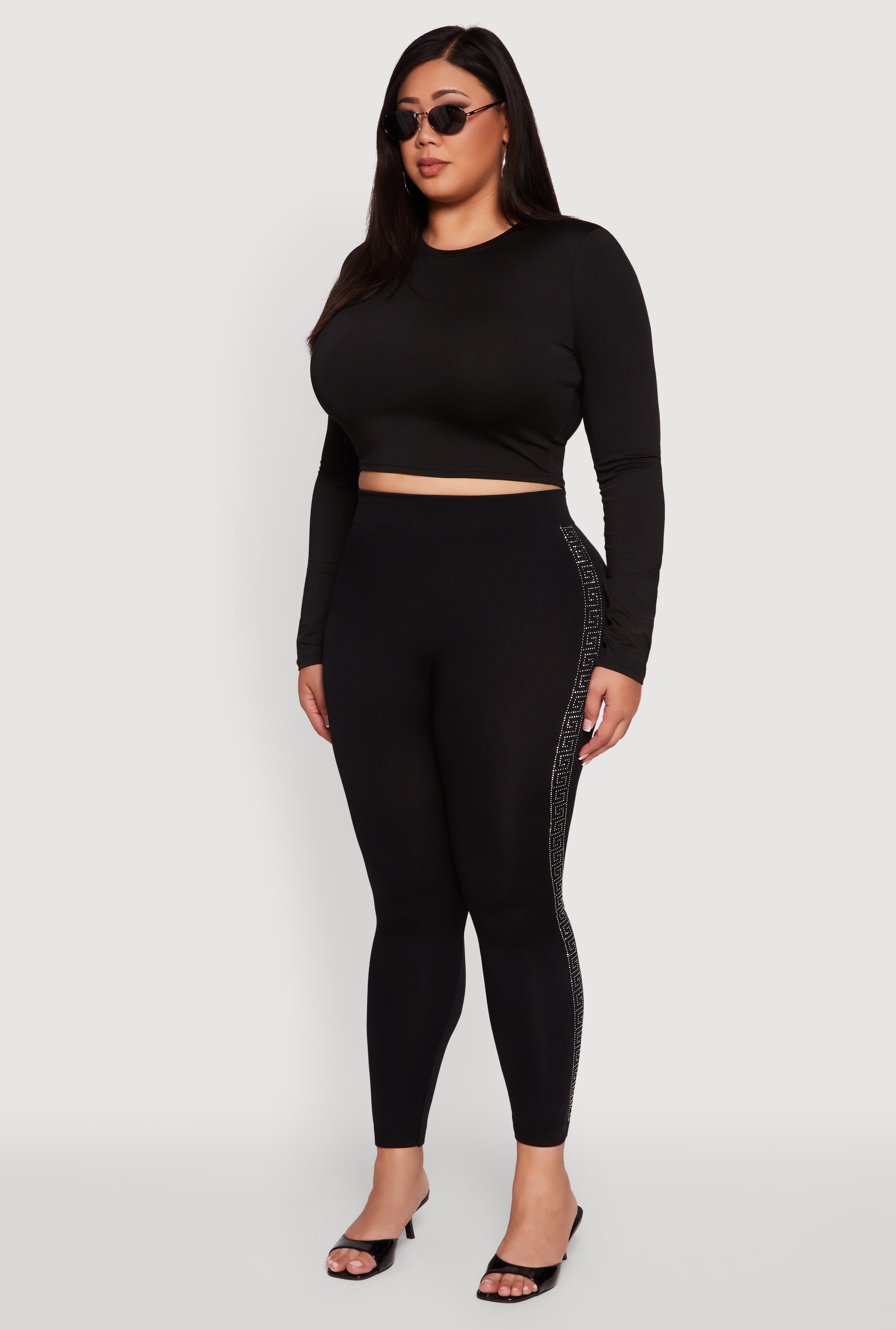 Step out in style and confidence with these Plus Size High Waisted Side Rhinestone Greek Key Leggings. Designed to hug your curves and shine under the party lights, these leggings combine a sleek skinny-leg fit with eye-catching rhinestone detailing along the sides. Perfect for a night out or casual hangouts, they elevate your look without sacrificing comfort. High-waisted to flatter your shape and keep you feeling secure, these leggings are your new go-to for turning heads effortlessly.