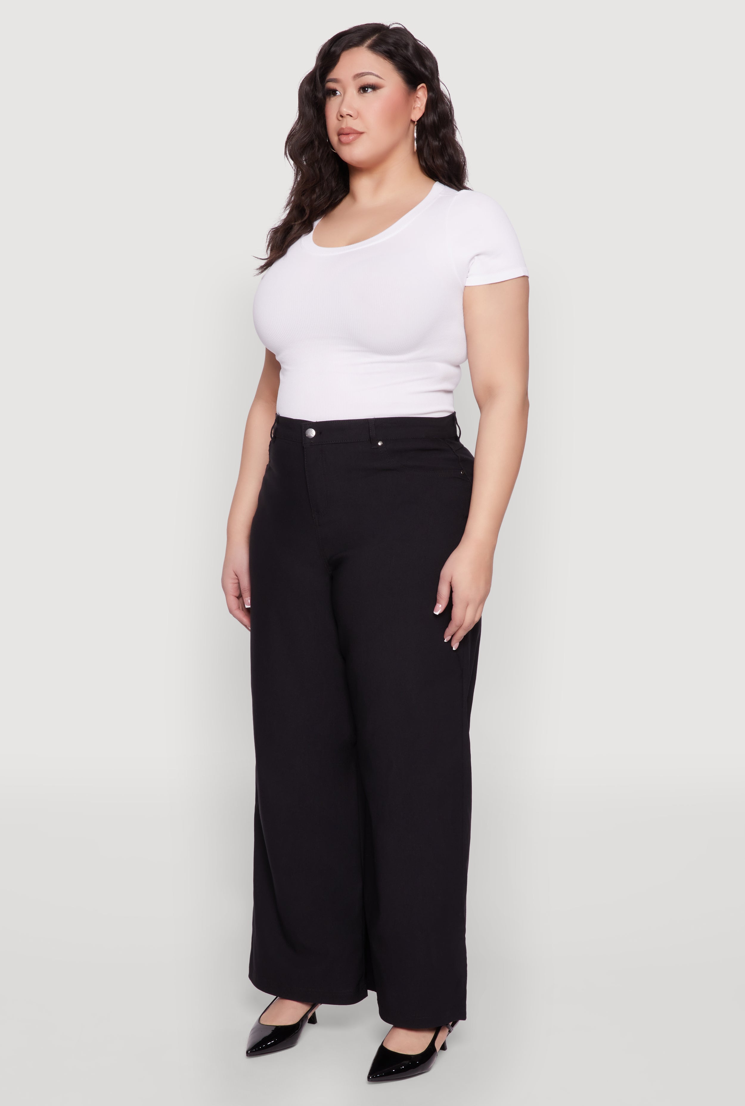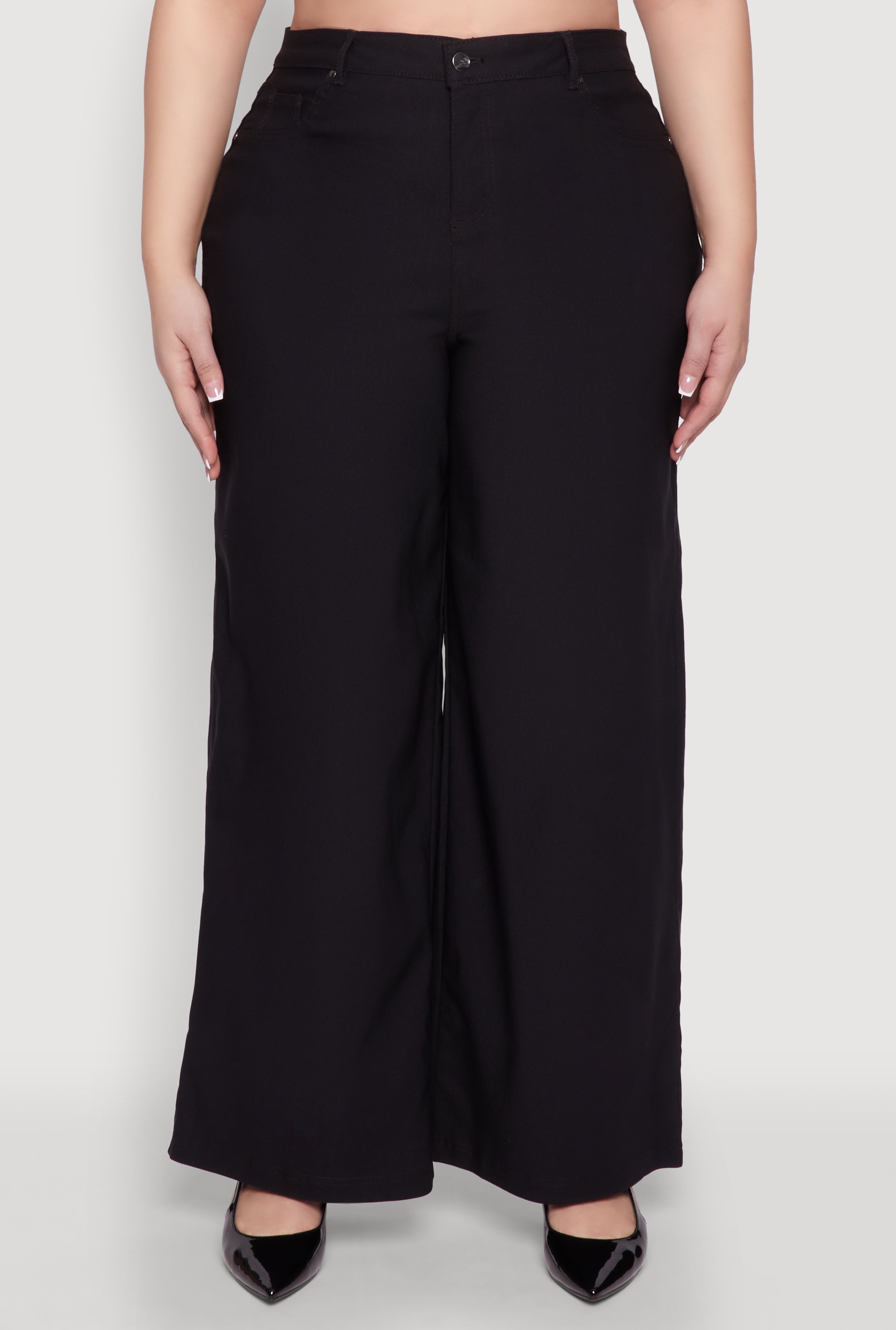 Meet your new favorite go-to for comfort and style with our Plus Size Hyperstretch Wide Leg Pants. Designed to move with you, these casual pants feature a high-waisted fit and a roomy wide leg for effortless chic. Whether you're lounging at home or stepping out for a casual day, these pants add a touch of laid-back confidence to any outfit. Feel good, look great, and embrace your curves with ease and style.