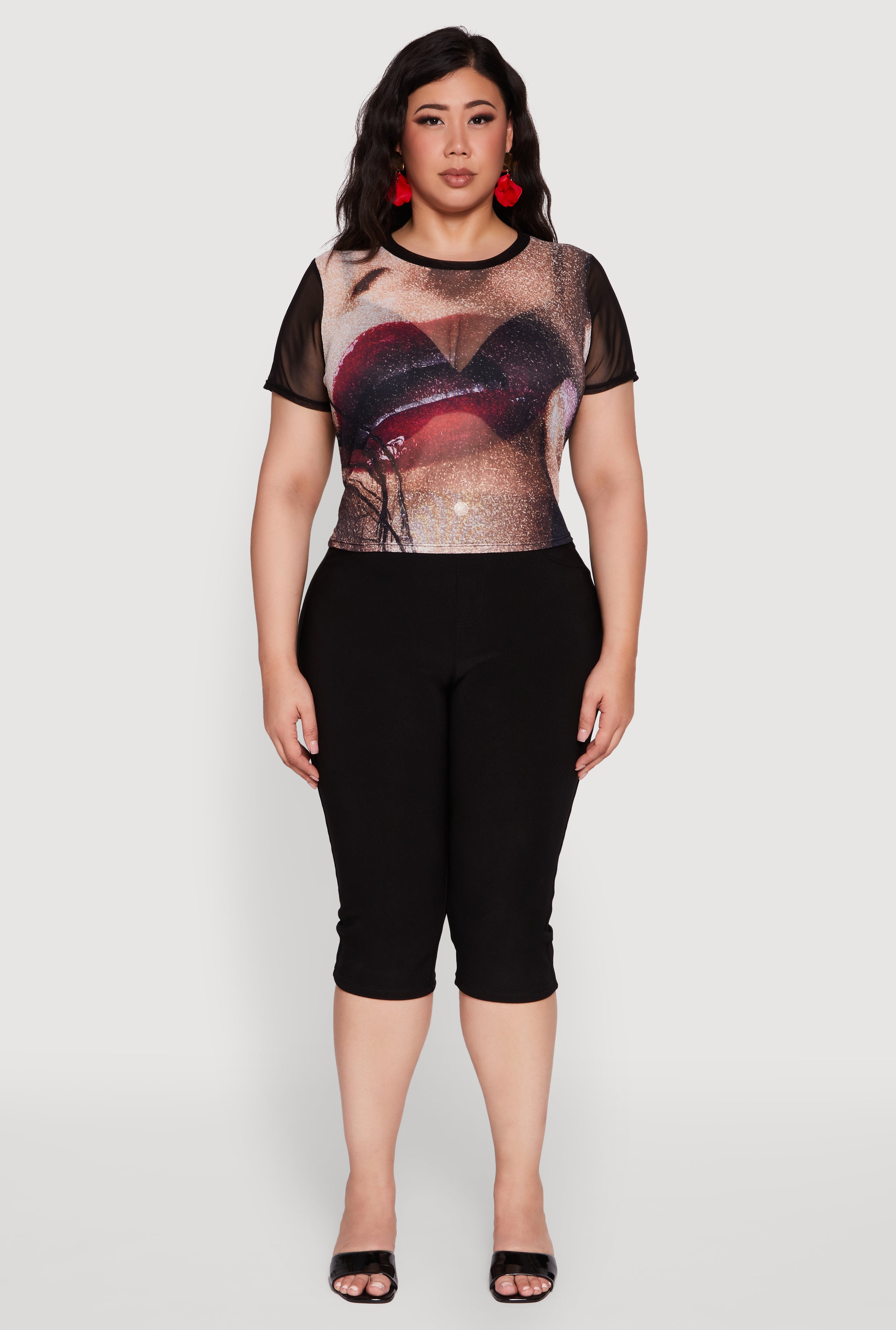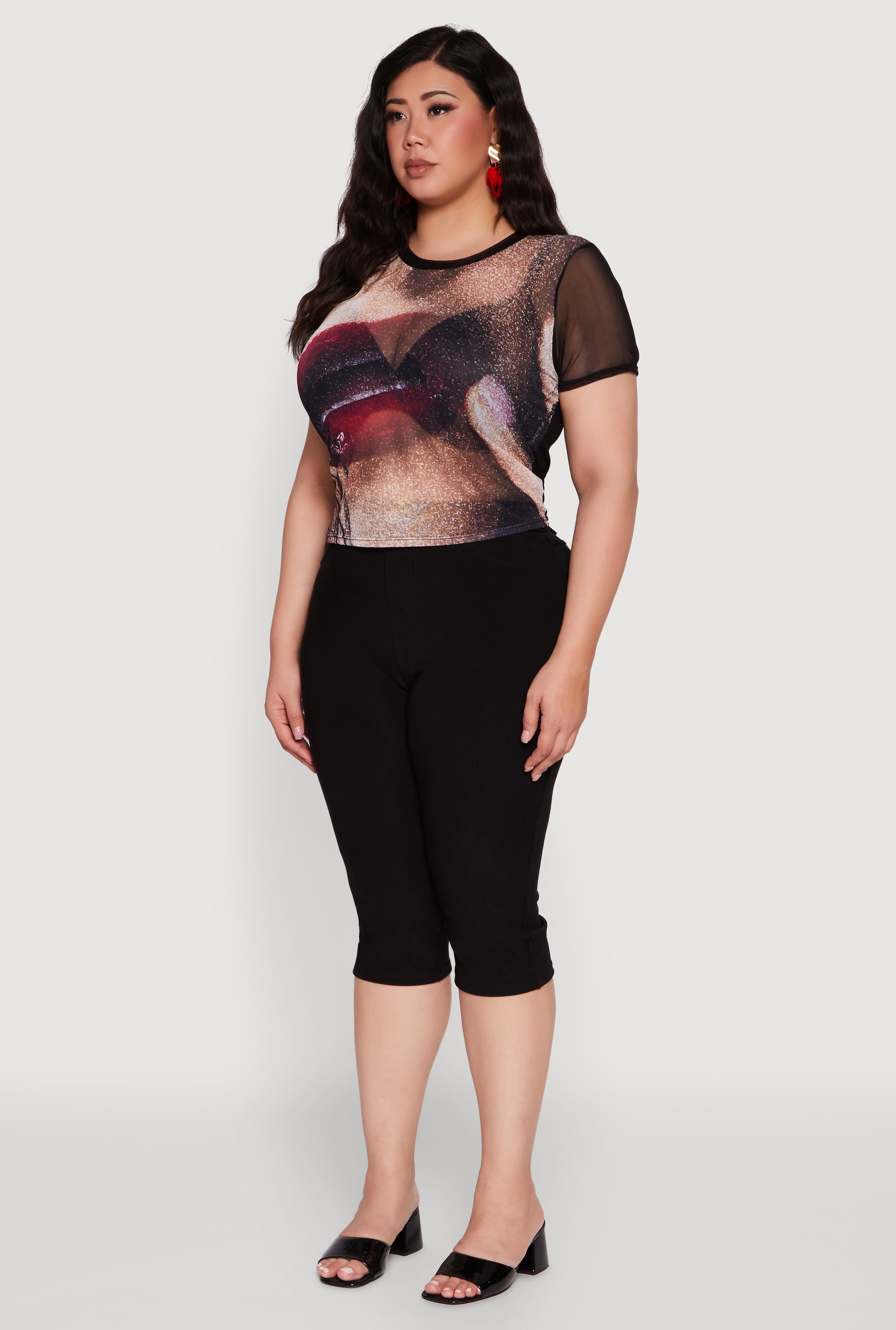 Turn heads and own the night with this Plus Size Lip Graphic Crew Neck Mesh Top. Perfect for festival vibes, parties, or a casual night out, this sheer mesh tee brings a playful edge to your wardrobe. Its classic fit and bold lip graphic make it a timeless piece that’s all about confidence and fun. Pair it with your favorite bralette and let your style speak volumes.
