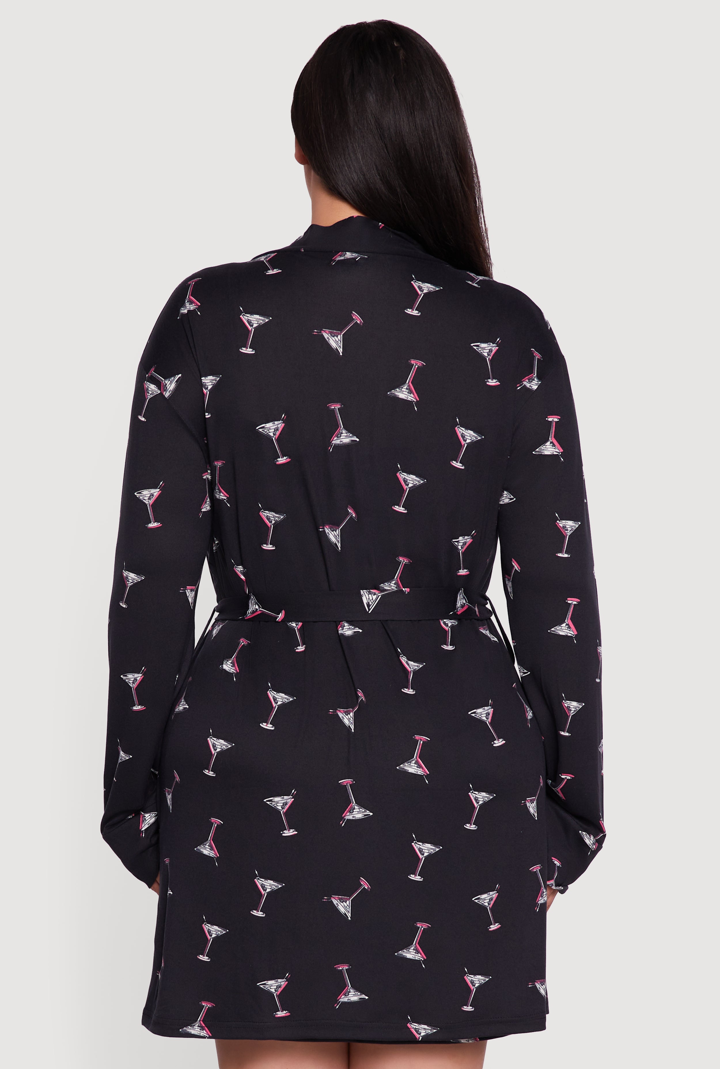 Slip into cozy elegance with this Plus Size Martini Print Robe and Cami Nightgown set. Designed for ultimate comfort and style, the classic fit nightgown features a flattering scoop neck and adjustable spaghetti straps, perfect for lounging or bedtime. The matching robe adds a playful touch with its tie waist belt, lace details, and charming bow embellishments. Whether you're winding down after a long day or enjoying a lazy weekend morning, this printed sleepwear set brings a fun and flirty vibe to your loungewear collection.