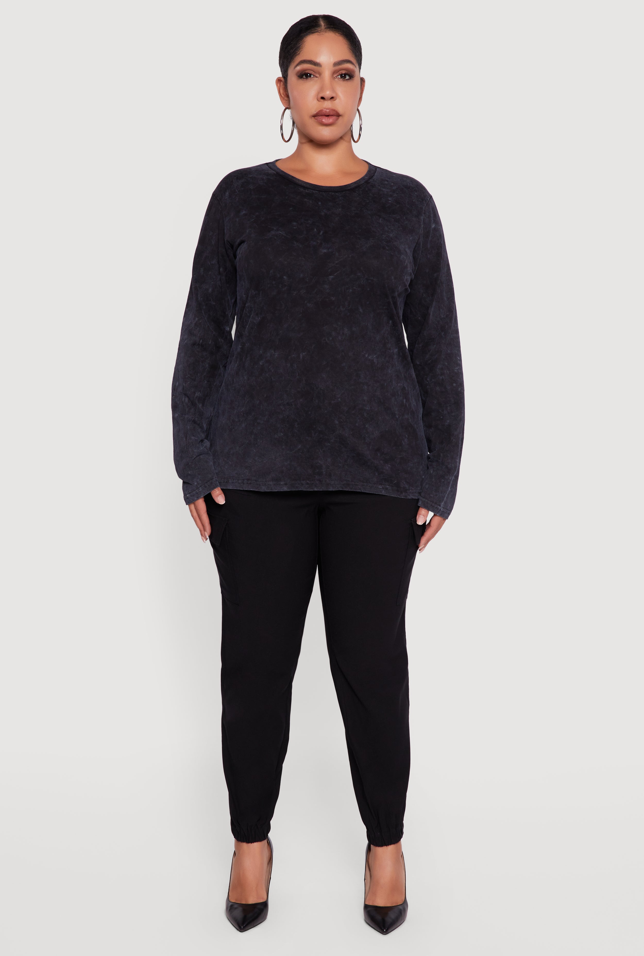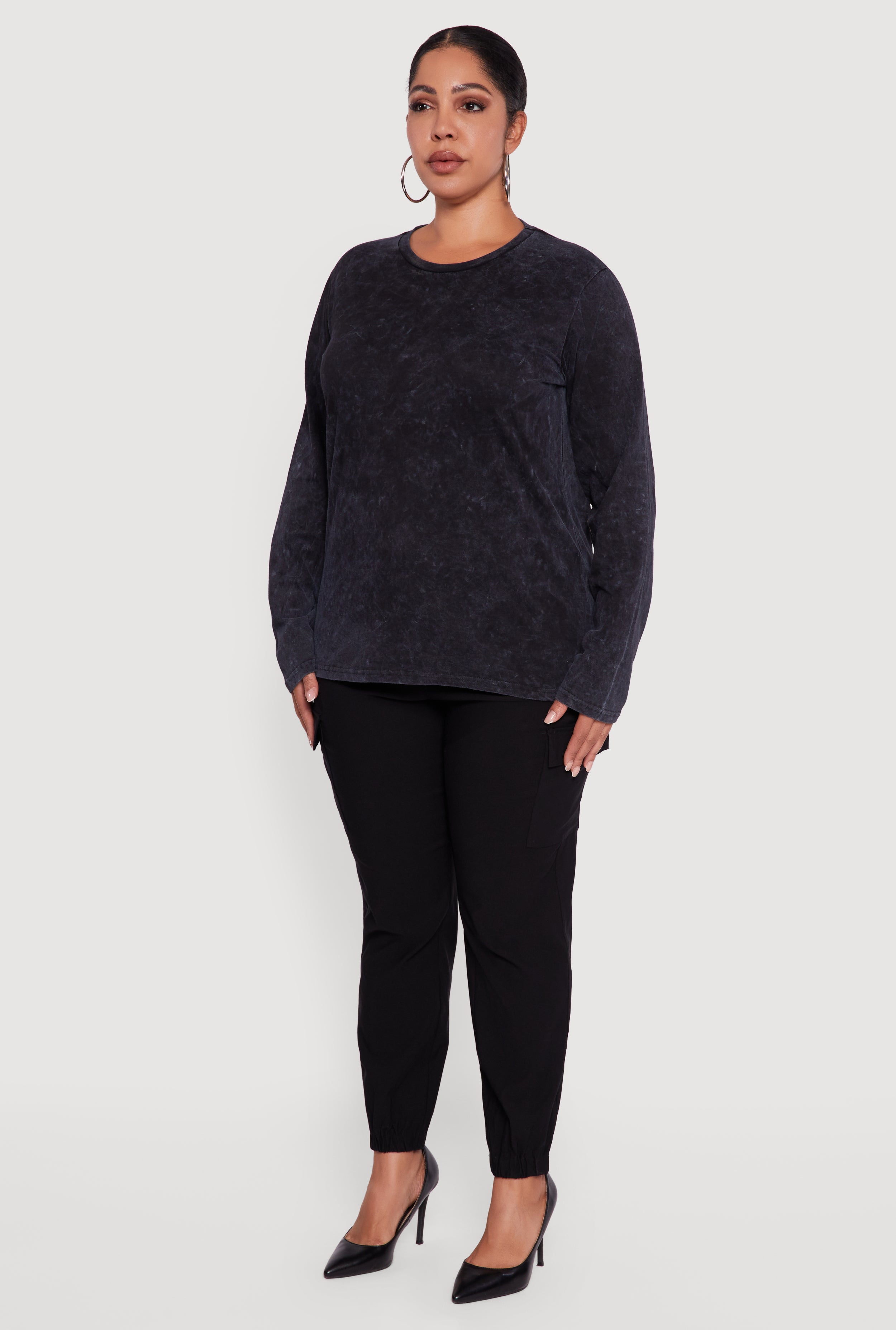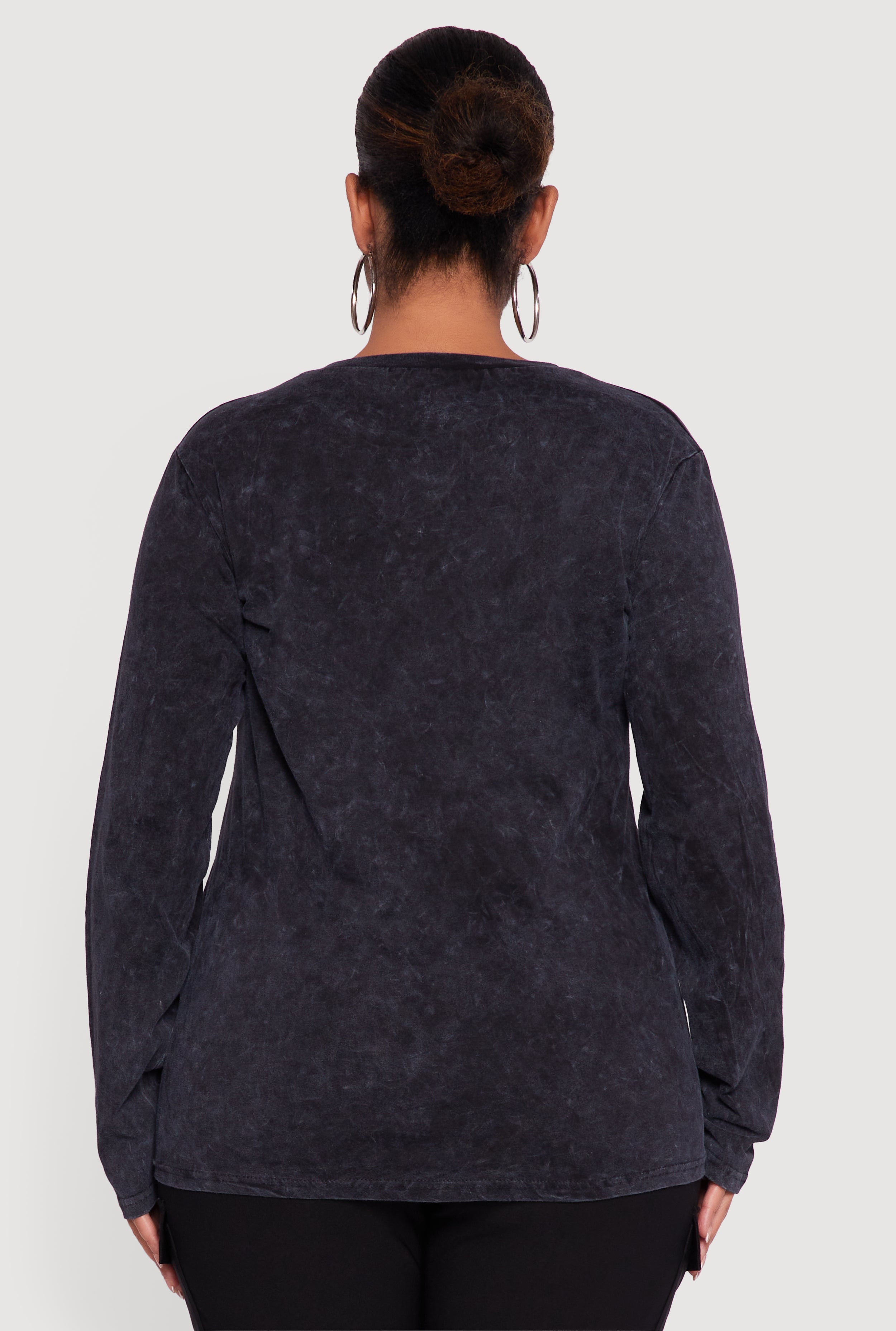 Plus Size Mineral Wash Long Sleeve Crew Neck Tee