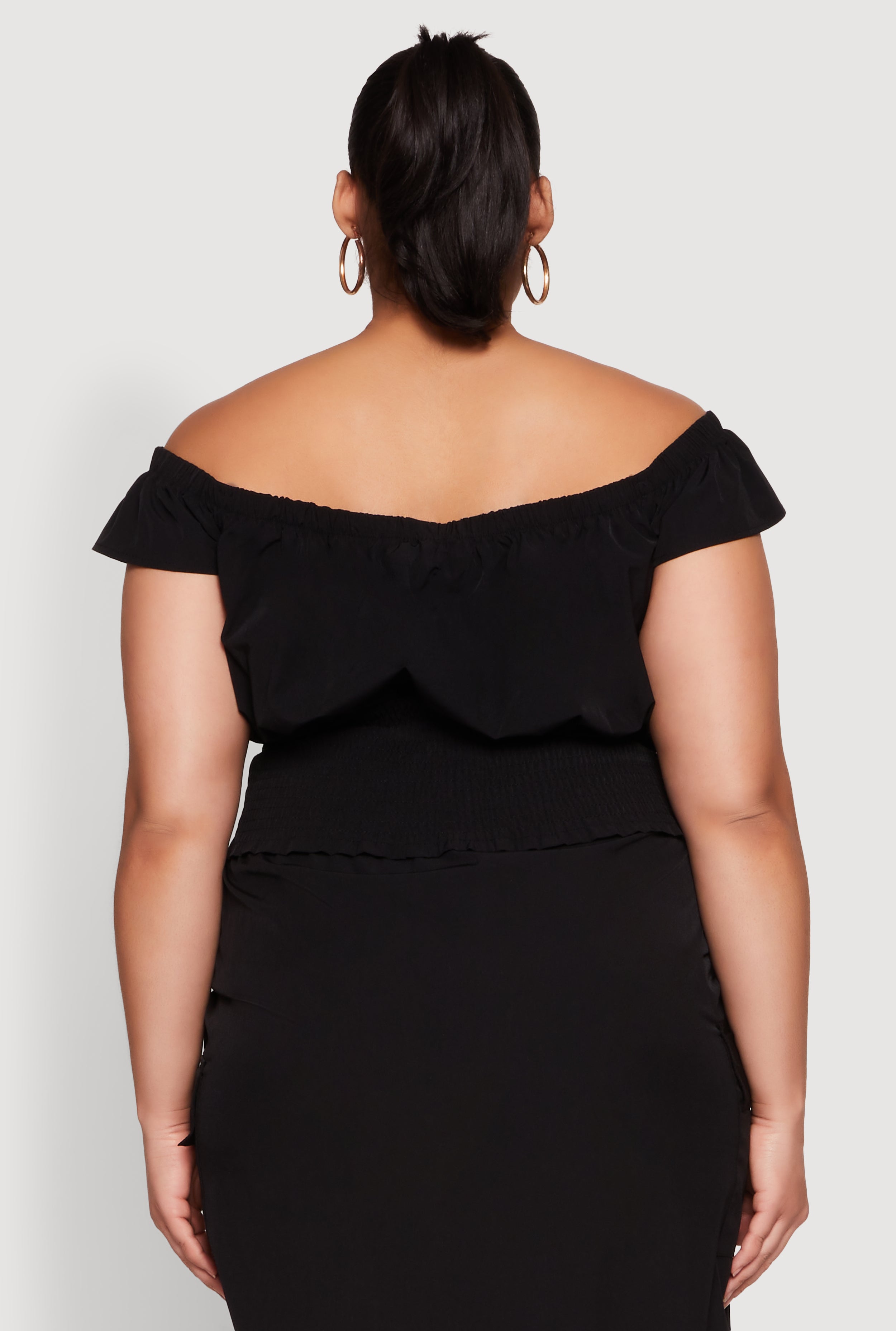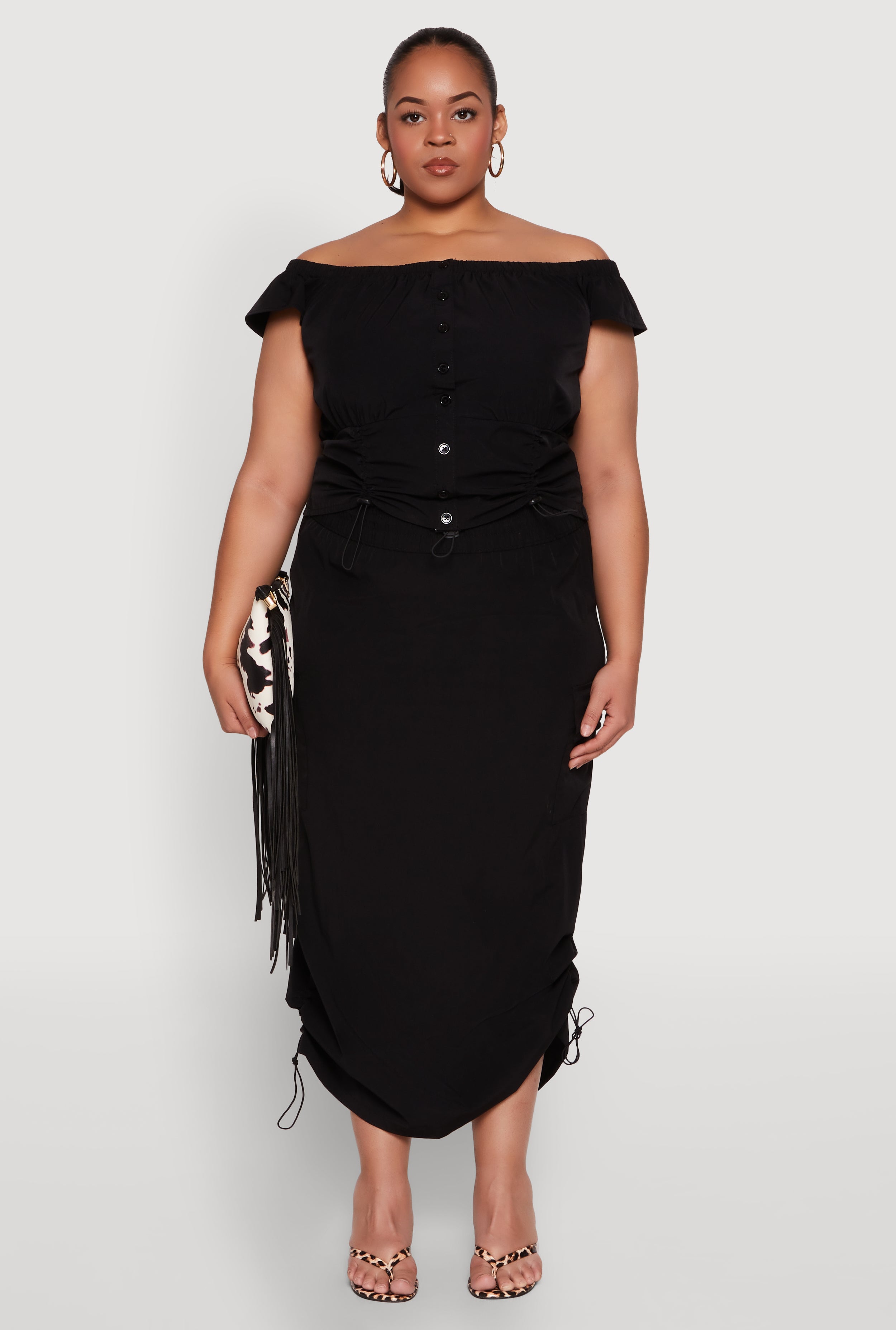 Plus Size Nylon Toggle Drawstring Off the Shoulder Top
